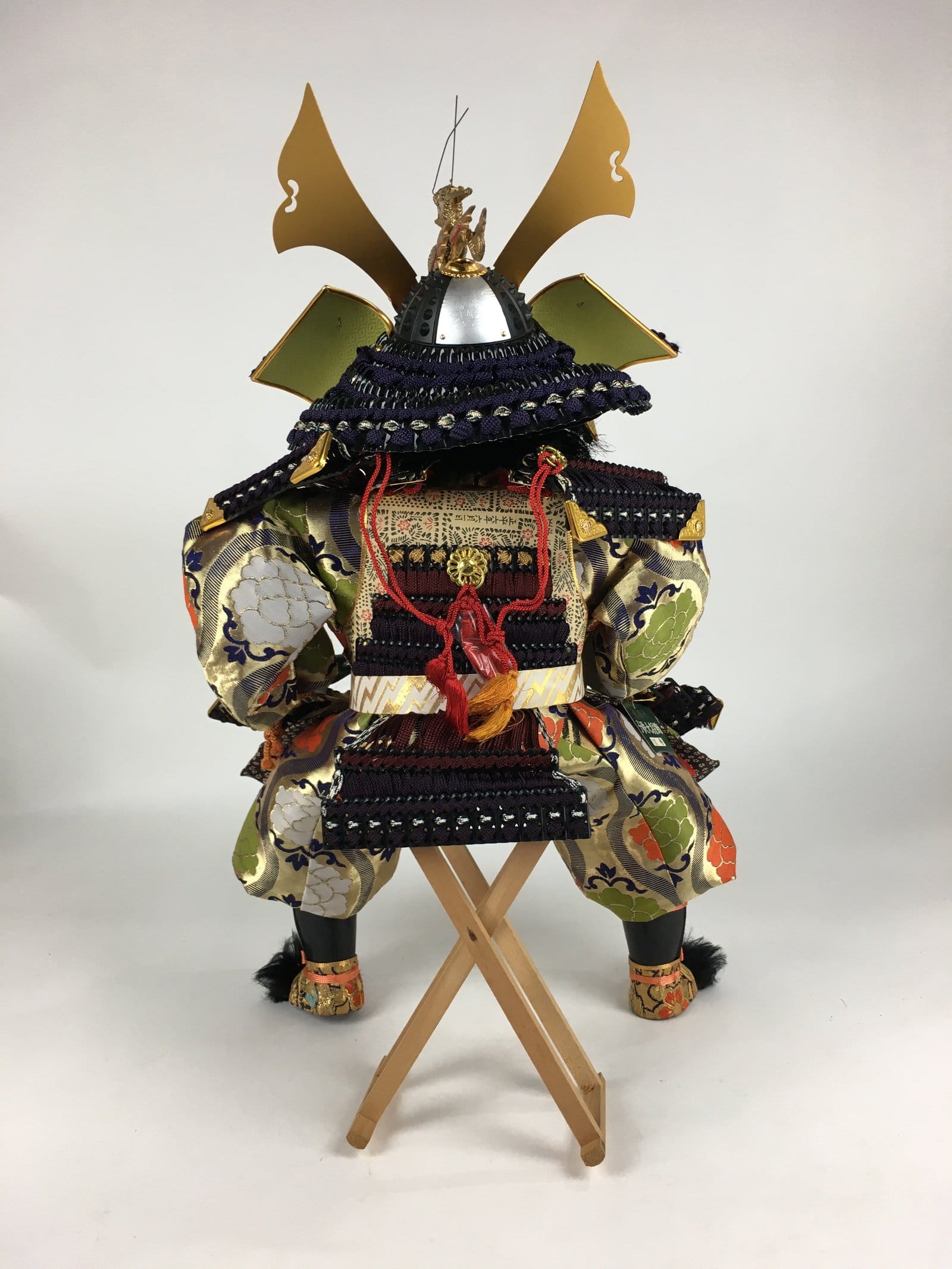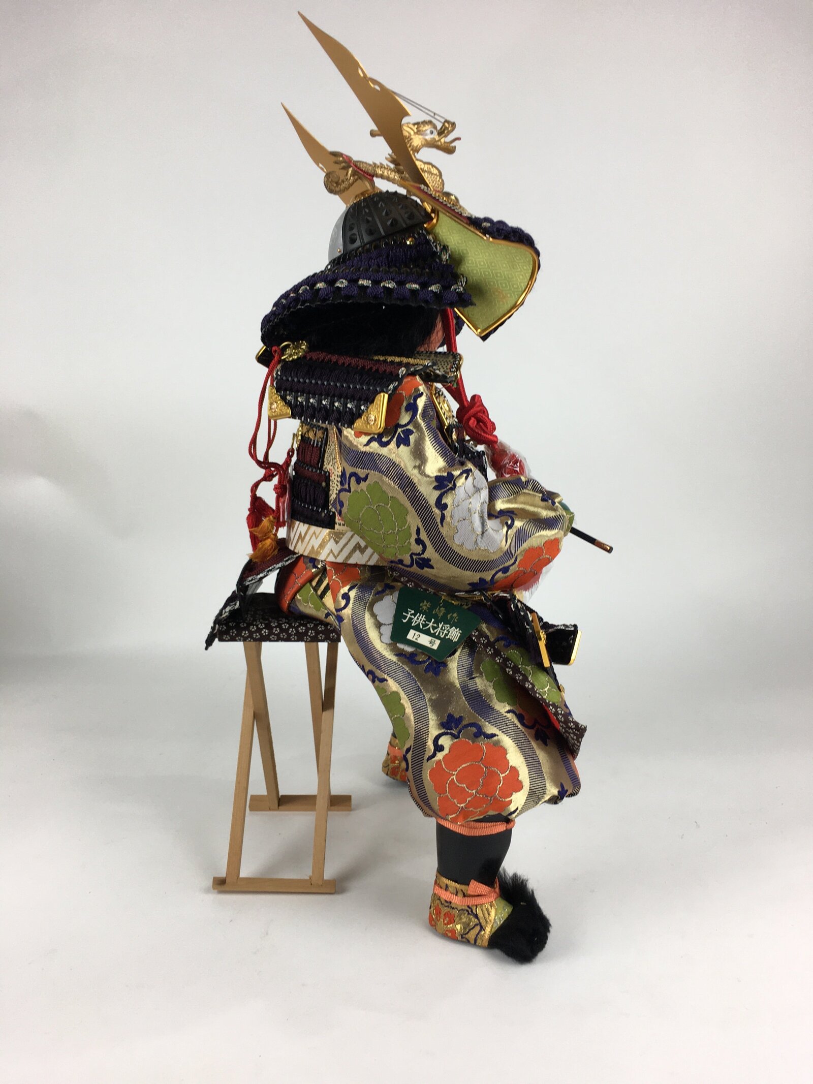 - Approx. Doll 37 cm long x 24 cm wide x 49 cm tall, cushion 19 cm long x 17 cm wide x 4 cm tall, sword 32.5 cm long, kabuto 30.5 cm long x 16.5 cm wide x 21 tall, chair 14 cm long x 9 cm wide x 21 cm tall