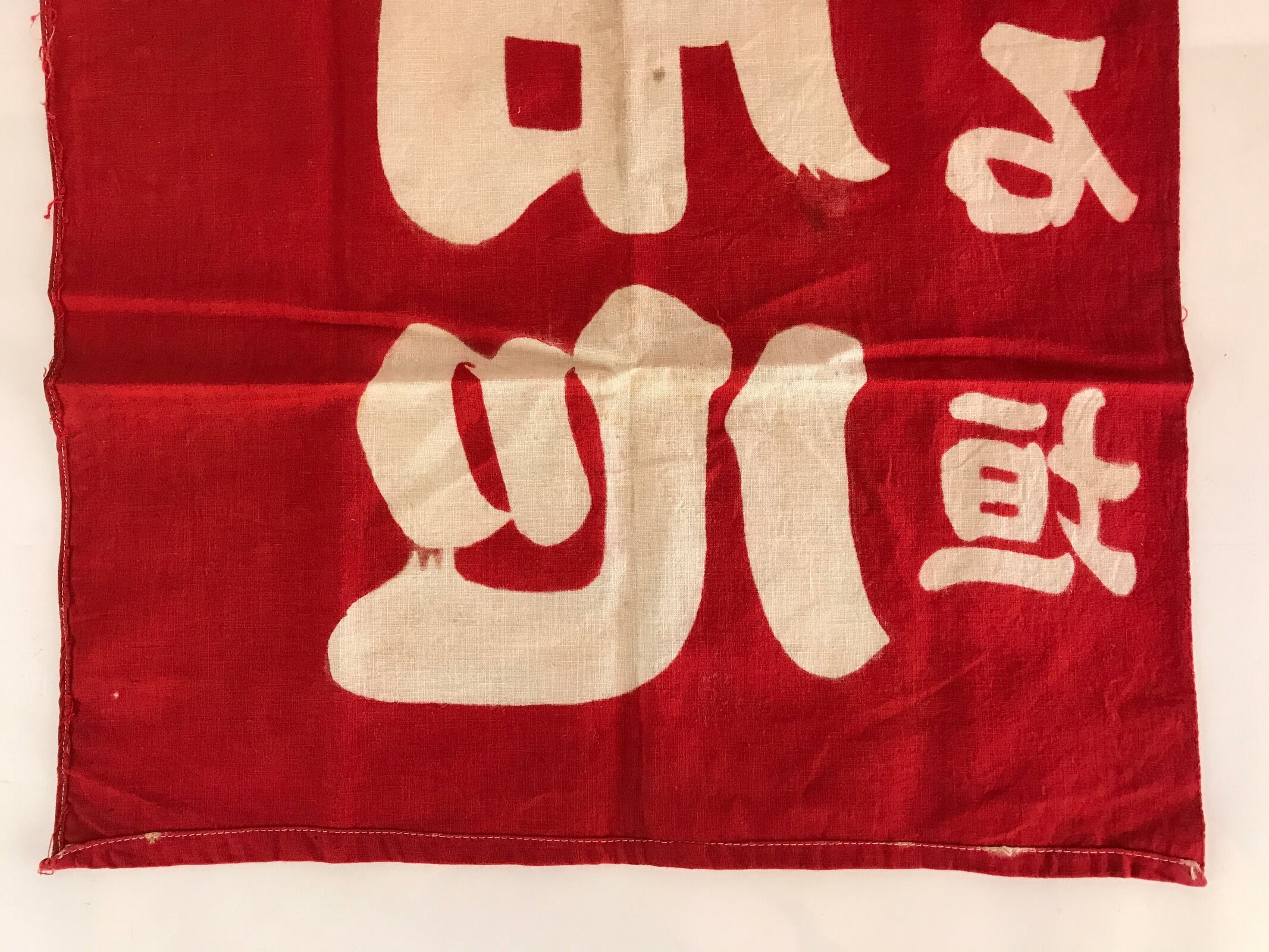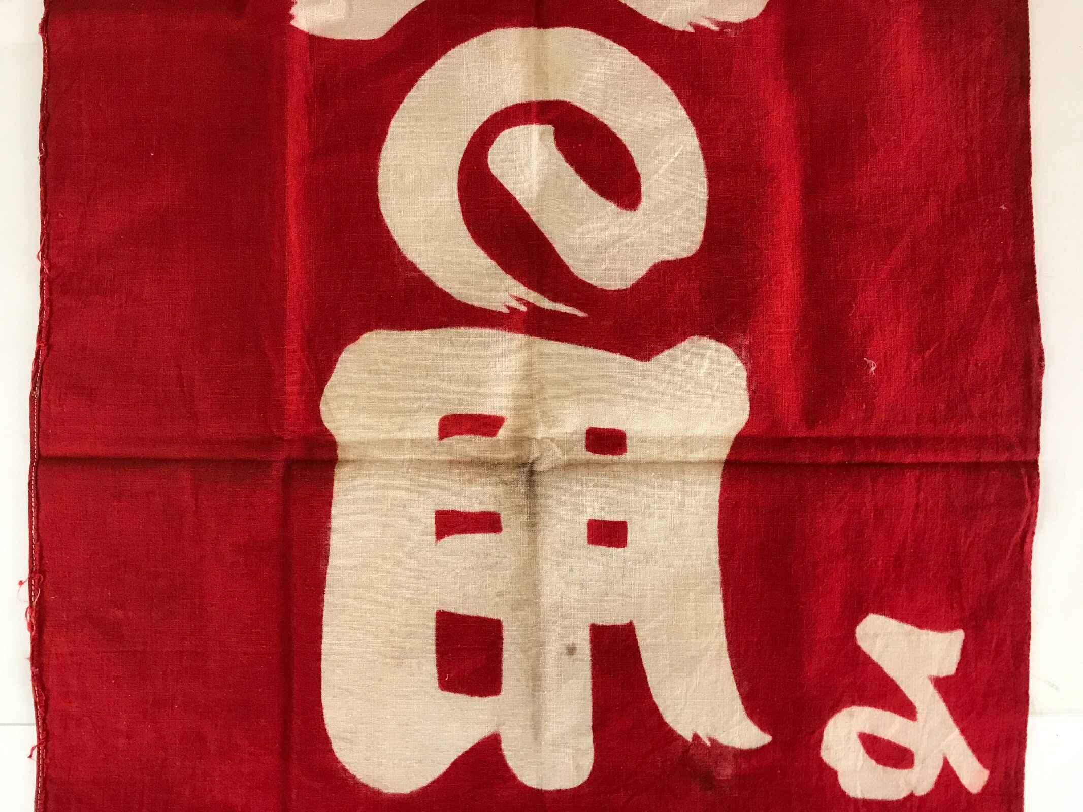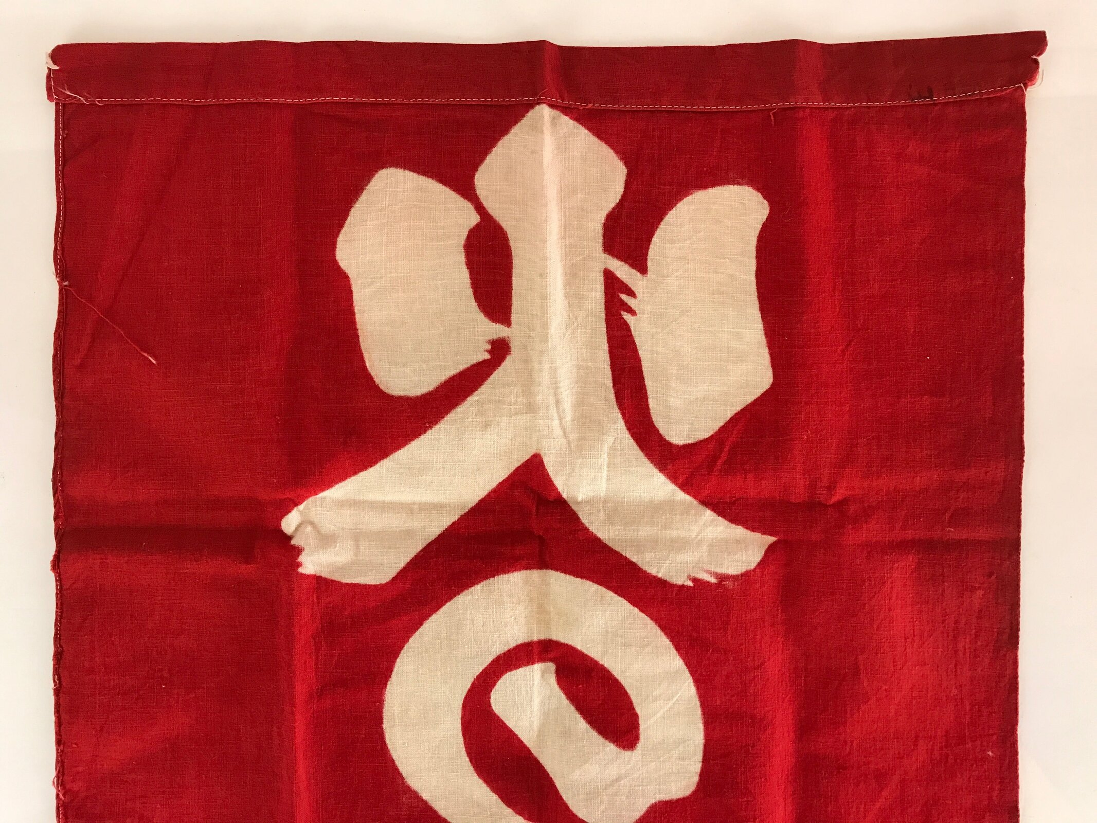 This is a Japanese vintage fire warning flag. It is written in Japanese as beware of fire (Hino-Yojin). In Japan, on winter nights, when the neighborhood association and others patrol the area. They walk and clap their clappers (Hyoshigi) while shouting, “Beware of fire.”