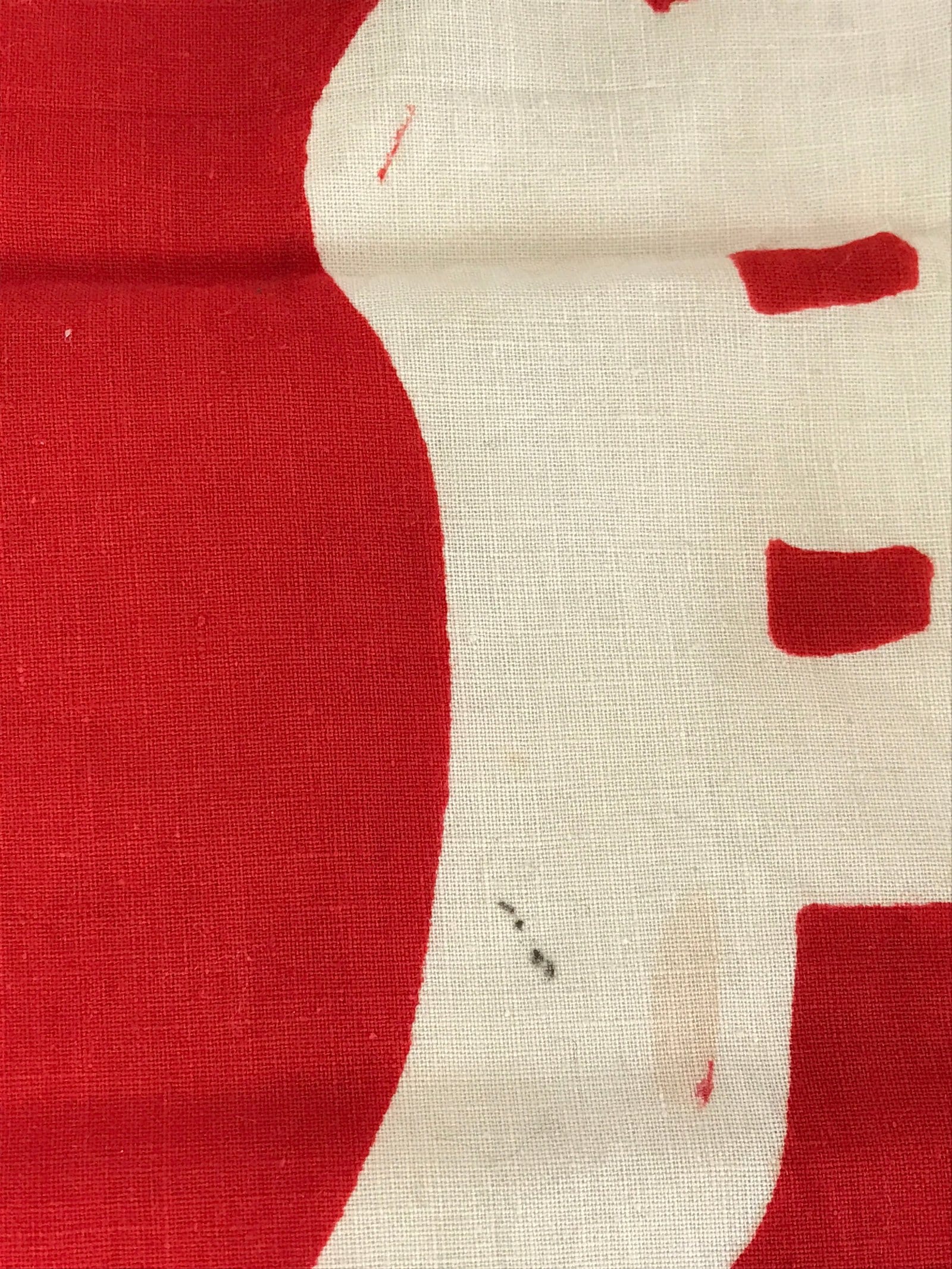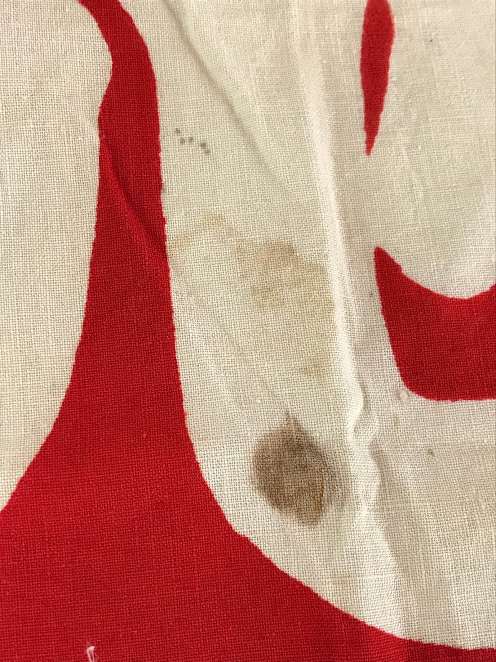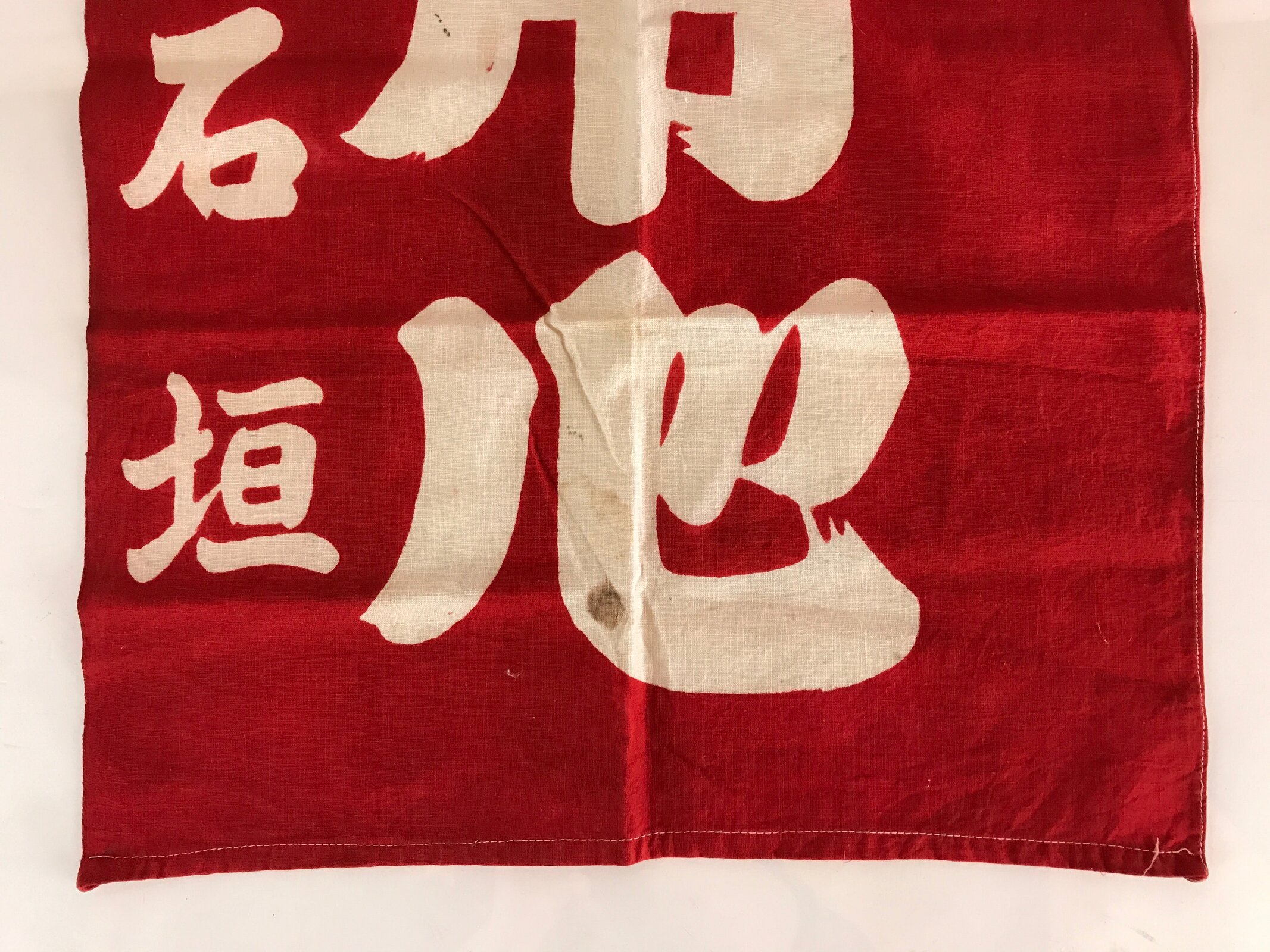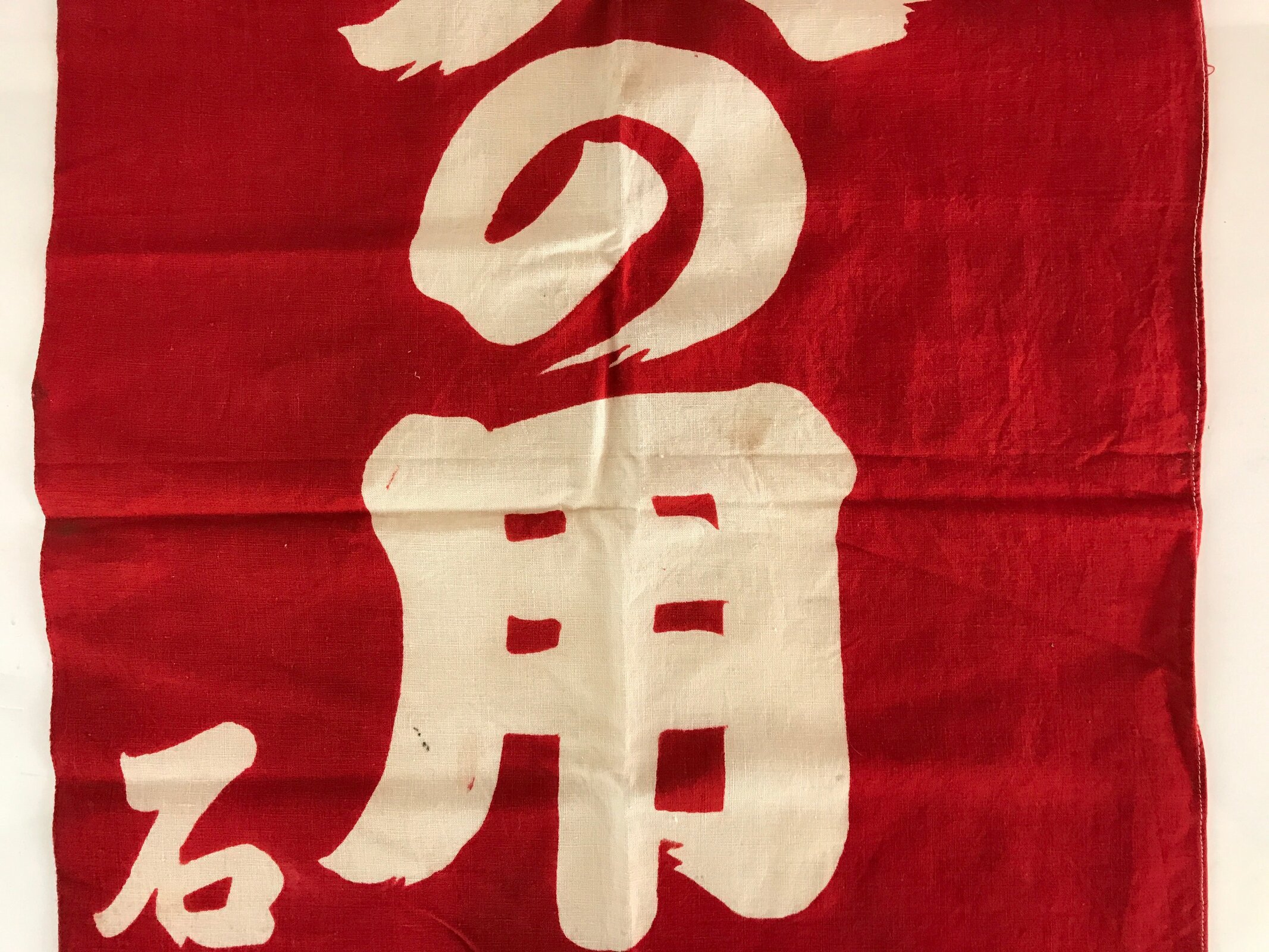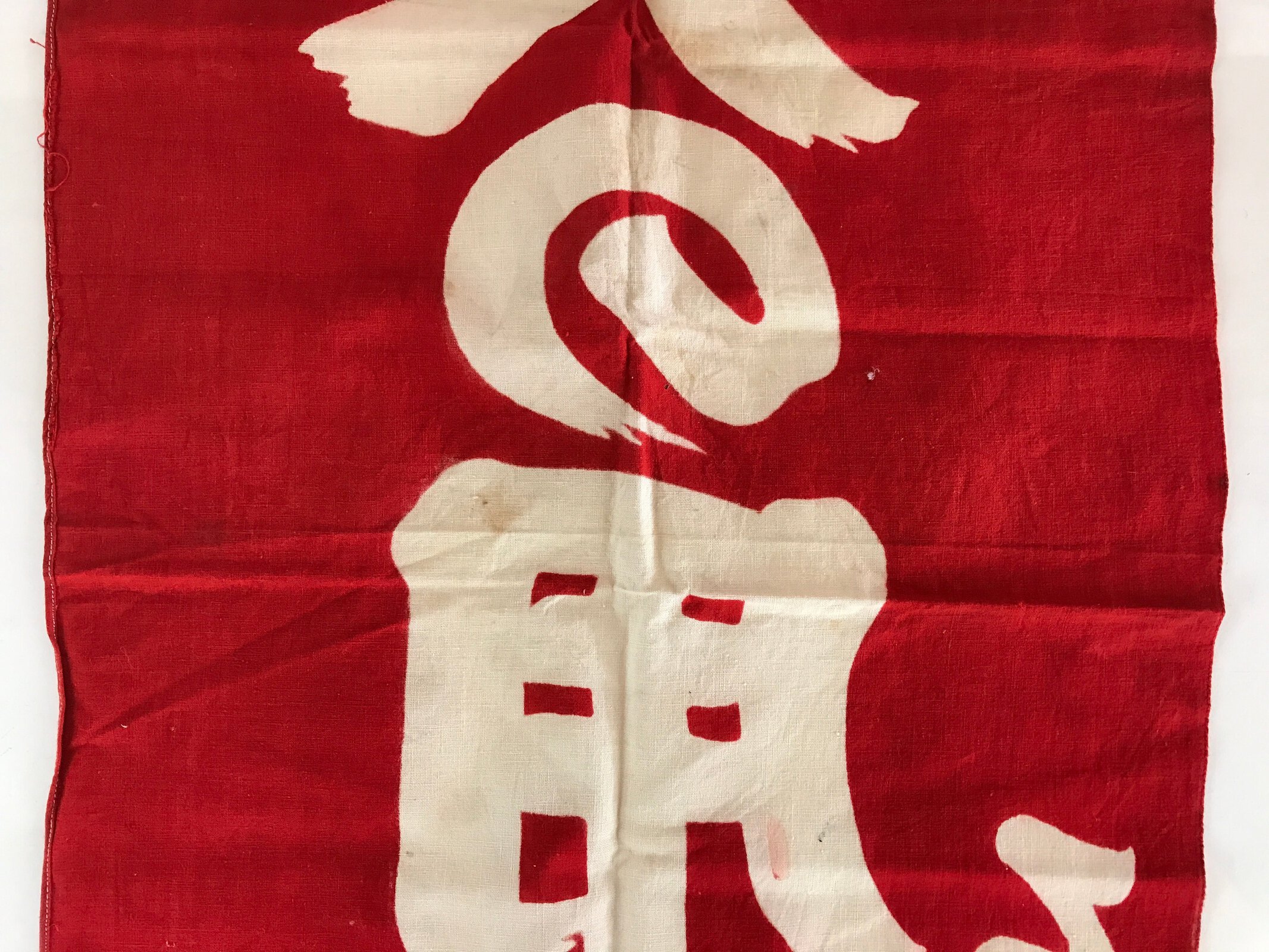 This is a Japanese vintage fire warning flag. It is written in Japanese as beware of fire (Hino-Yojin). In Japan, on winter nights, when the neighborhood association and others patrol the area. They walk and clap their clappers (Hyoshigi) while shouting, “Beware of fire.”
