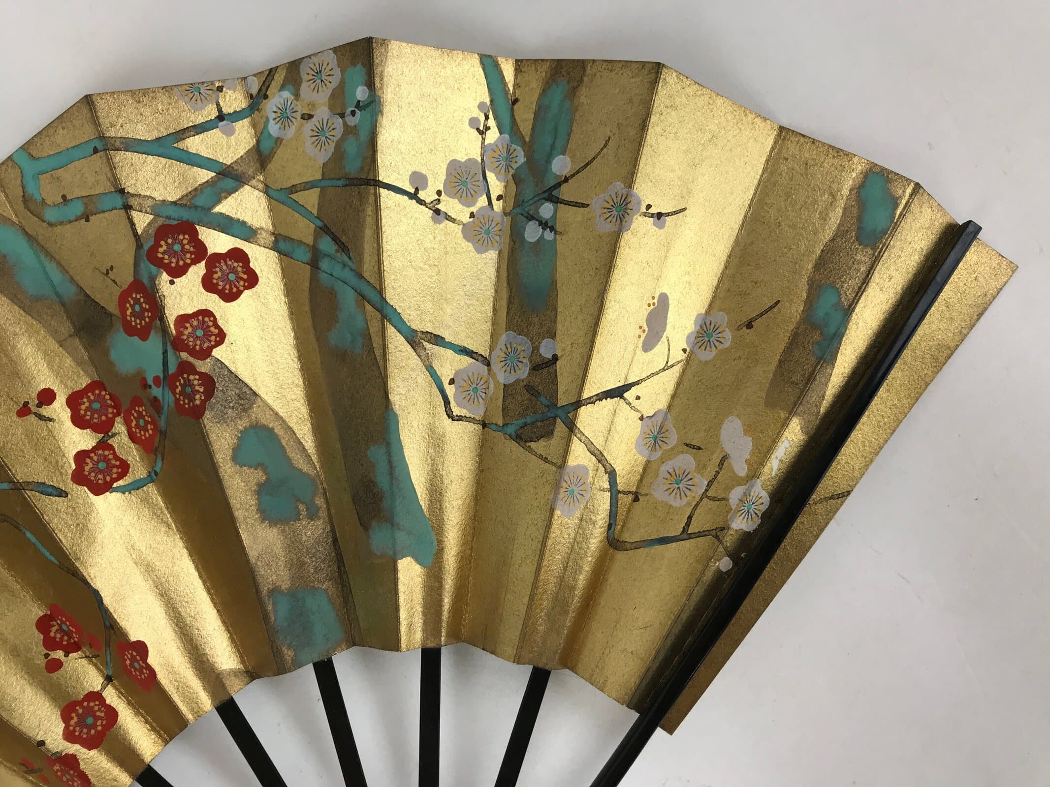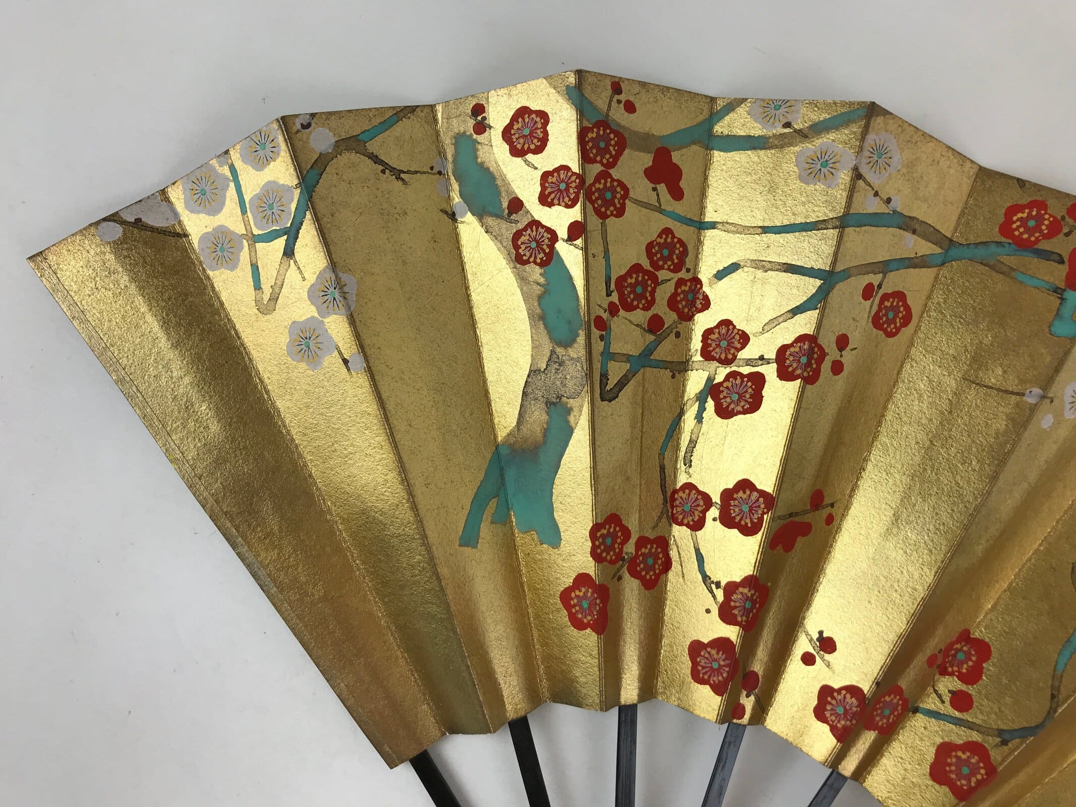 January 21, 2026Japanese Folding Fan Shimaisen Sensu Vtg Bamboo Frame Gold Plum Blossom 4D718