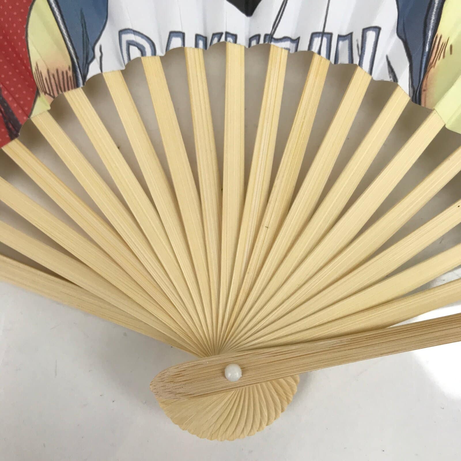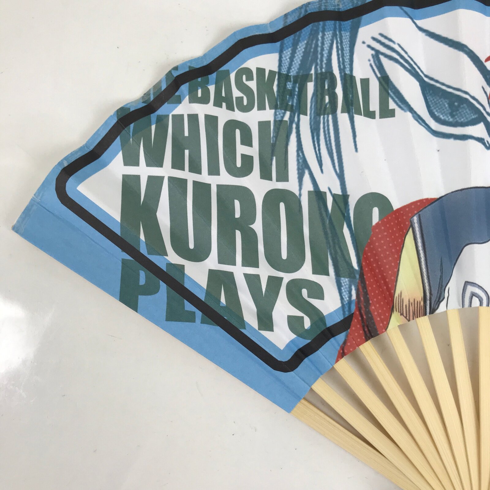 This is a traditional Japanese folding fan called sensu. You can use this when it’s hot or as decoration. This fan is made of natural bamboo and has a colorful design of Rakuzan High School No.4 Akashi Seijuro from the anime Kuroko no Basuke. The back side is blank white.
