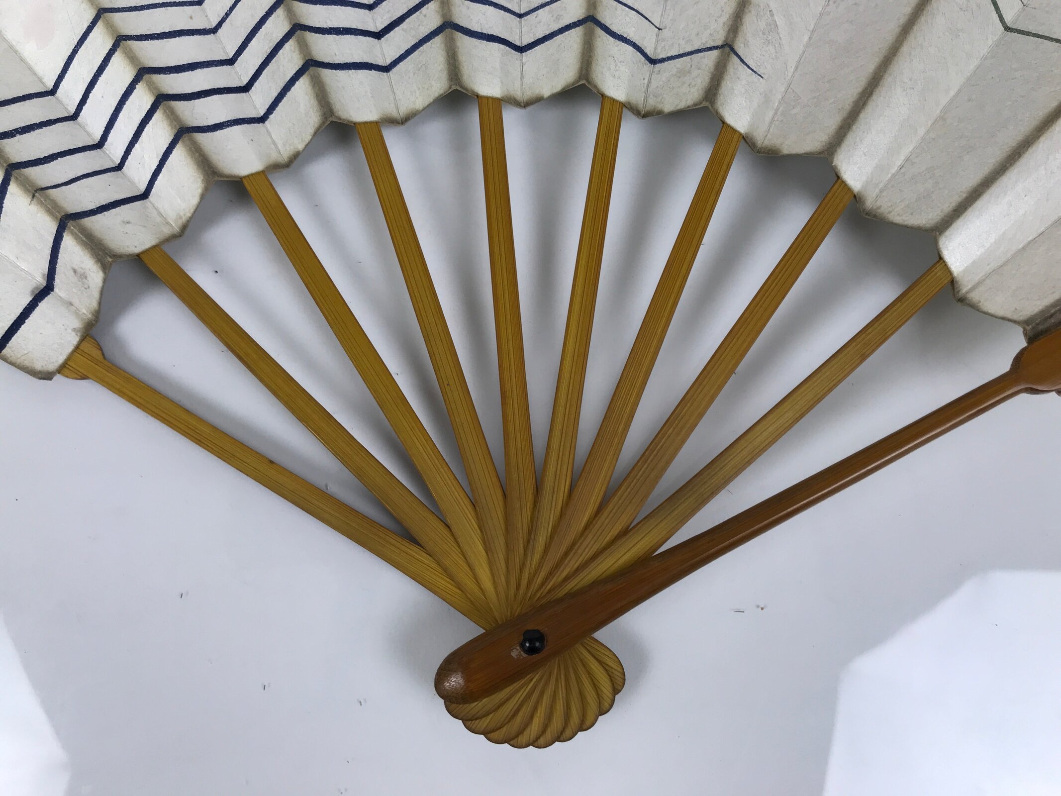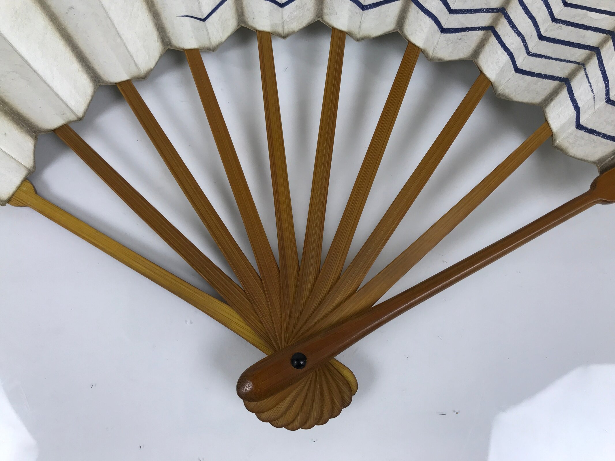 Japanese Paper Folding Fan Sensu Vtg Bamboo Frame Simple Blank White 4D951