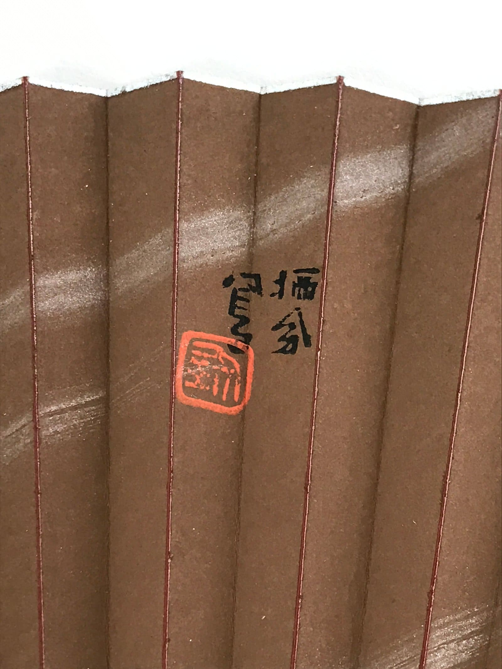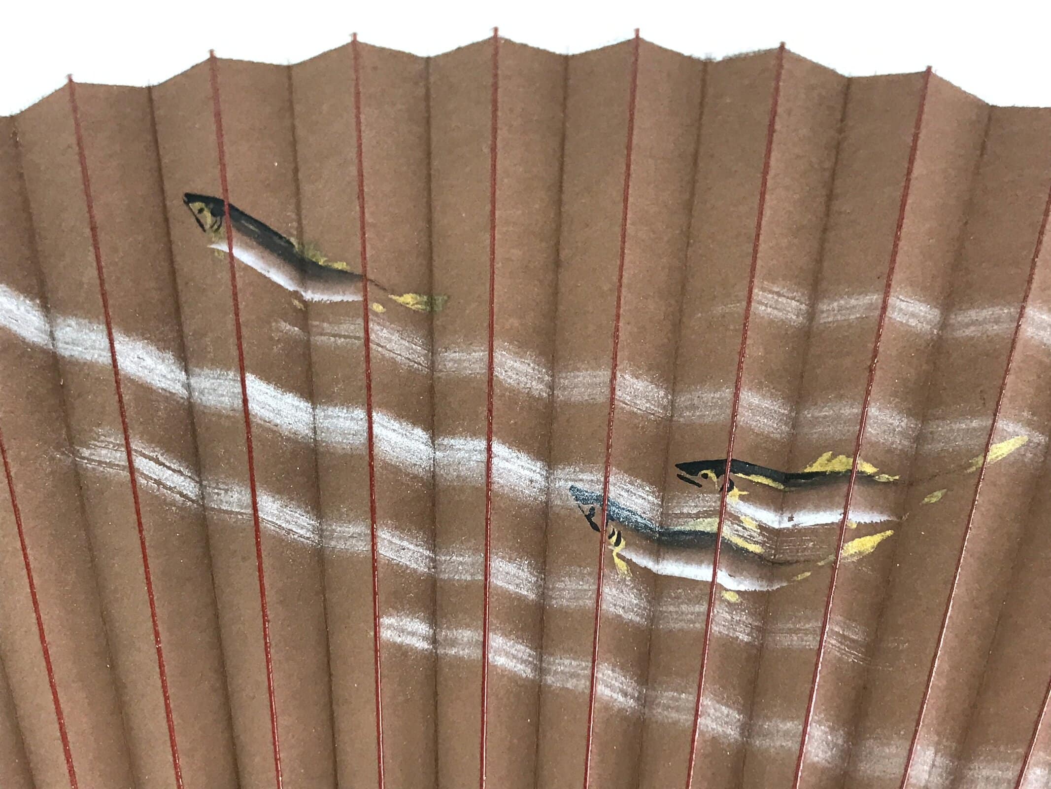 January 21, 2026Japanese Folding Fan Sensu Bamboo Frame Fish Brown Black Kanji Red Seal 4D676