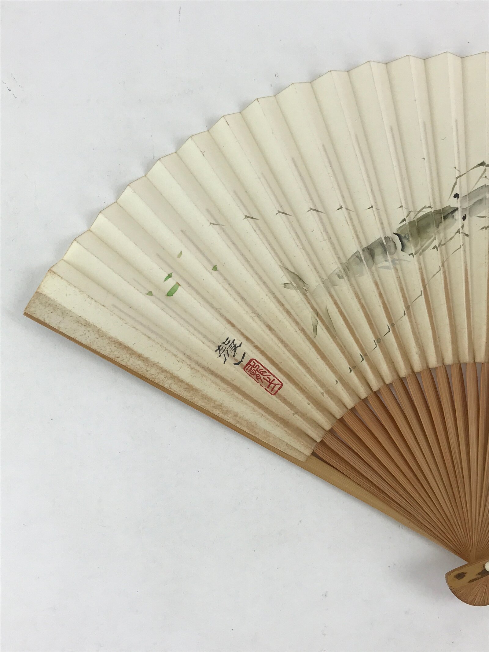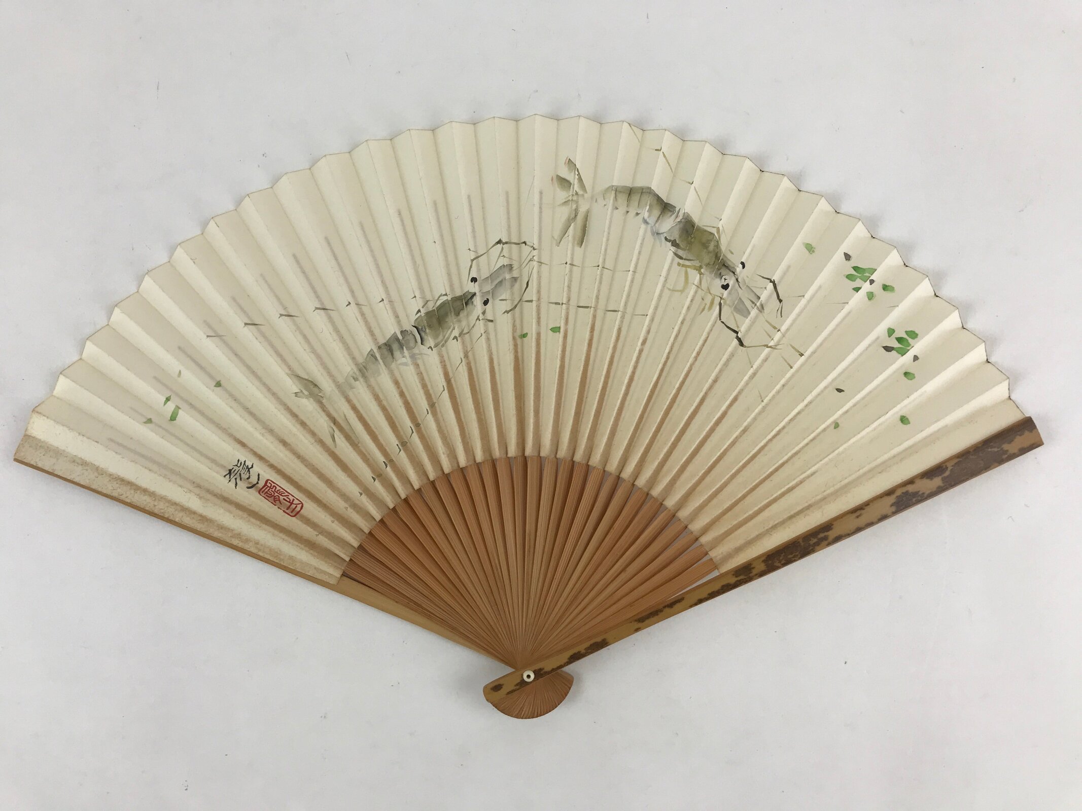 January 21, 2026Japanese Folding Fan Sensu Vtg Bamboo Frame Shrimps Kanji Red Seal White 4D682