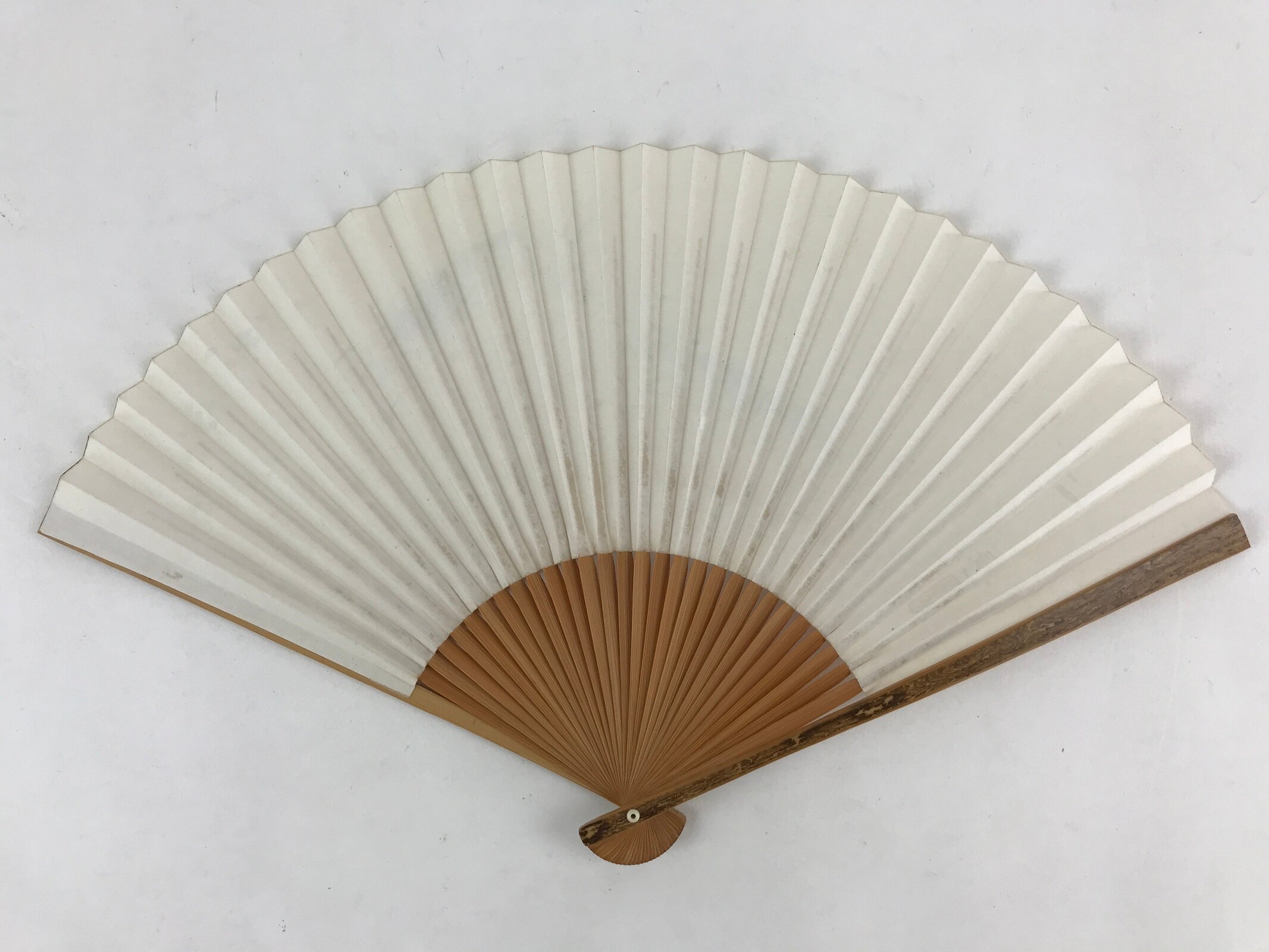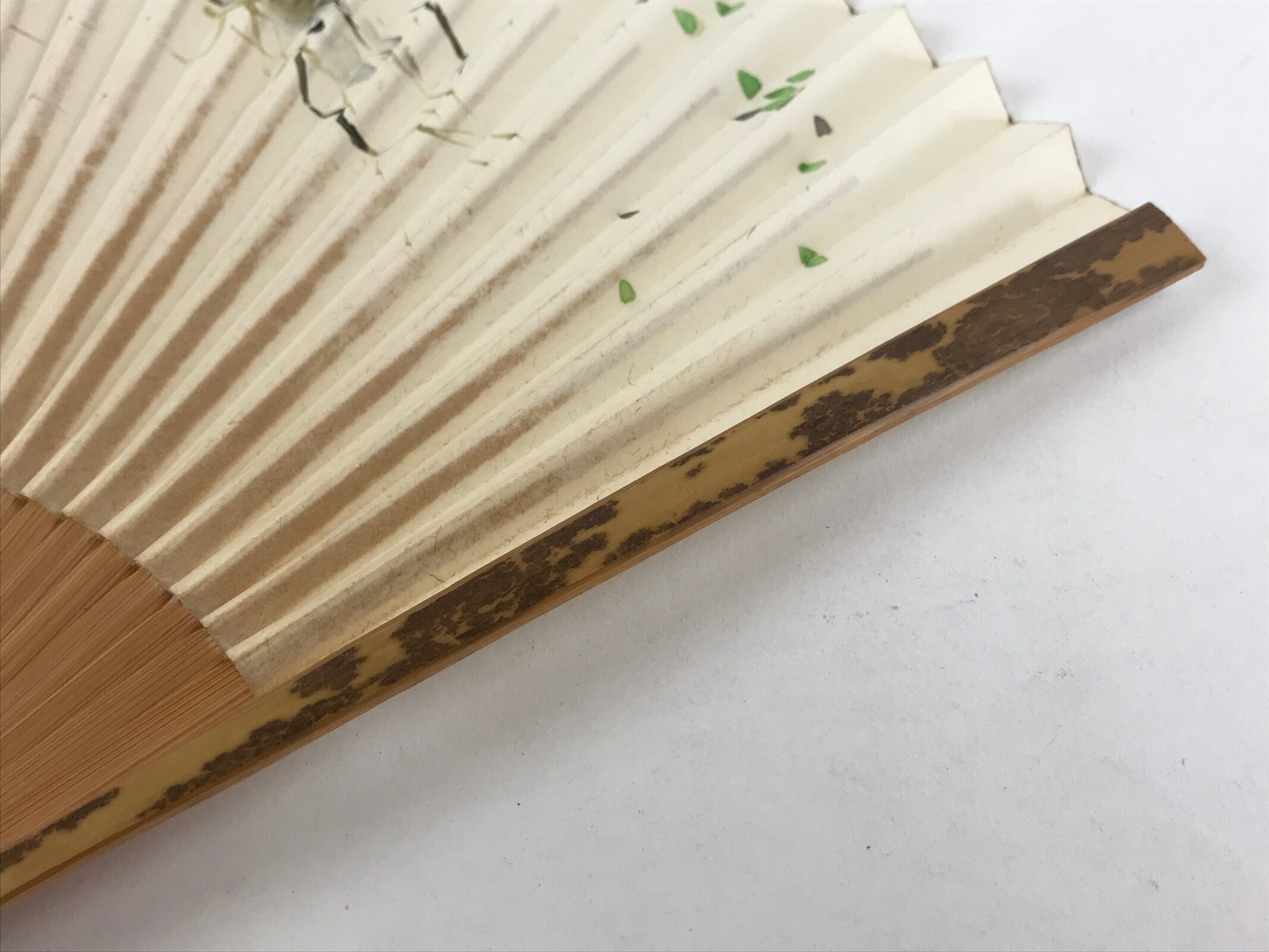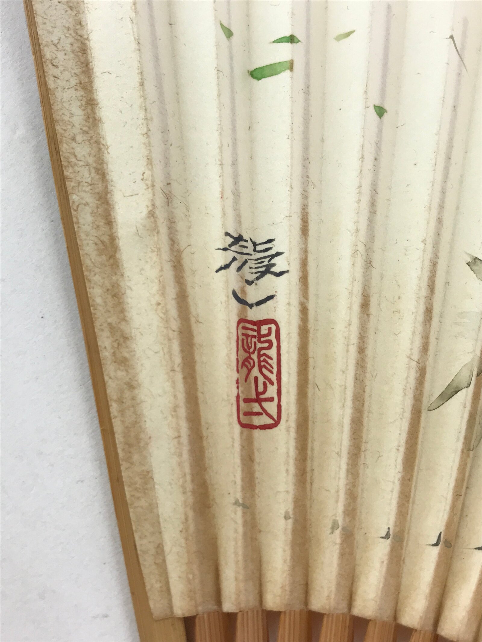 Japanese Folding Fan Sensu Vtg Bamboo Frame Ink Painting Red Seal White 4D681