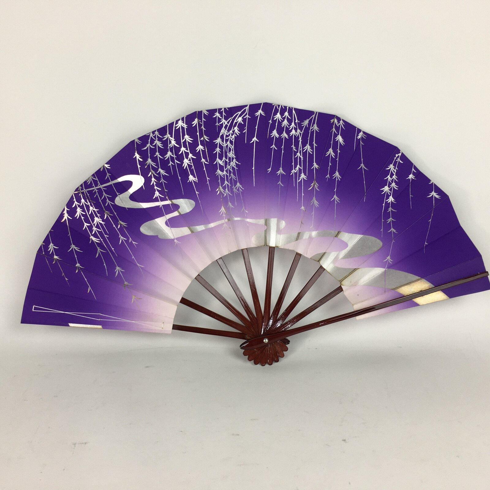 January 18, 2026Japanese Folding Fan Vtg Sensu Paper Bamboo Frame Purple Silver Stream 4D492