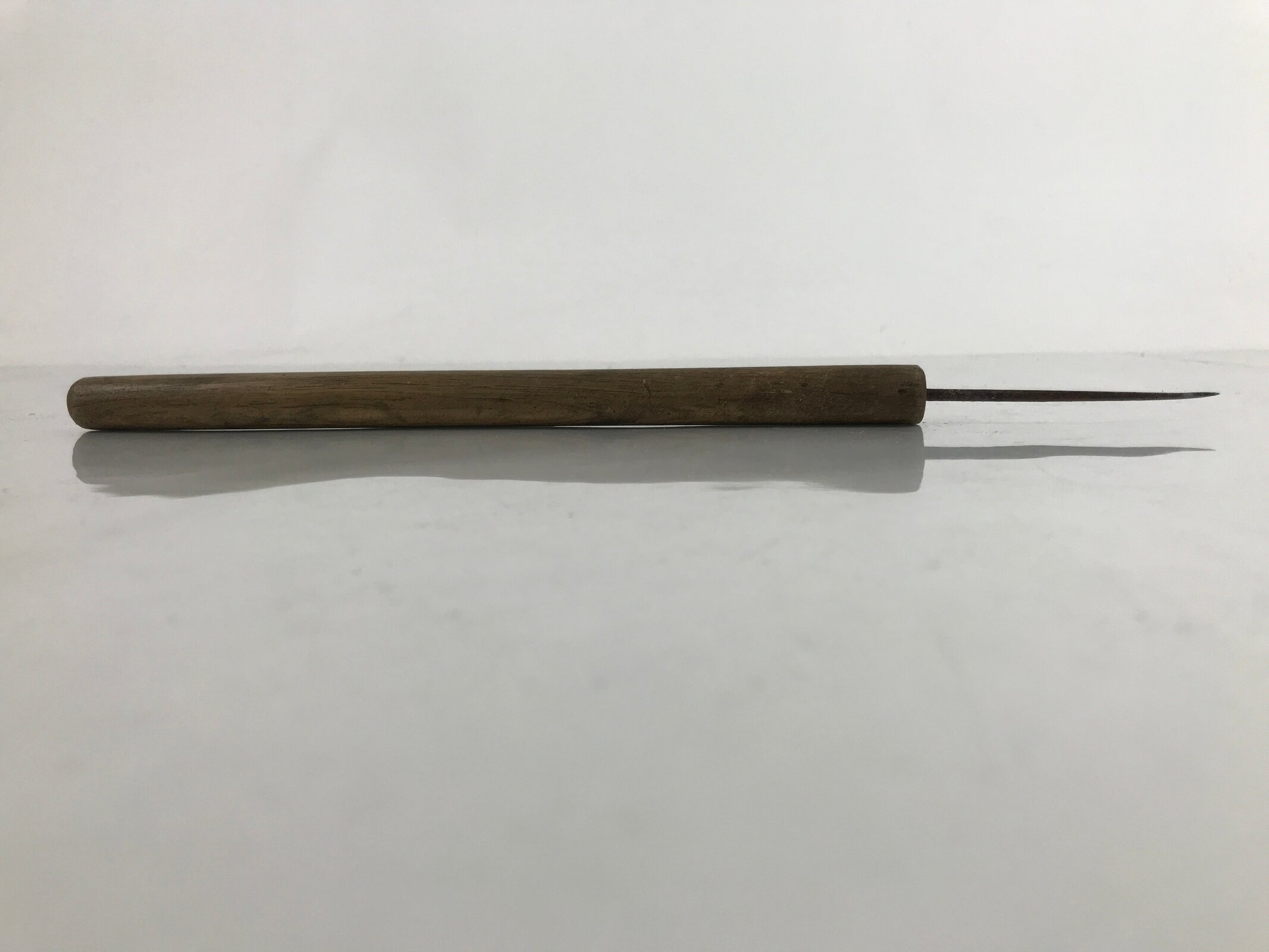This is a vintage Japanese gimlet, kiri for woodworking. The tip is pointed.