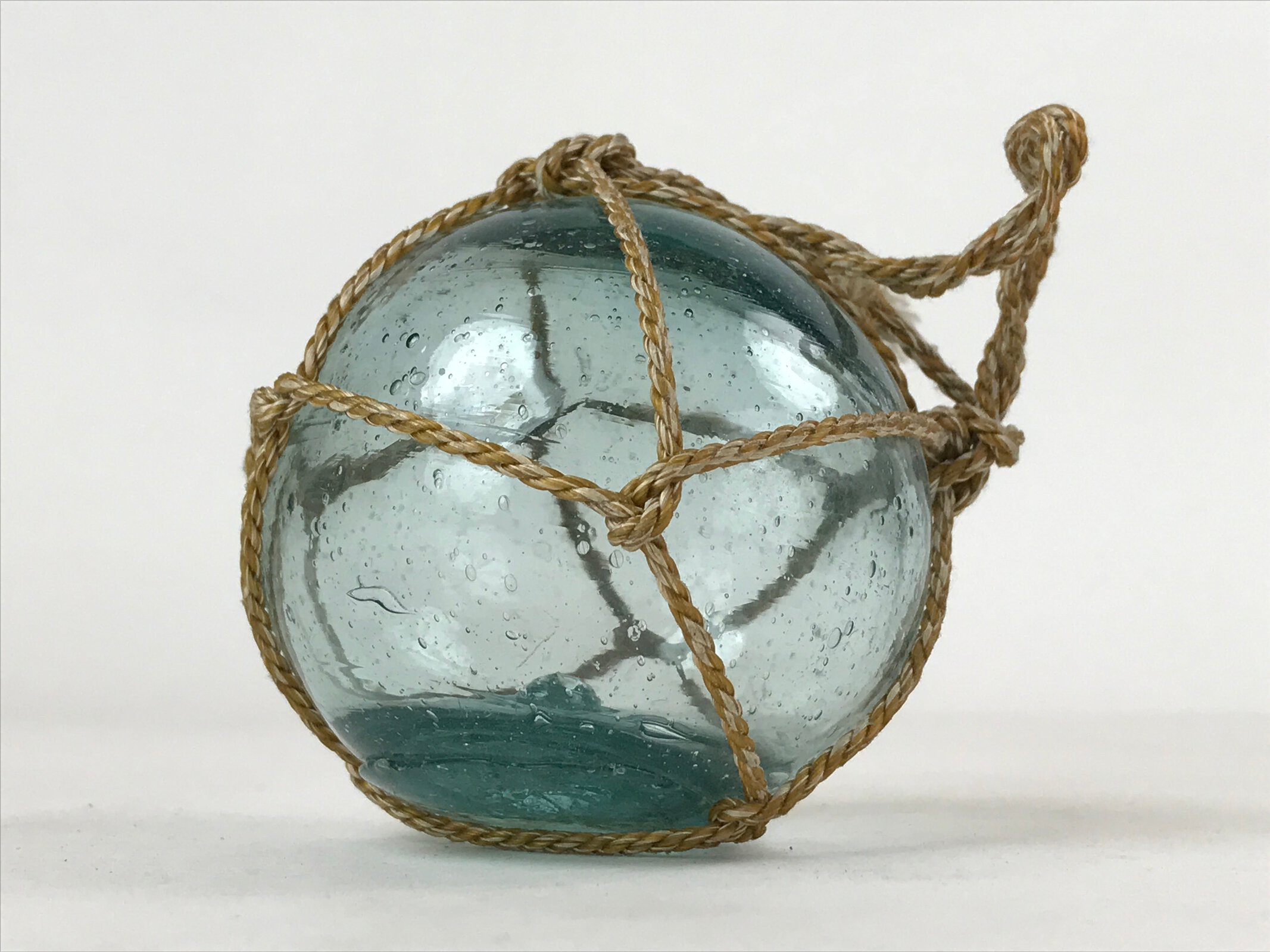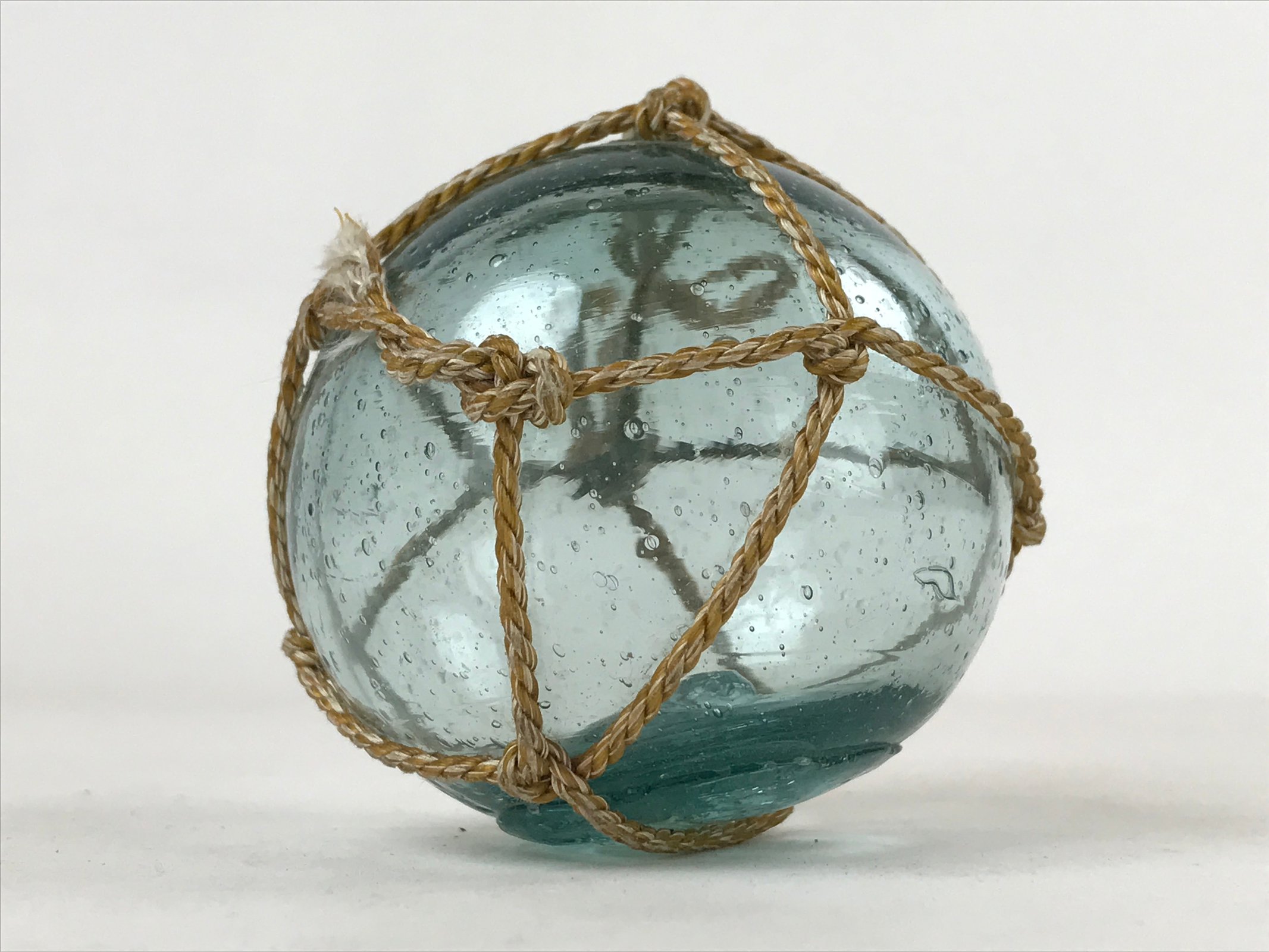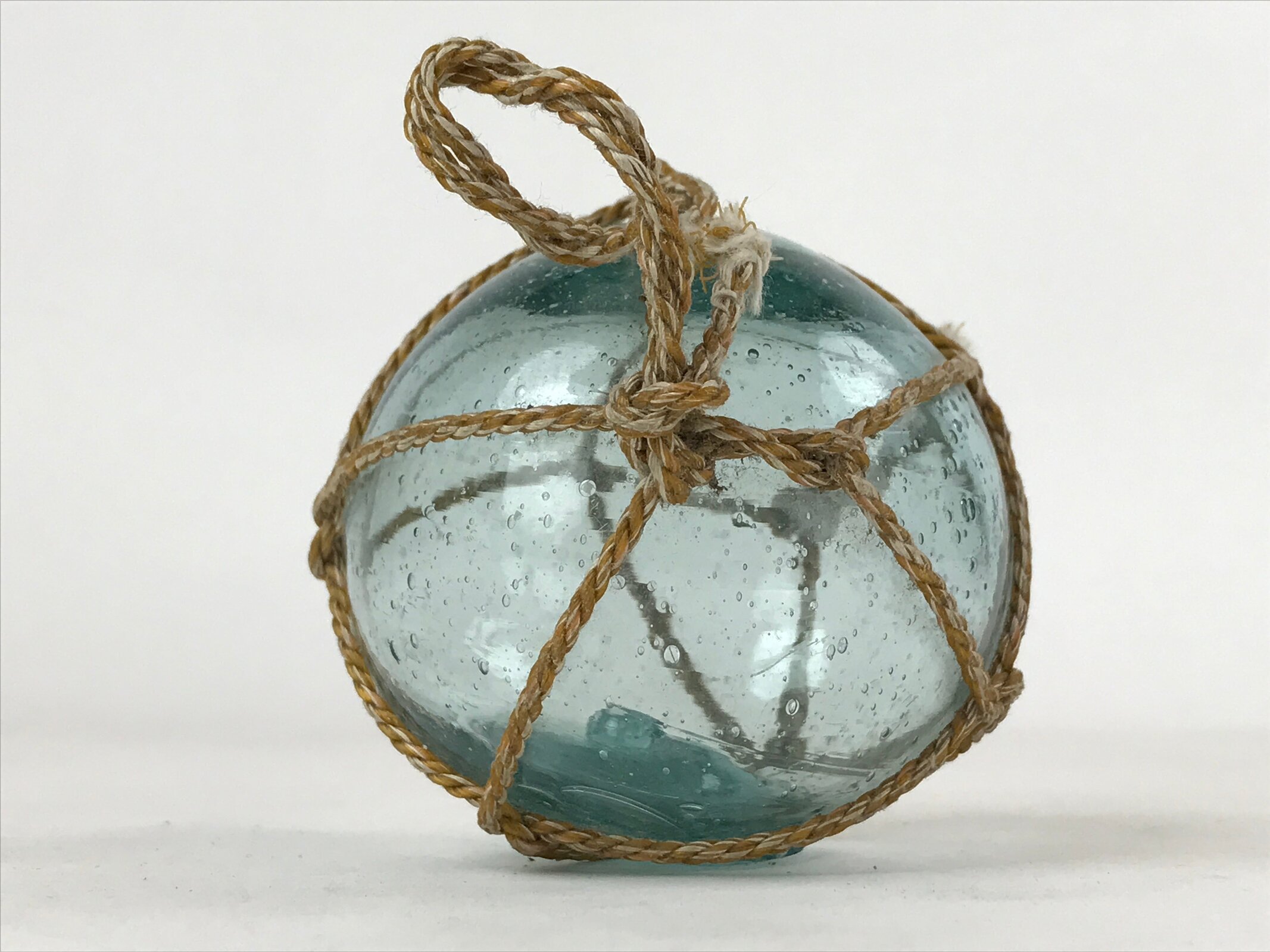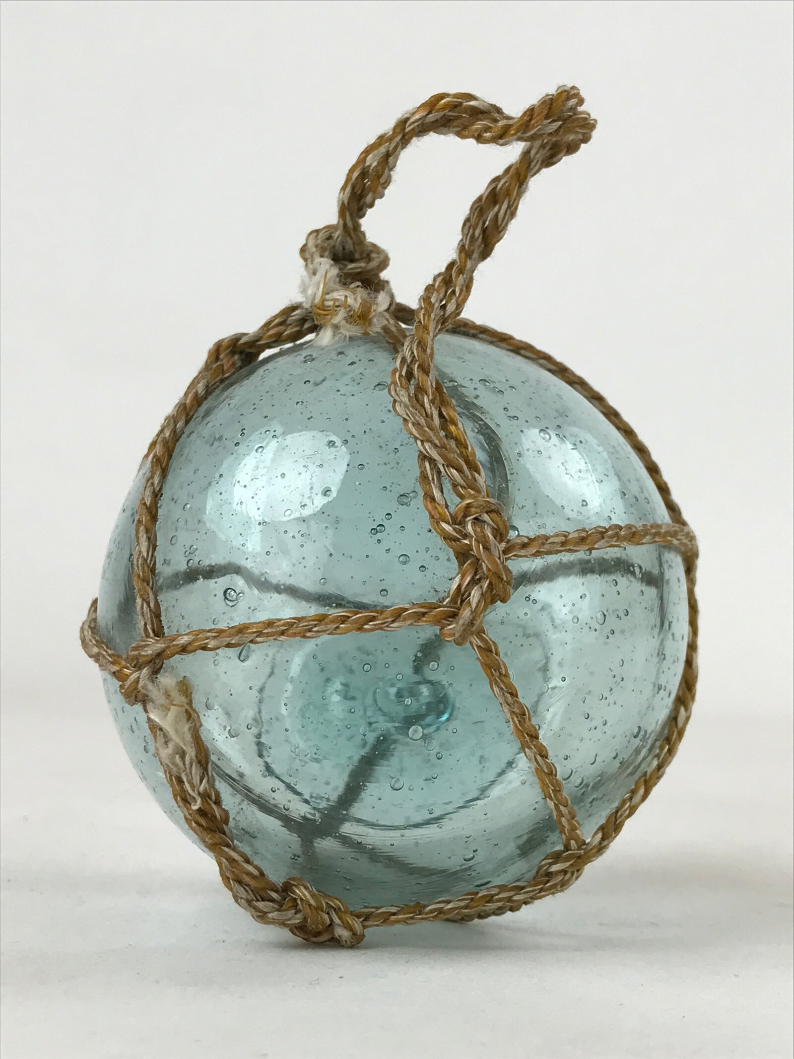 January 21, 2026Japanese Glass Fishing Float Ukidama Buoy Ball Vtg Bindama Rope Small Blue GF11