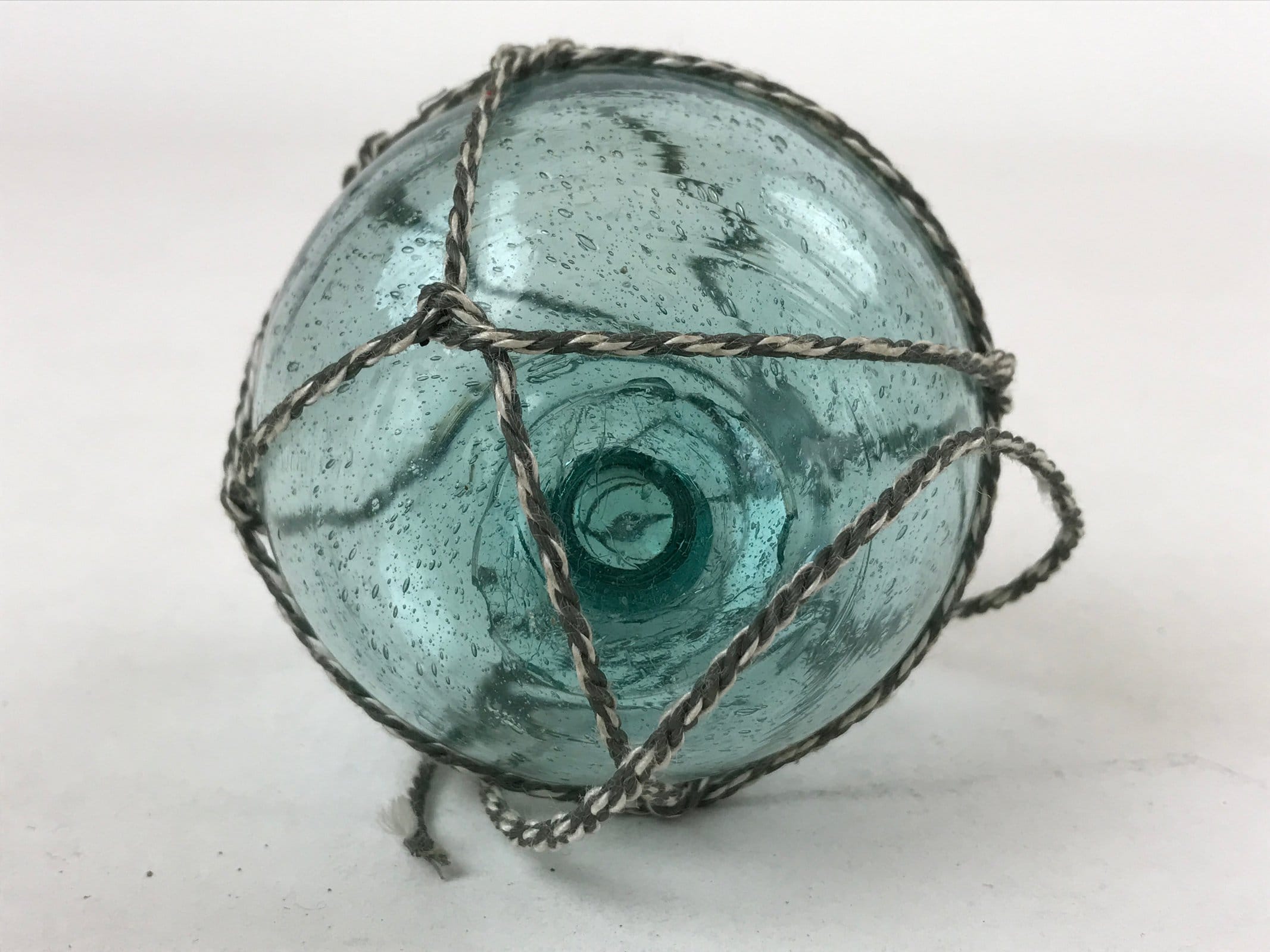 Japanese Glass Fishing Float Ukidama Buoy Ball Vtg Bindama Rope Small Blue GF14