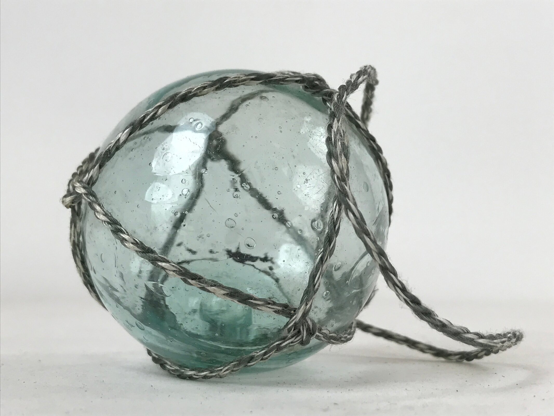 January 21, 2026Japanese Glass Fishing Float Ukidama Buoy Ball Vtg Bindama Rope Small Blue GF16