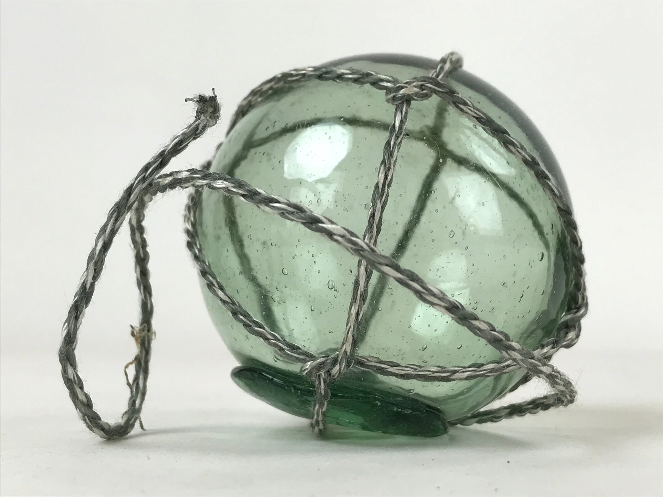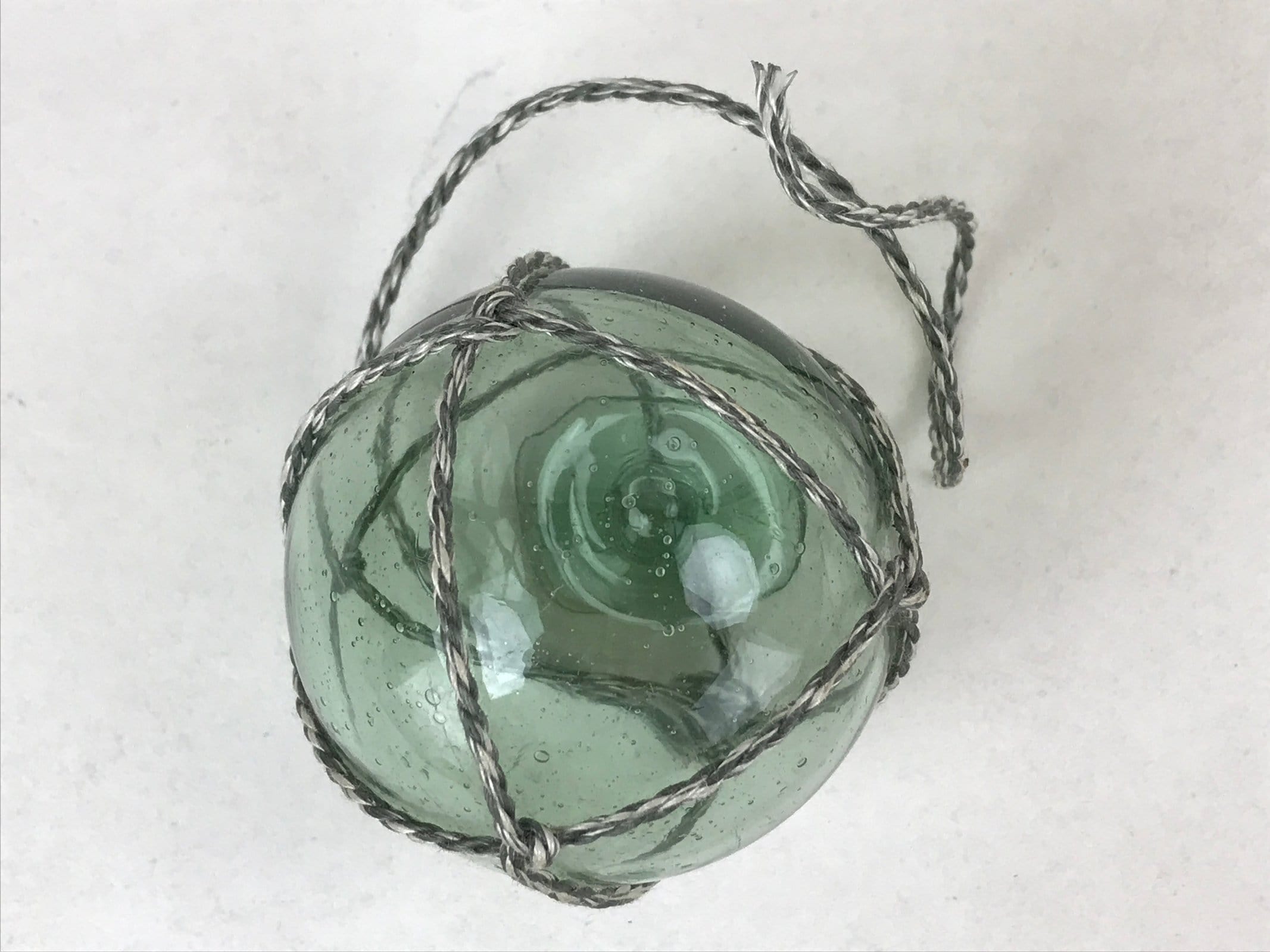 January 21, 2026Japanese Glass Fishing Float Ukidama Buoy Ball Vtg Bindama Rope Small Blue GF26