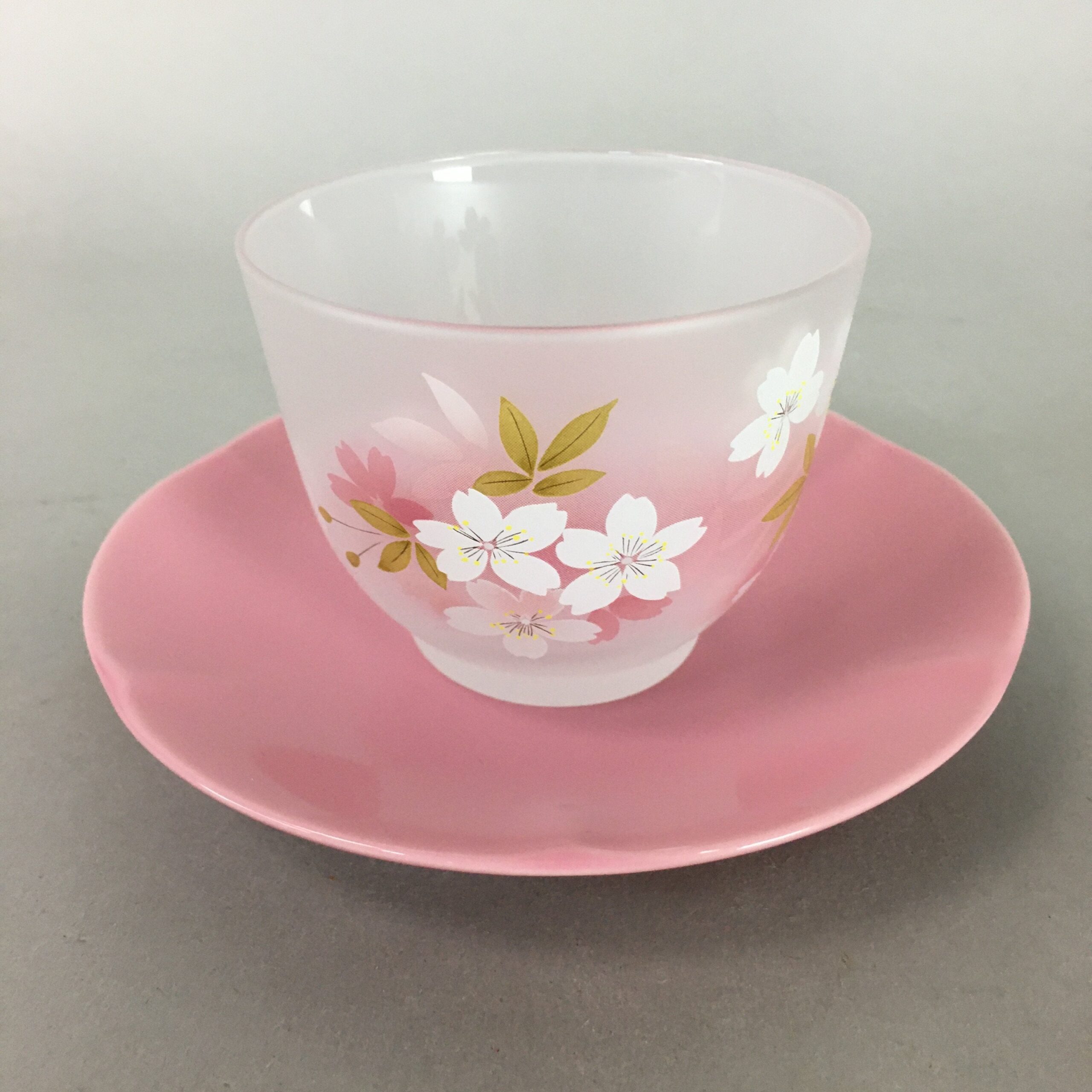 January 17, 2026Japanese Glass Teacup Saucer Set Vtg Sakura Yunomi Coaster Cold Tea Sencha QT77