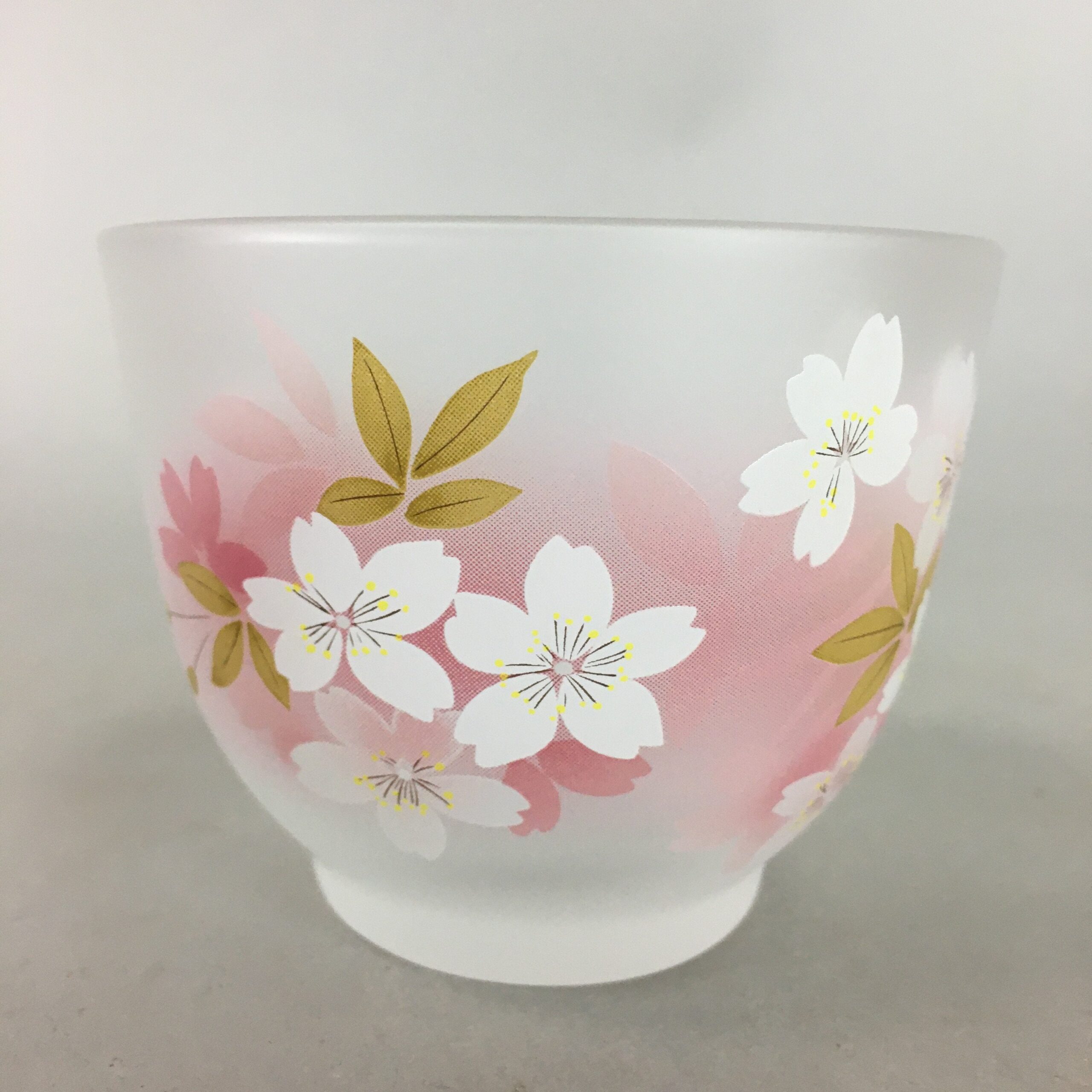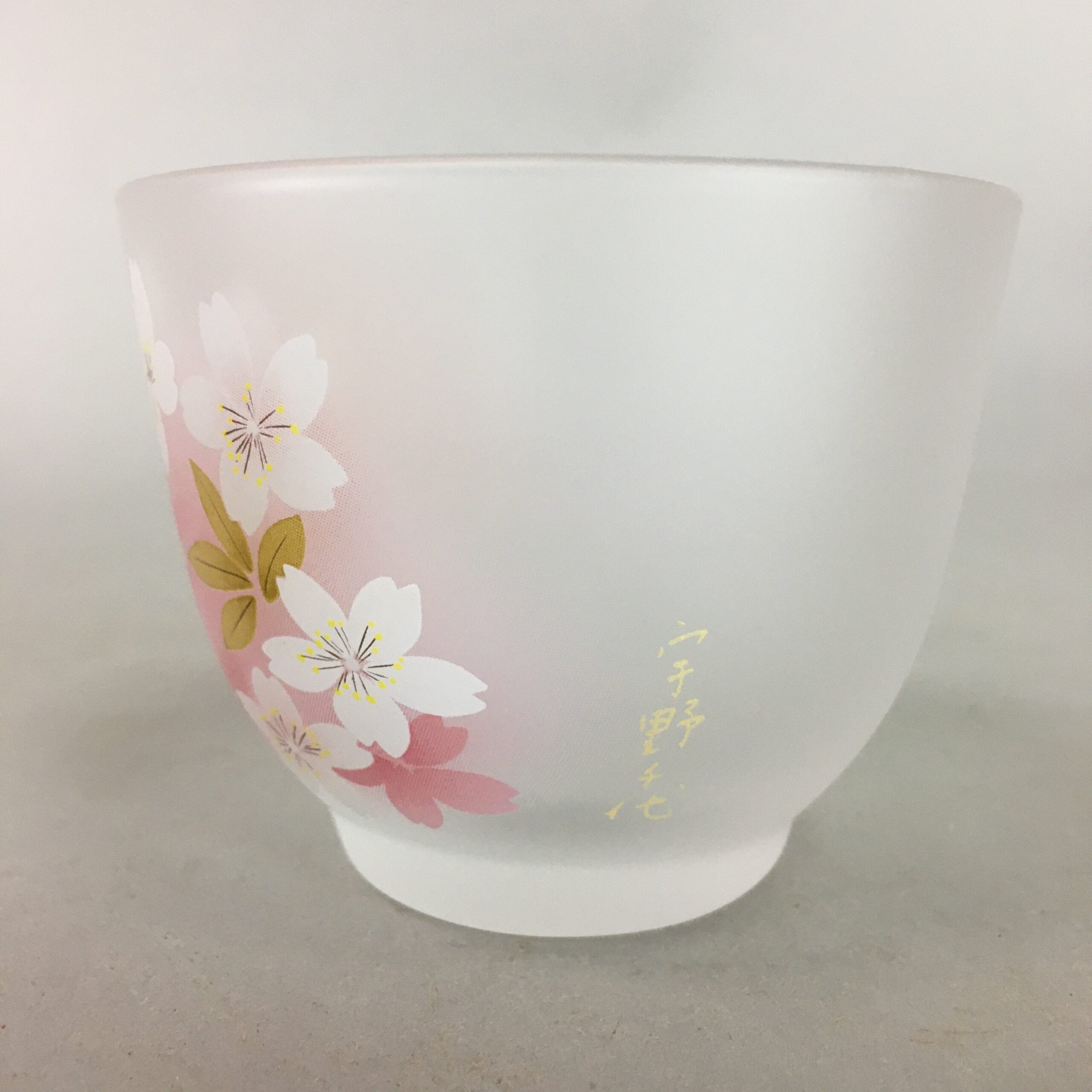 - Frosted glass cup with cherry blossom design