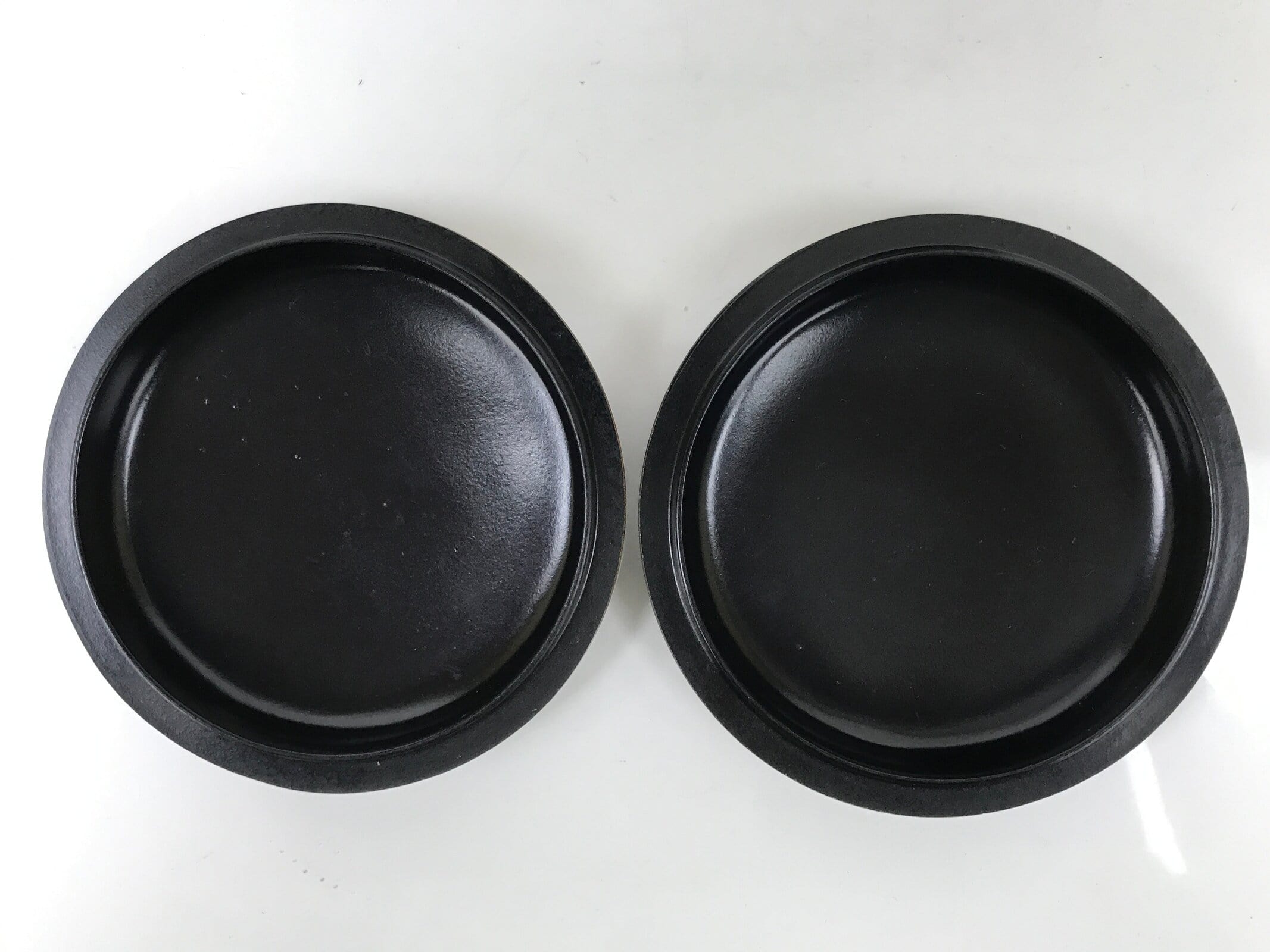 This is a vintage goishi, or go stone, set used to play the popular strategy board game Igo, or Go. This beautiful set of game pieces made from black stone and white shells is contained in lidded dark brown resin plastic bowls for easy, decorative storage.