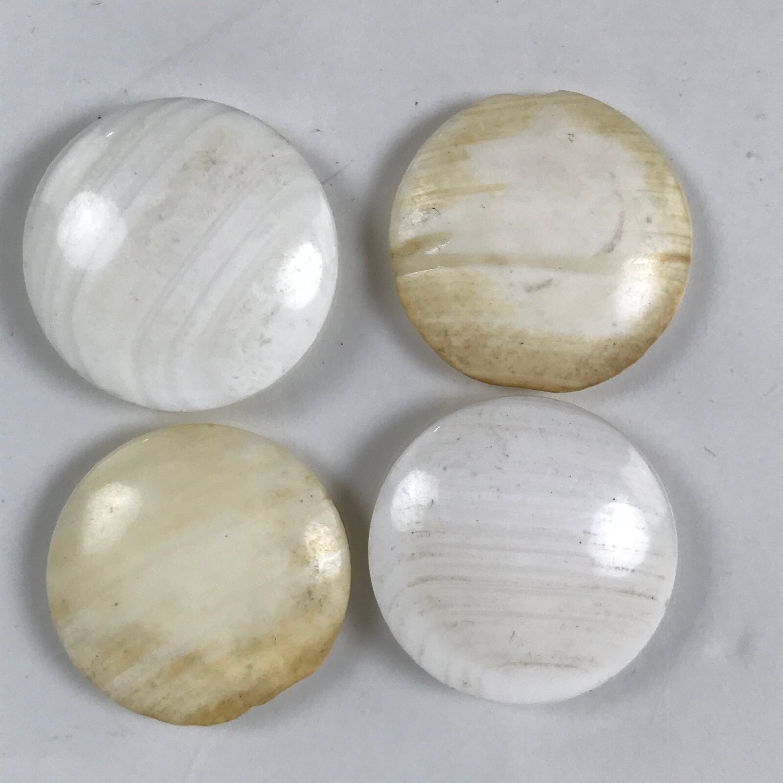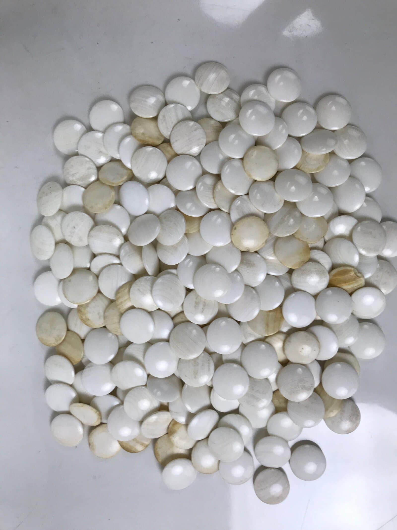 - Approx. white stone: 22 mm wide x 6 mm thick, black stone: 22 mm wide x 6 mm thick, bowl: 13 cm wide x 9 cm tall