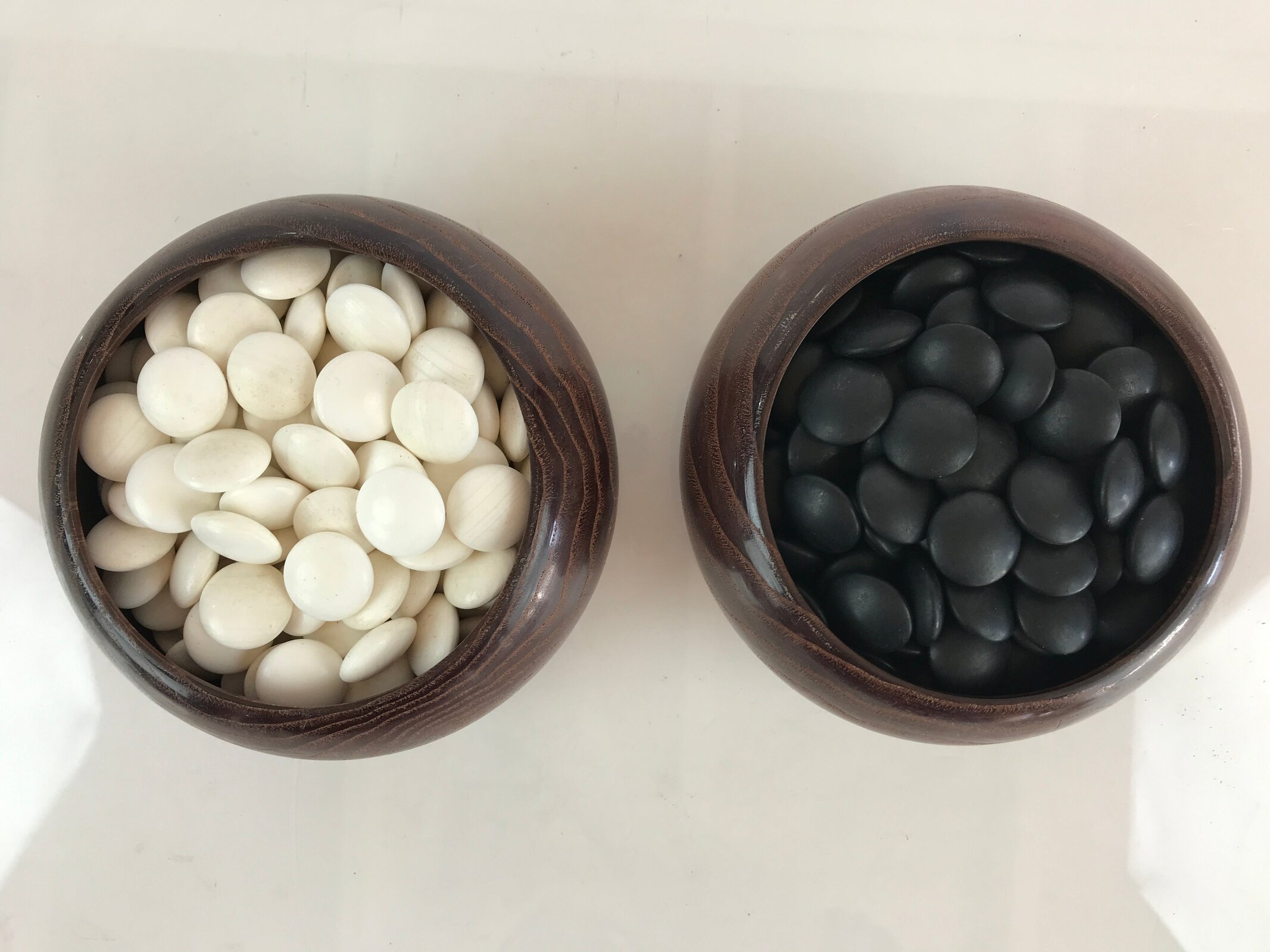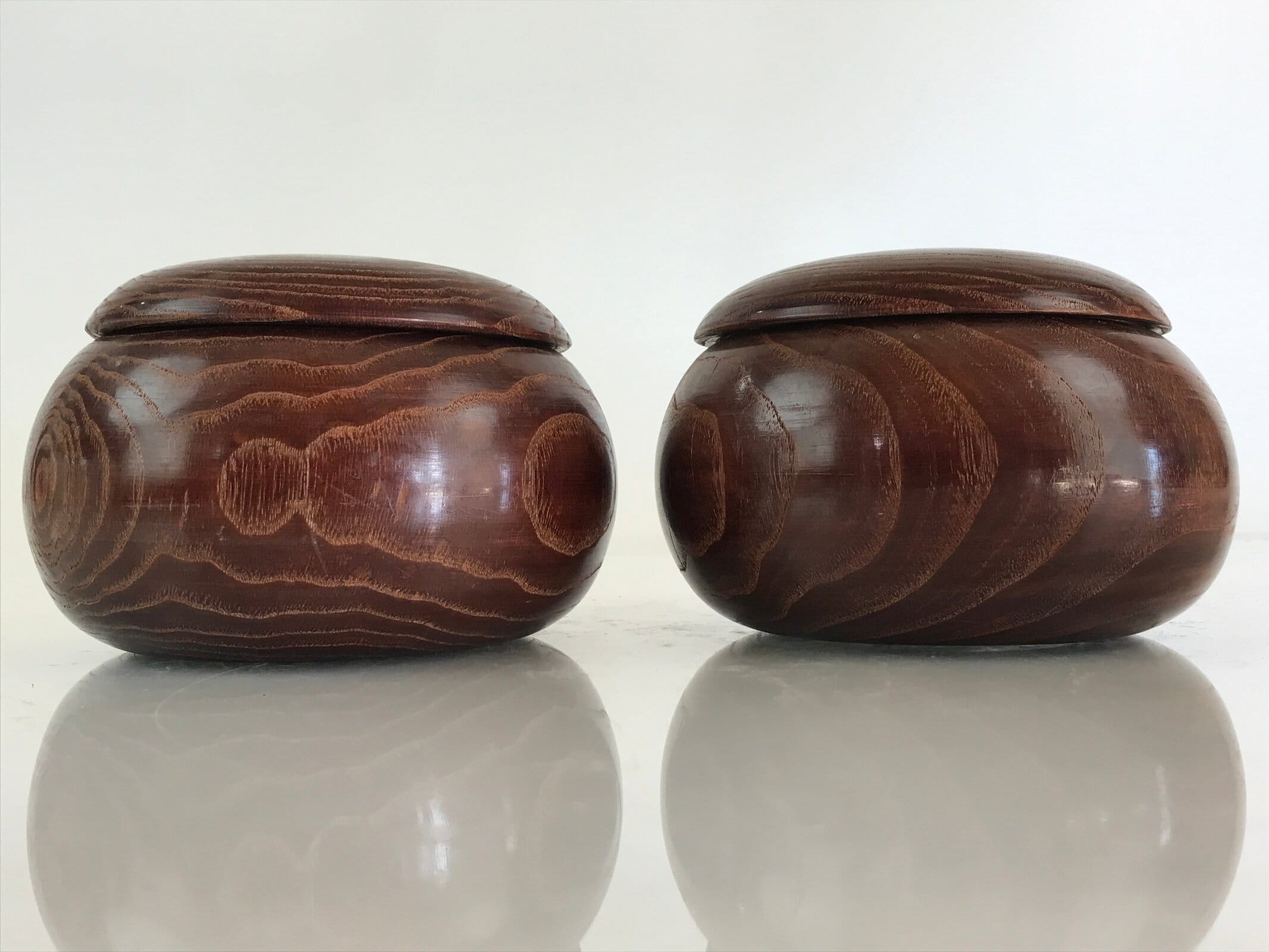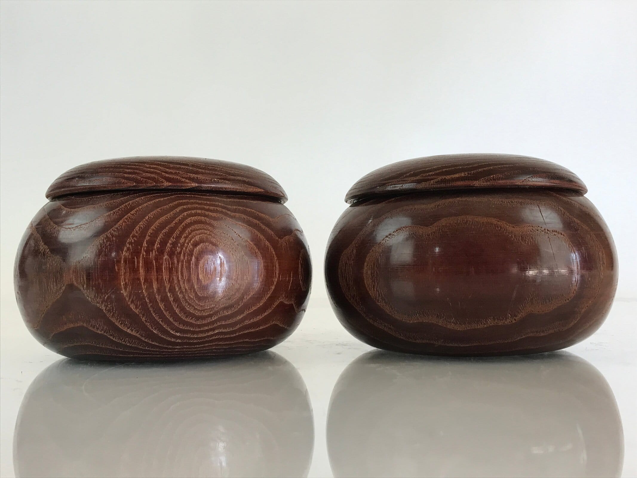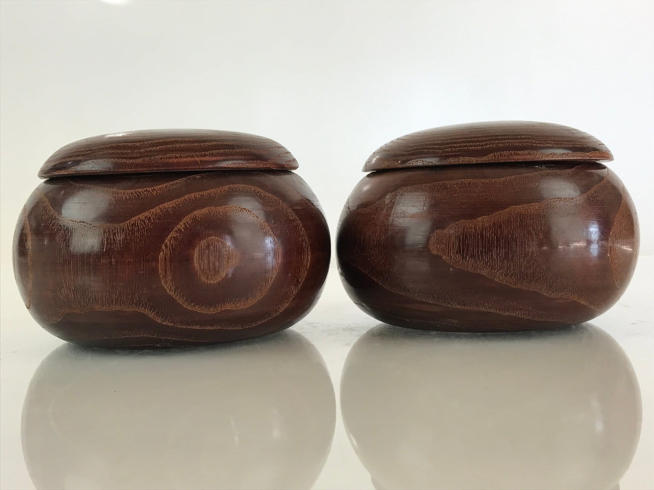 - Japanese Go stone set cased in wood storage bowls