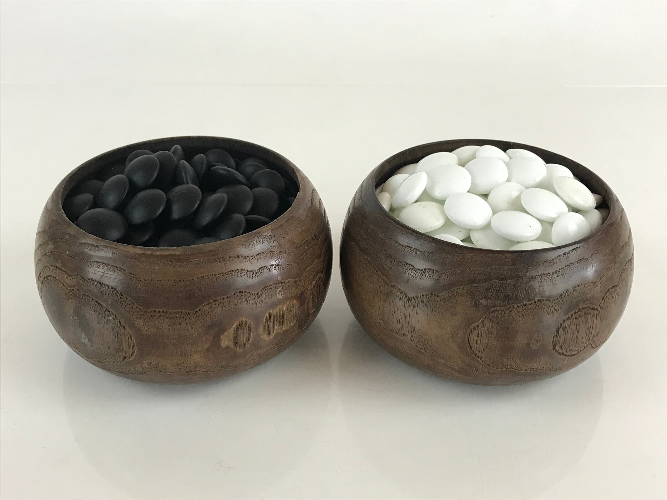 Japanese Go Stone Goishi Game Piece Complete Set Vtg Brown Wood Bowl GO81