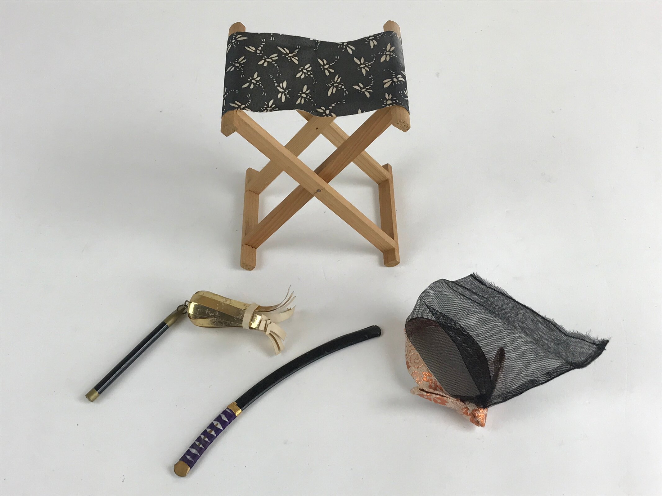 - Gogatsu Ningyo (May doll), hat, chair, and sword