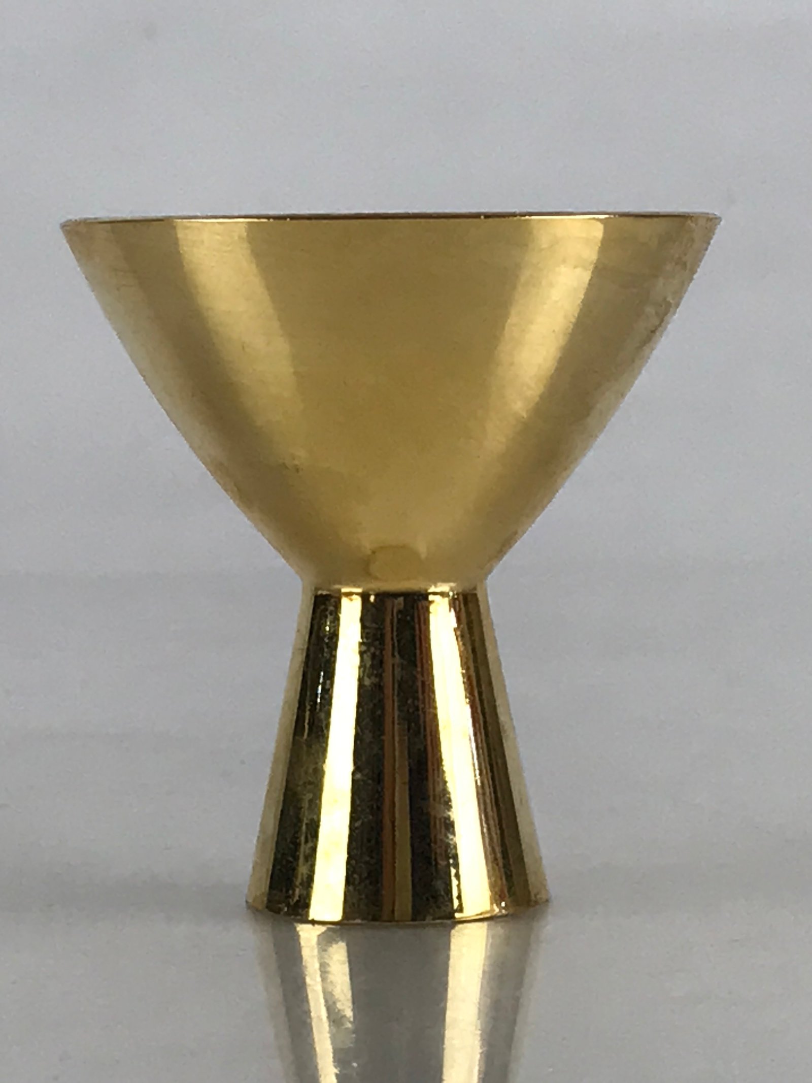 This is a vintage Japanese sake cup, Sakazuki. This is a metal sake cup plated with gold. Sakazuki refers specifically to flat sake cups. Ochoko is a small cup that can be used to drink sake in one or two sips. Guinomi is a cup that is large enough to fit your nose when drinking sake.