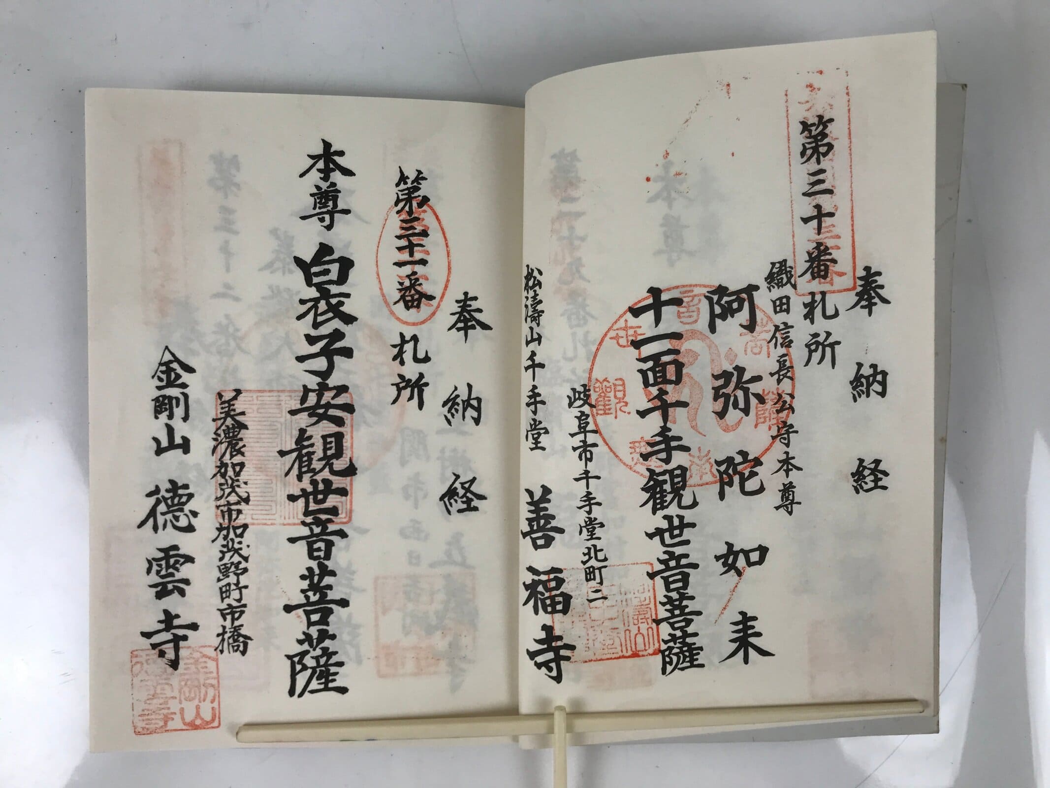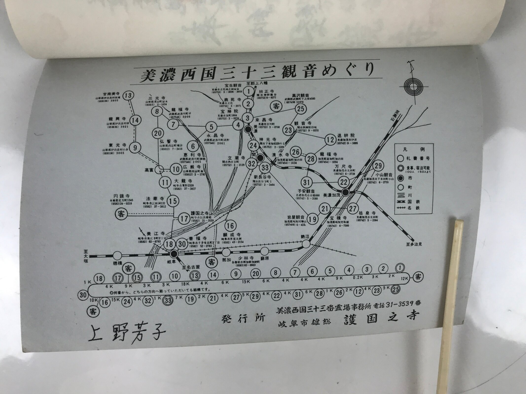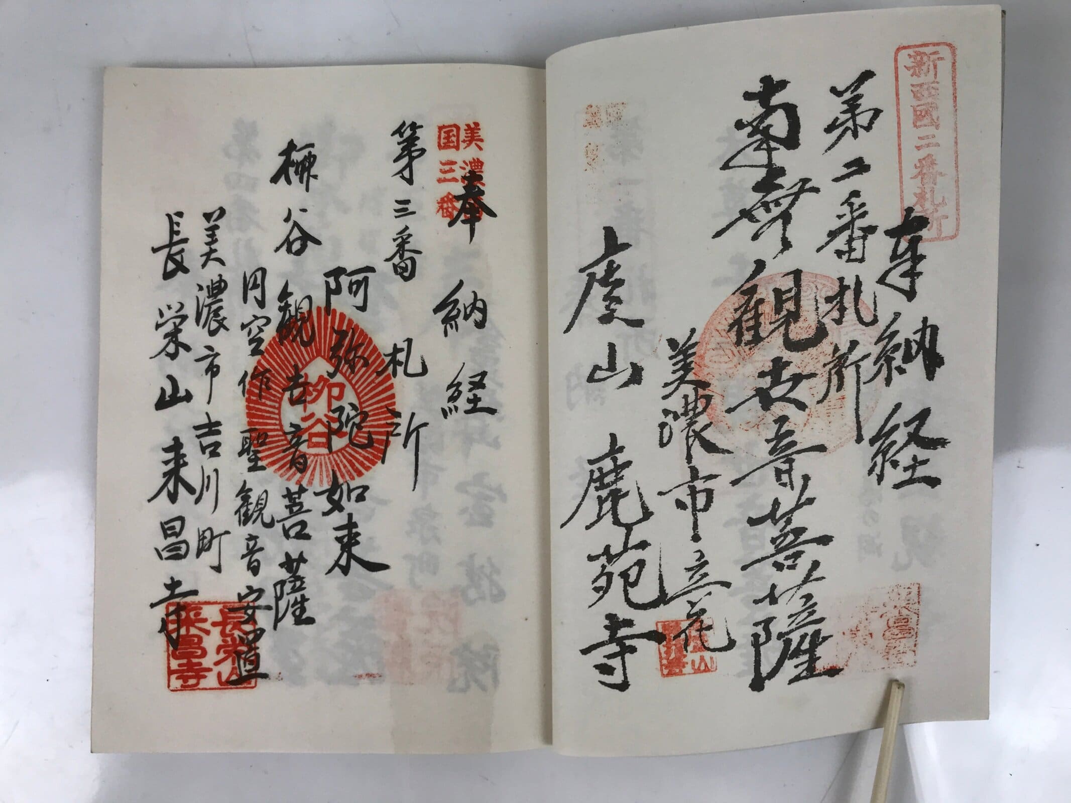 - Some characters: 美濃西国三十三霊場 Mino Saikoku 33 Sacred Places Pilgrimage, 奉納経 hounou-kyo dedicated seal stamp book