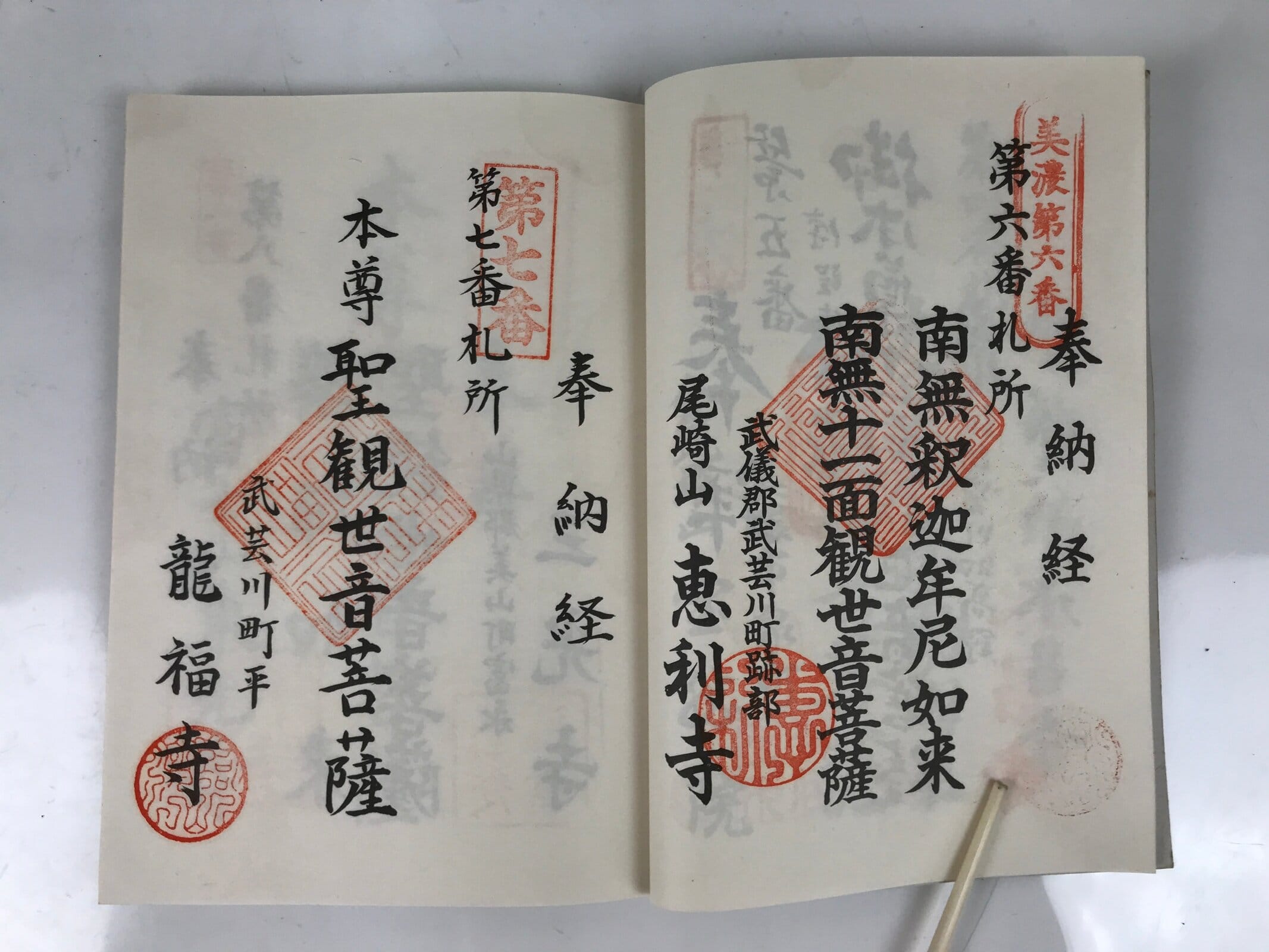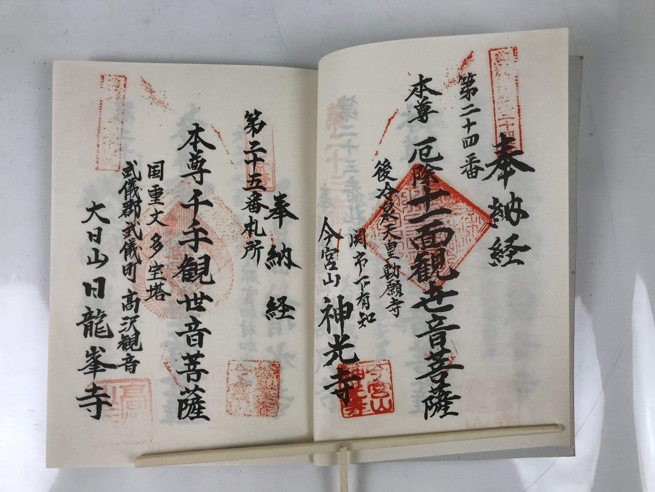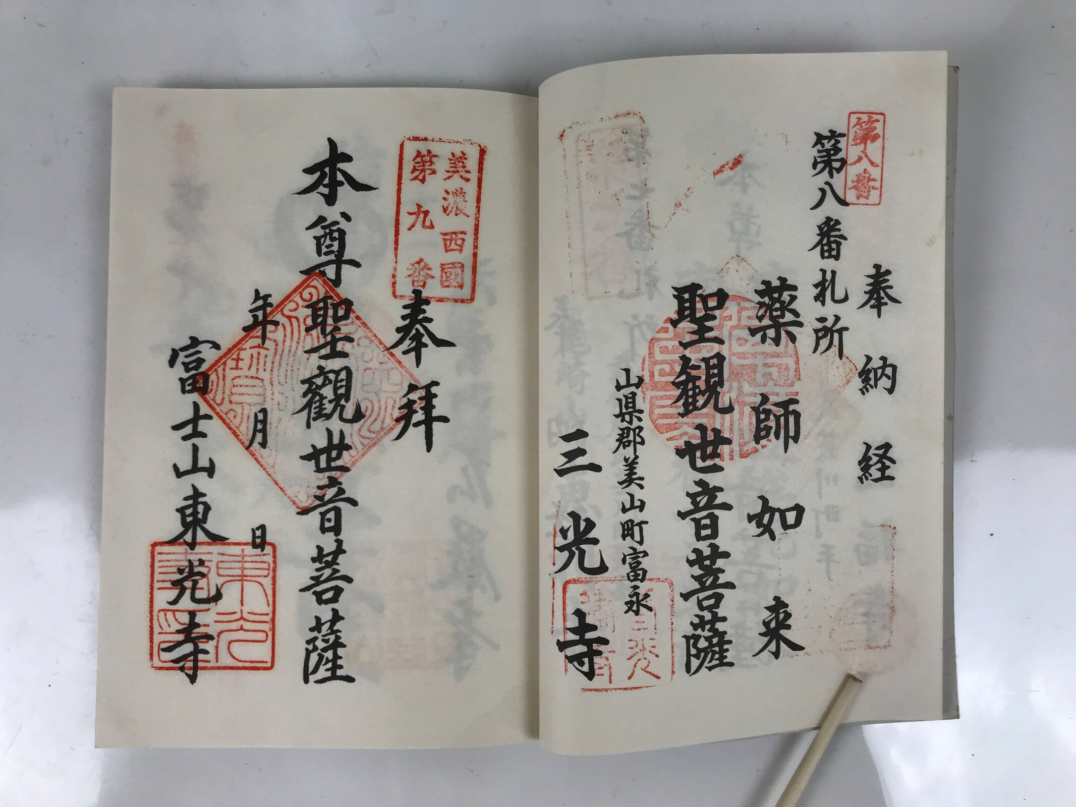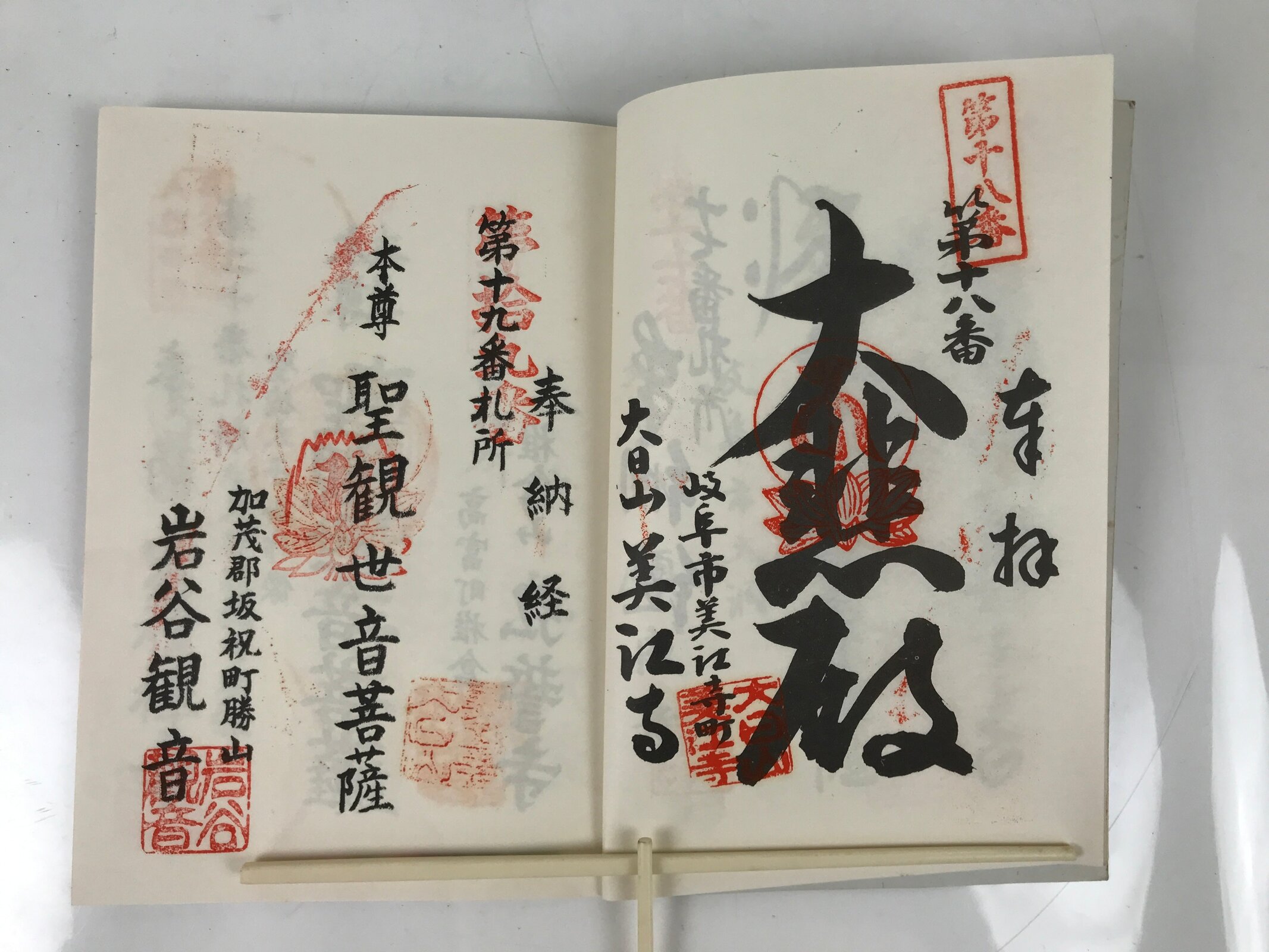 - Some characters: 美濃西国三十三霊場 Mino Saikoku 33 Sacred Places Pilgrimage, 奉納経 hounou-kyo dedicated seal stamp book
