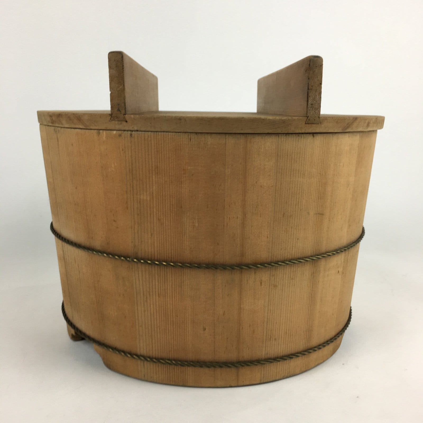 Japanese Handmade Wooden Bucket Oke Vtg Sushi Rice Water Pickles JK281