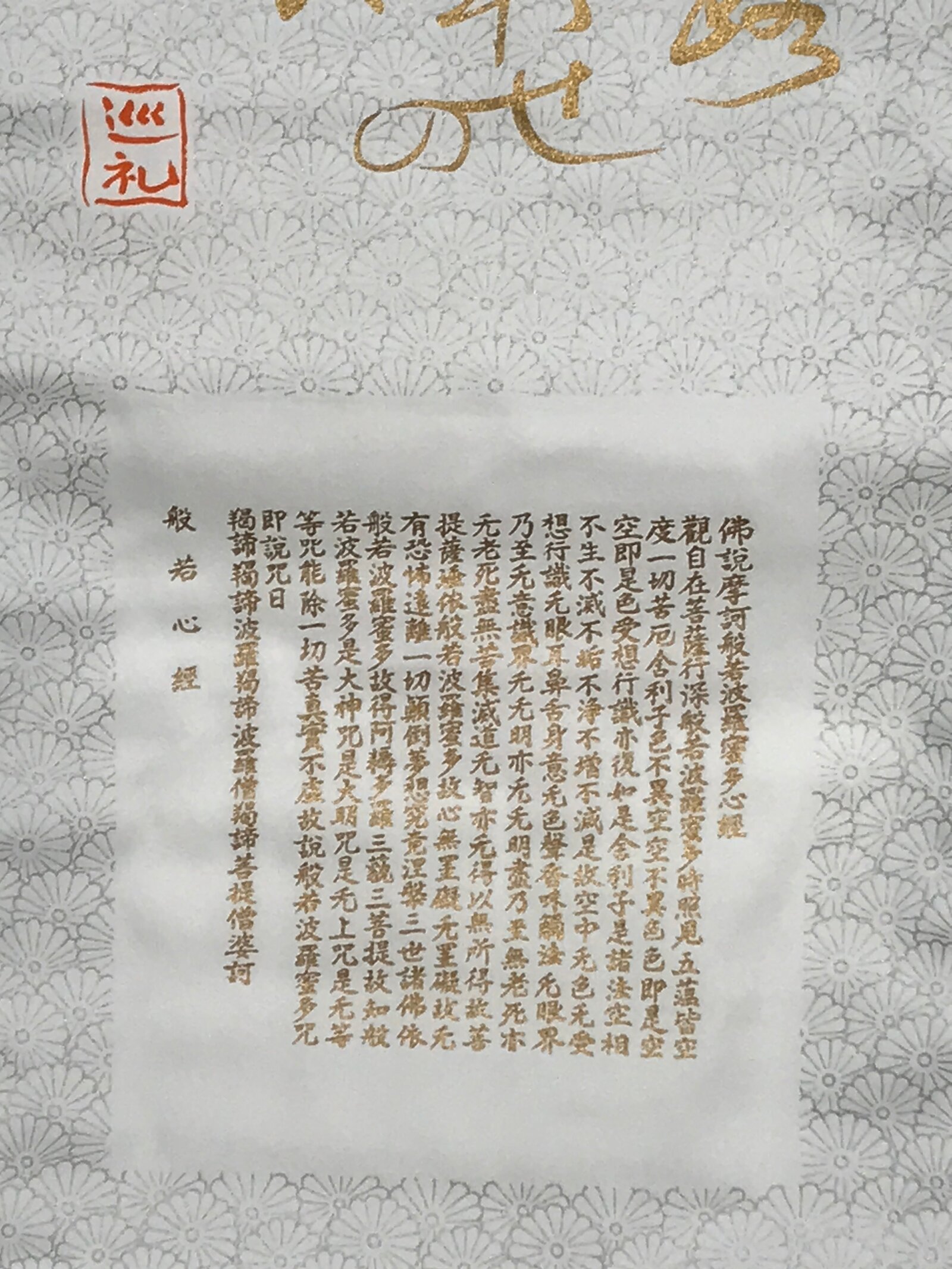 - Some characters: 般若心経 hannya shingyo Heart Sutra