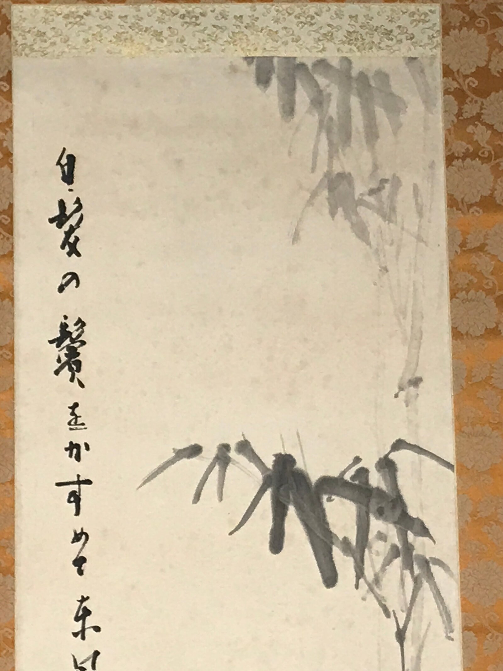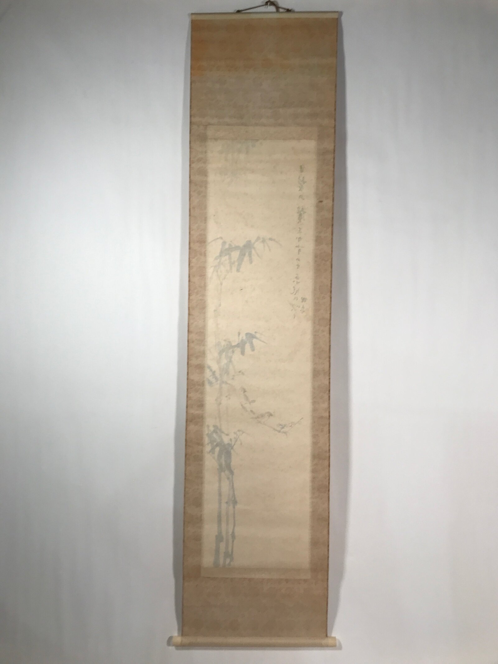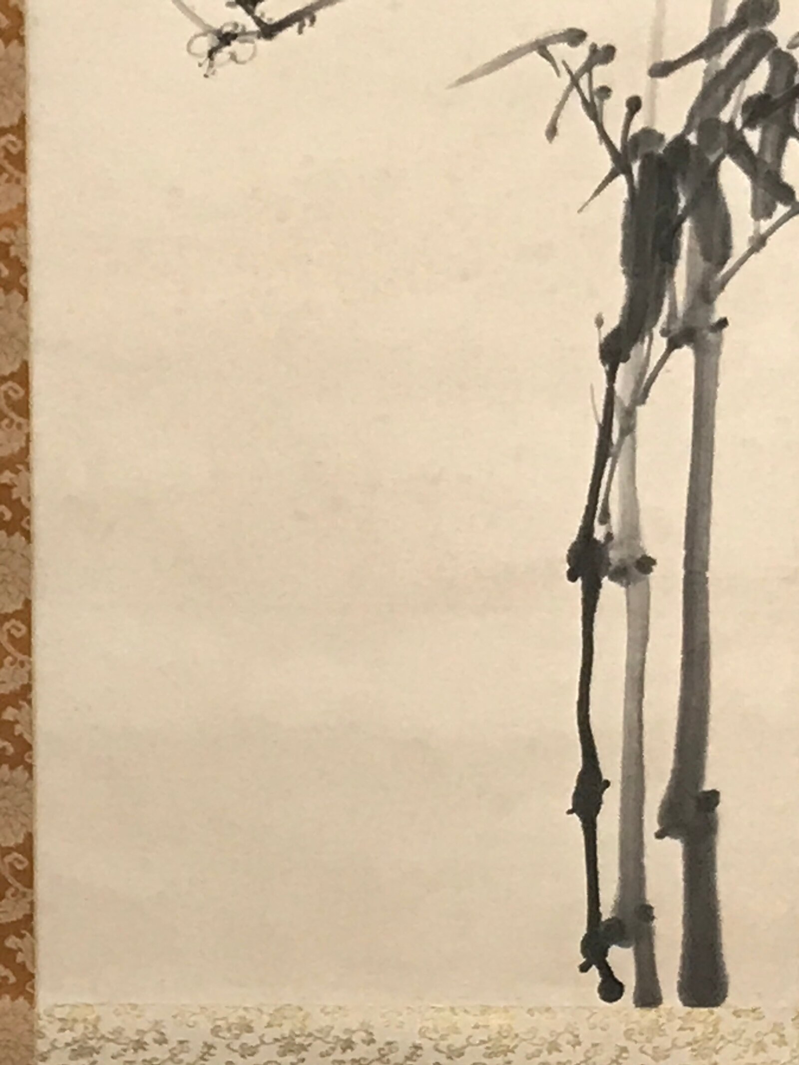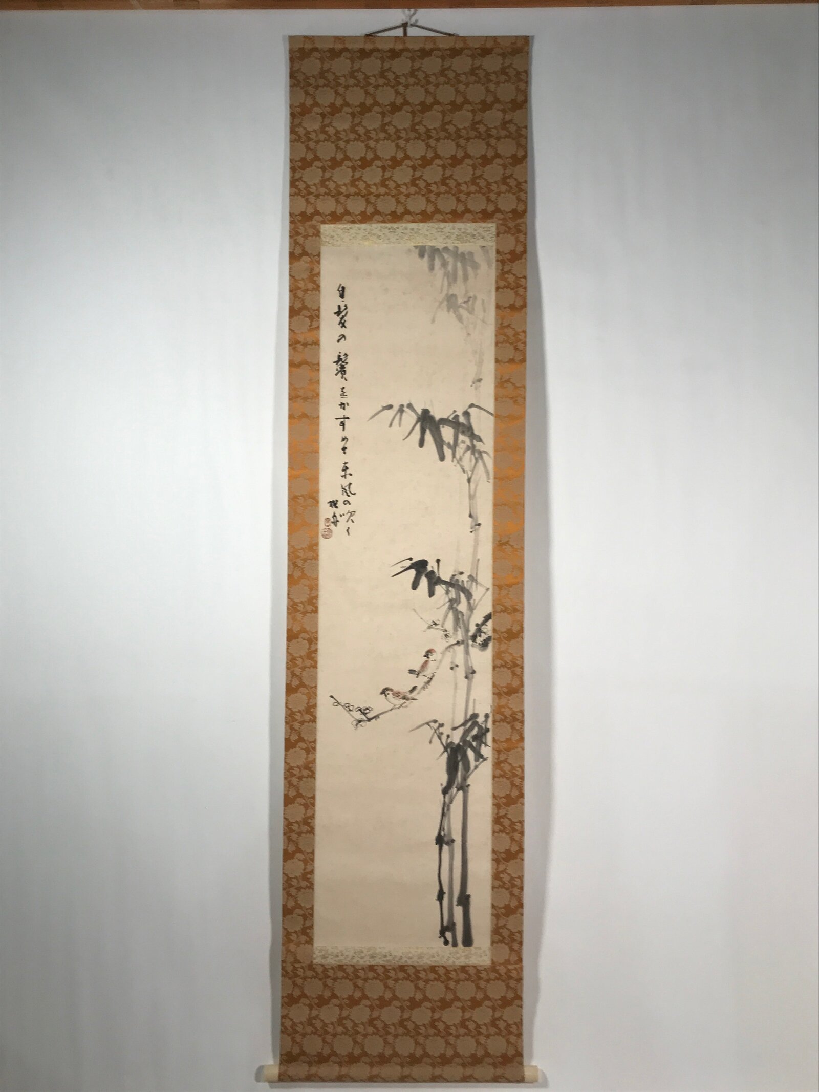 January 24, 2026Japanese Hanging Scroll Vtg Kakejiku Bamboo Birds Calligraphy Kanji Color KJ75