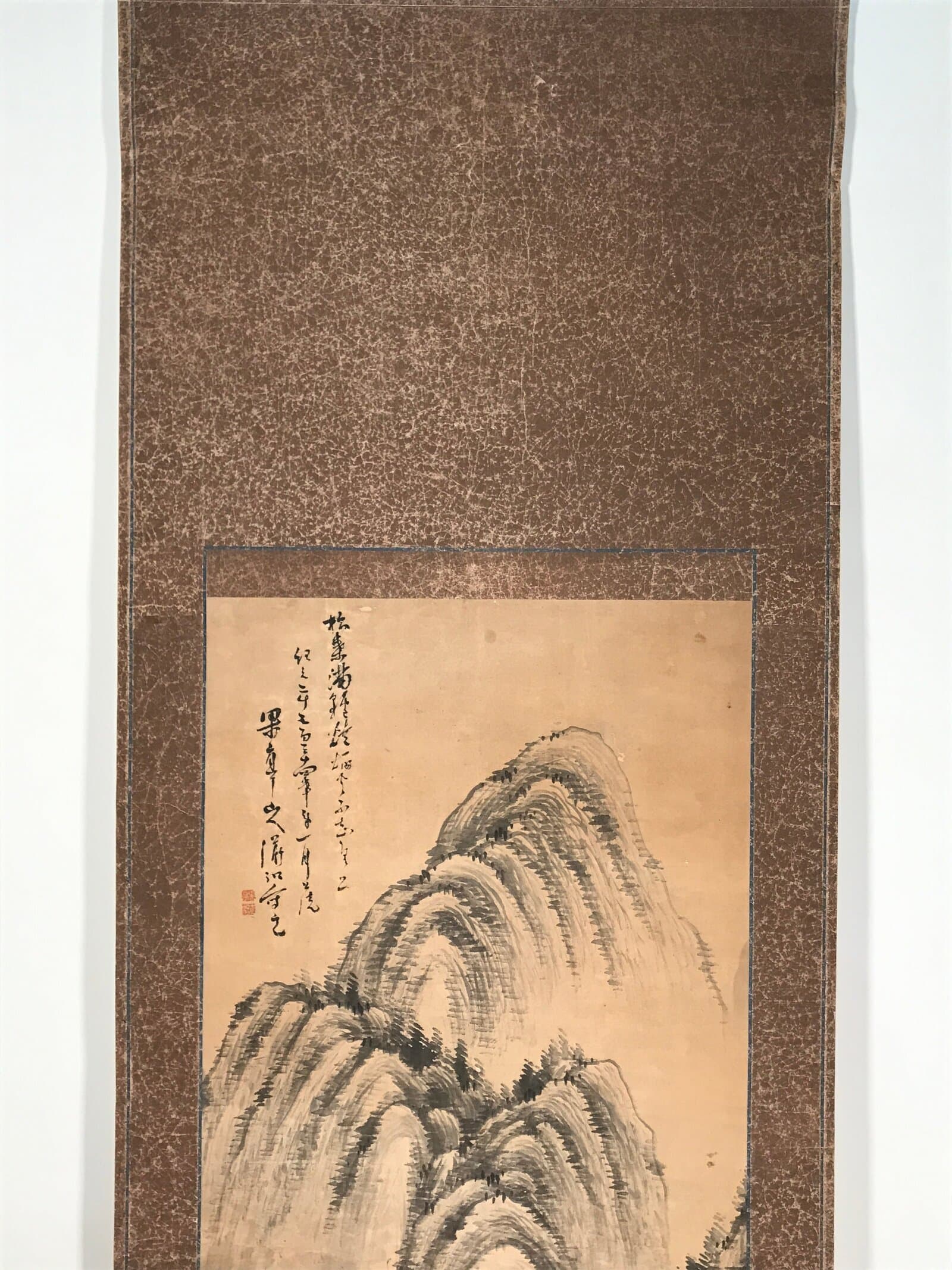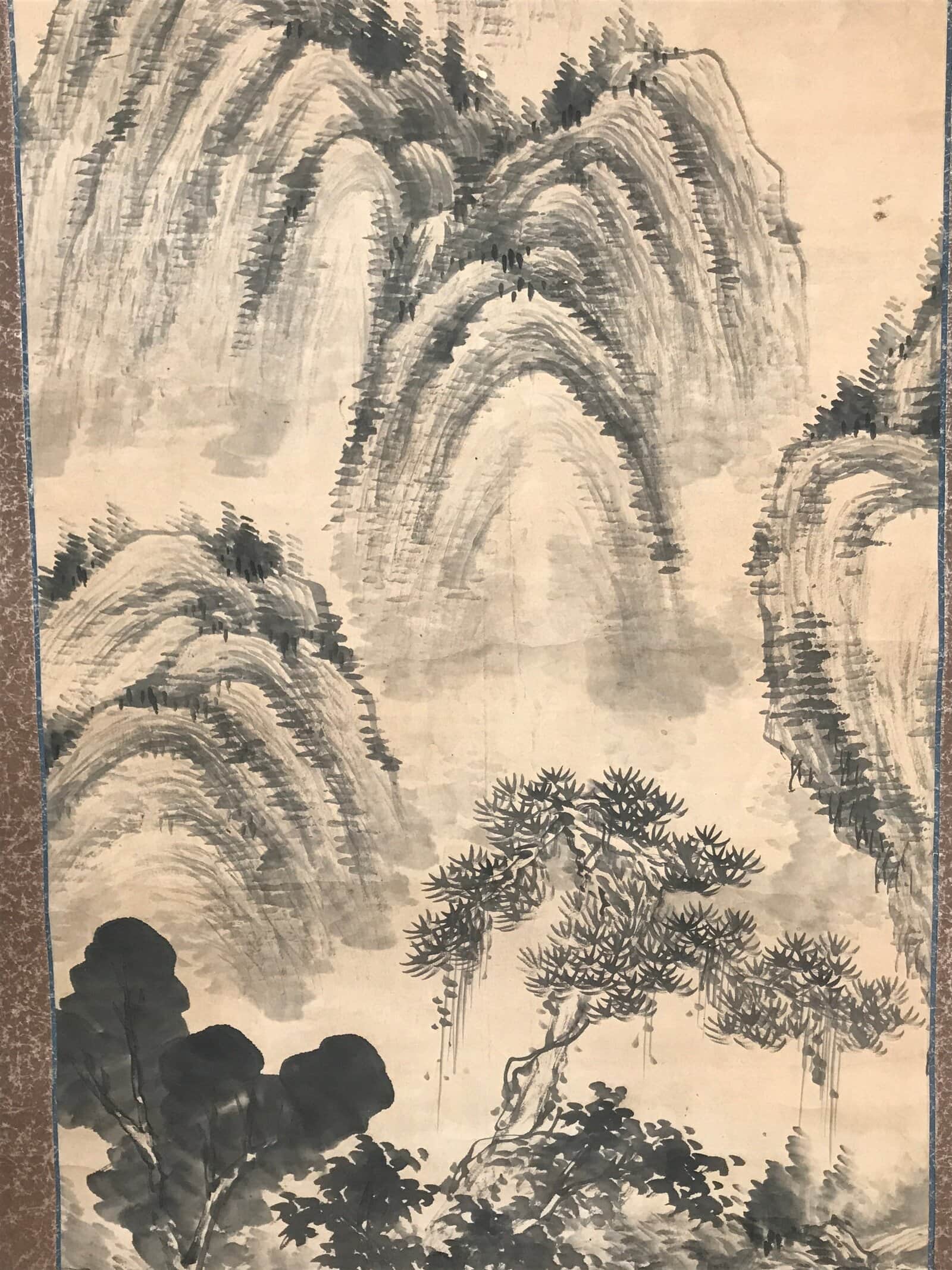 January 25, 2026Japanese Hanging Scroll Kakejiku Vtg Man Sitting Mountains Landscape Black KJ193