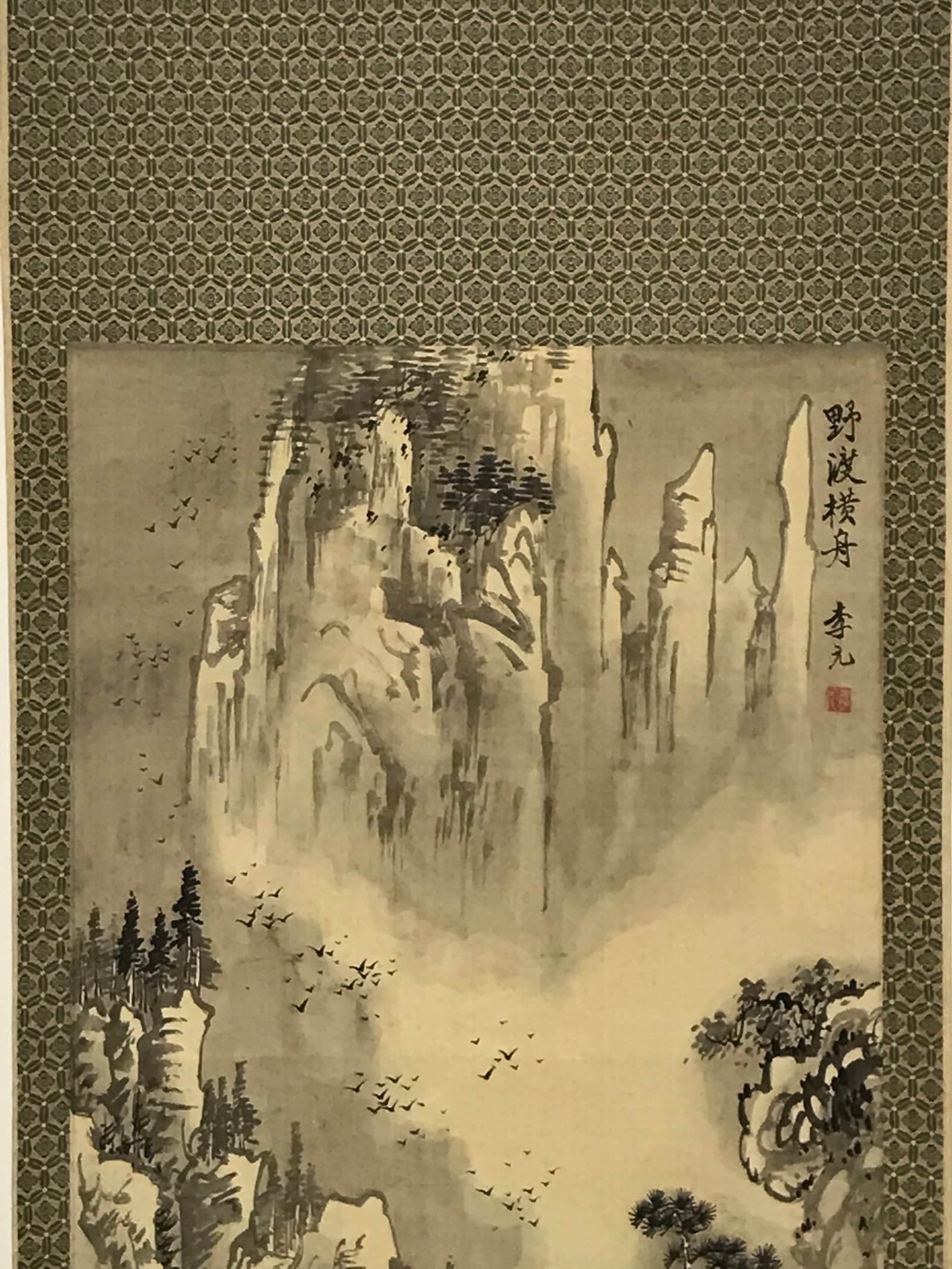 January 25, 2026Japanese Hanging Scroll Kakejiku Vtg Mountain River Birds Black Monochrome KJ168