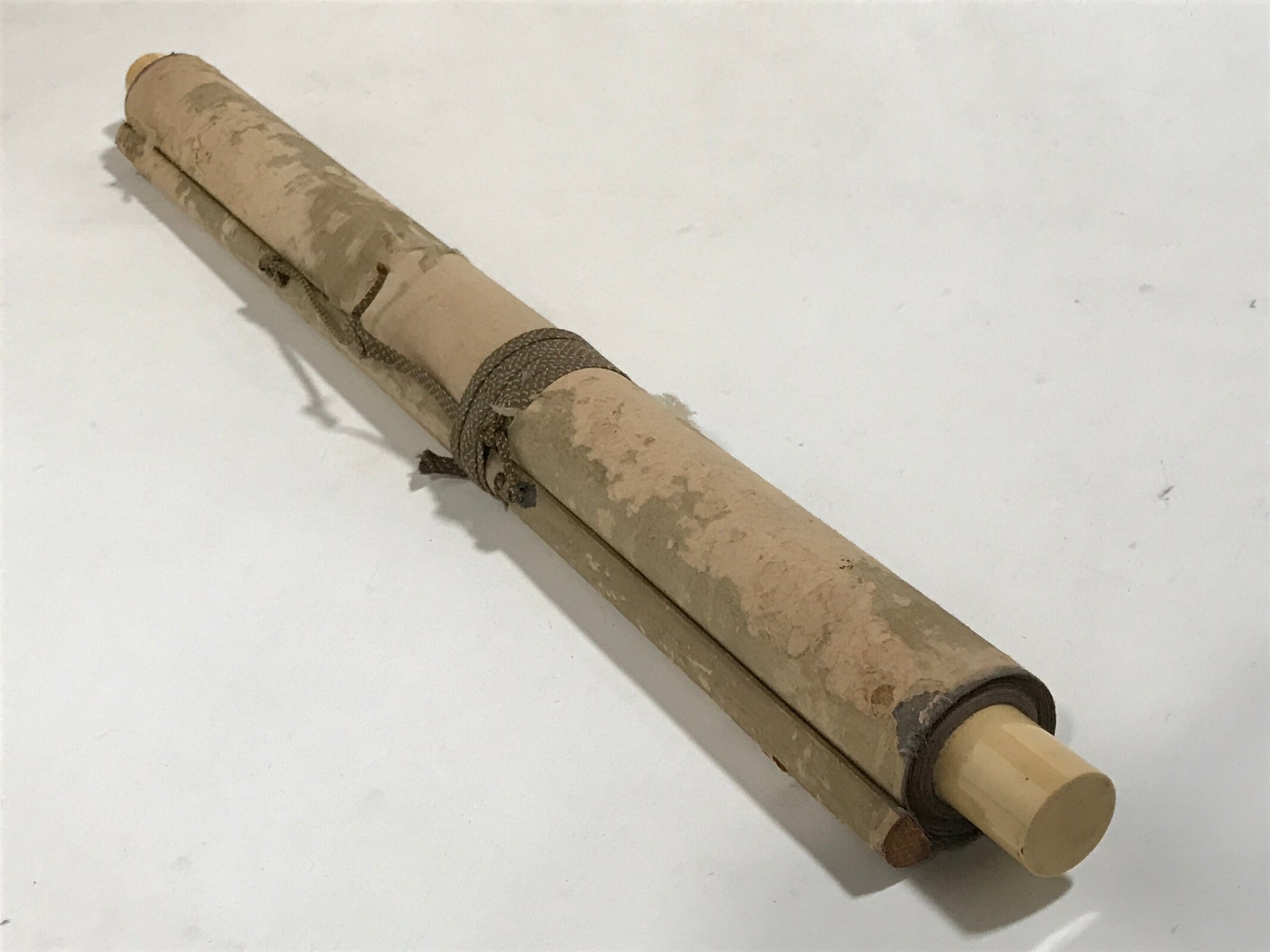 - Good condition considering its age. Small holes: top right of image, top of scroll. Visible dot stains on image. Lightly creased. Stains on back. Wear and tear due to age. Please see the photos.