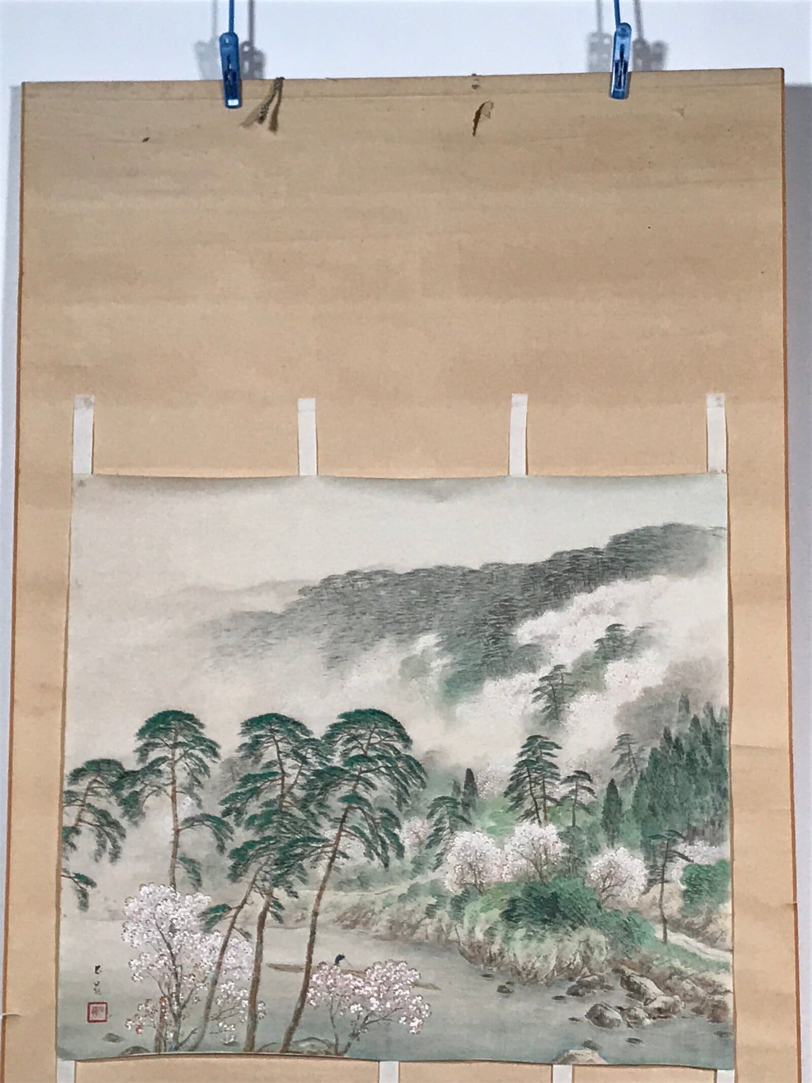 January 23, 2026Japanese Hanging Scroll Vtg Mountain Trees River Sansui Kakejiku Chagake SC939