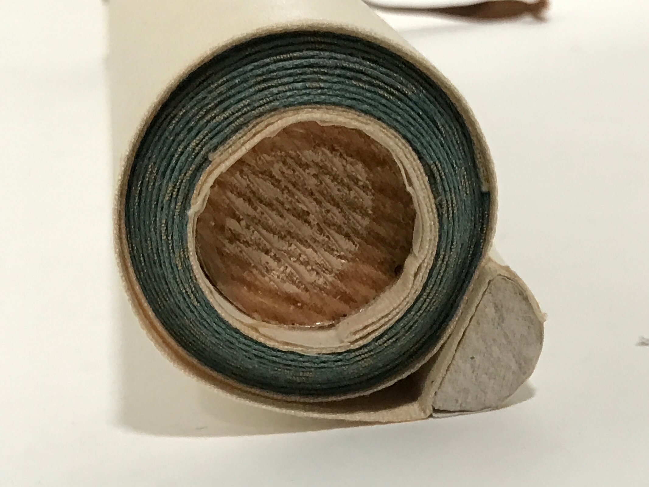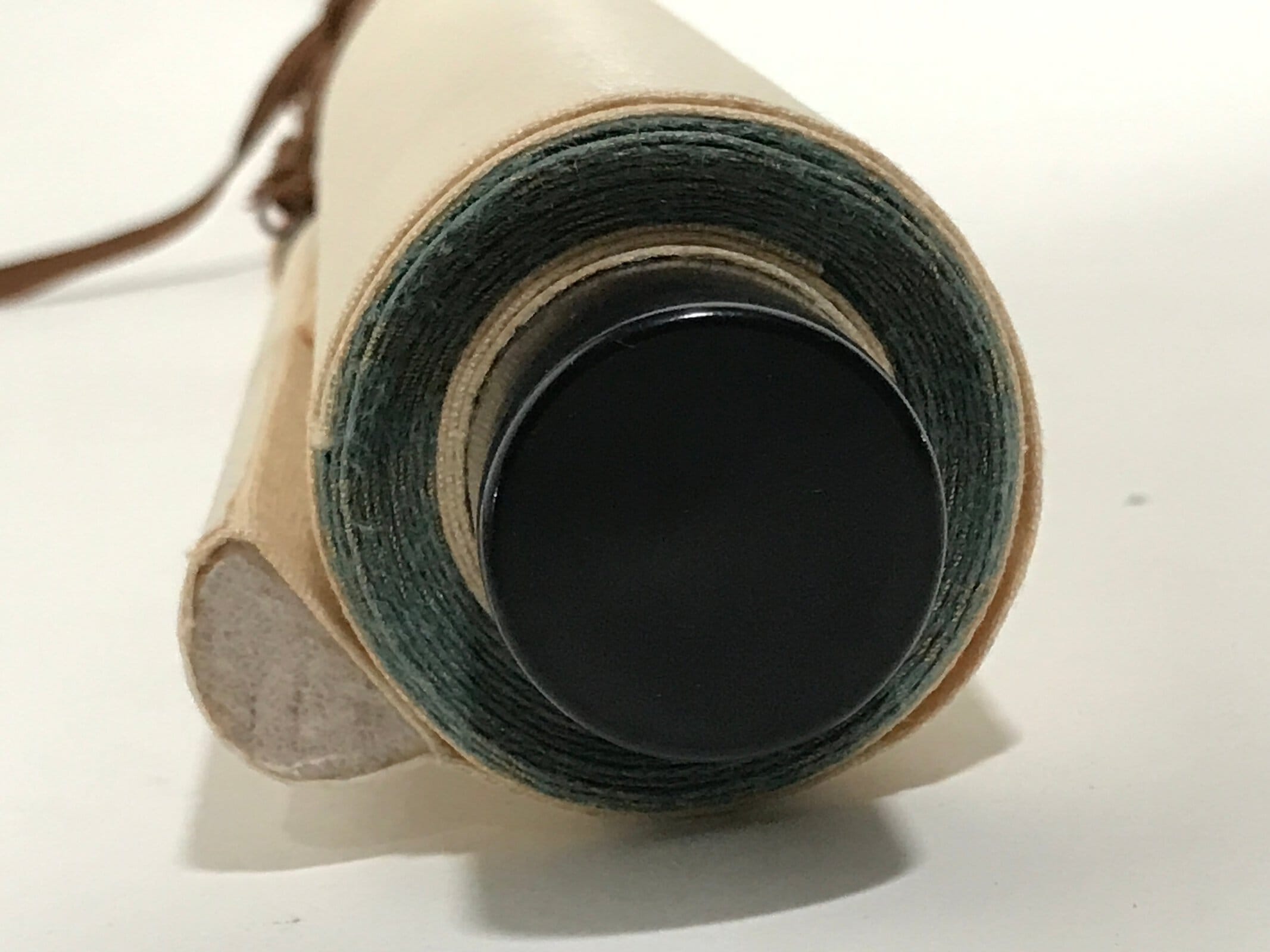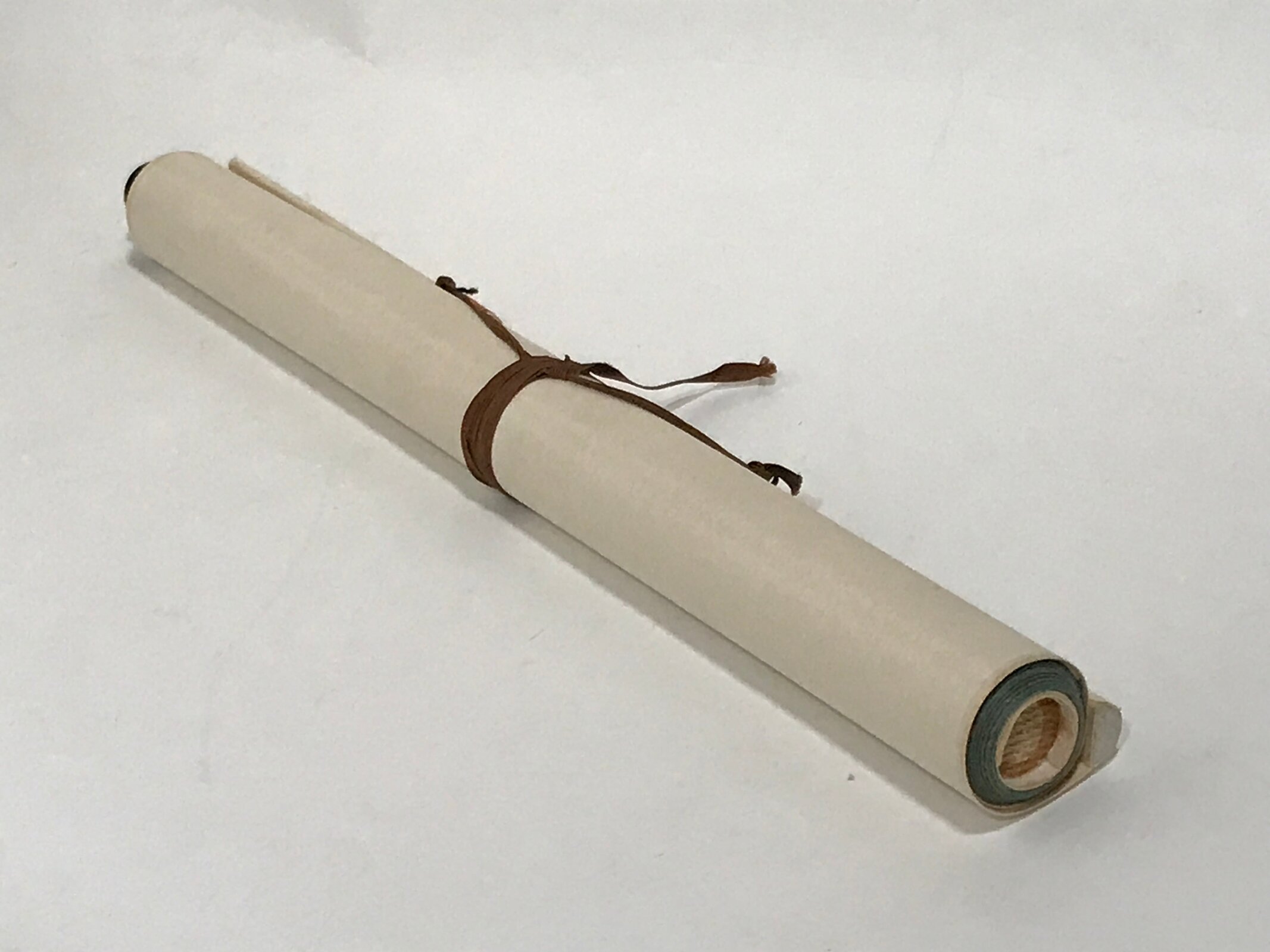 - Good condition considering its age. One end cap is missing. Tiny stains on front. Big kanjis in light ink visible on back. Wear and tear due to age. Please see the photos.