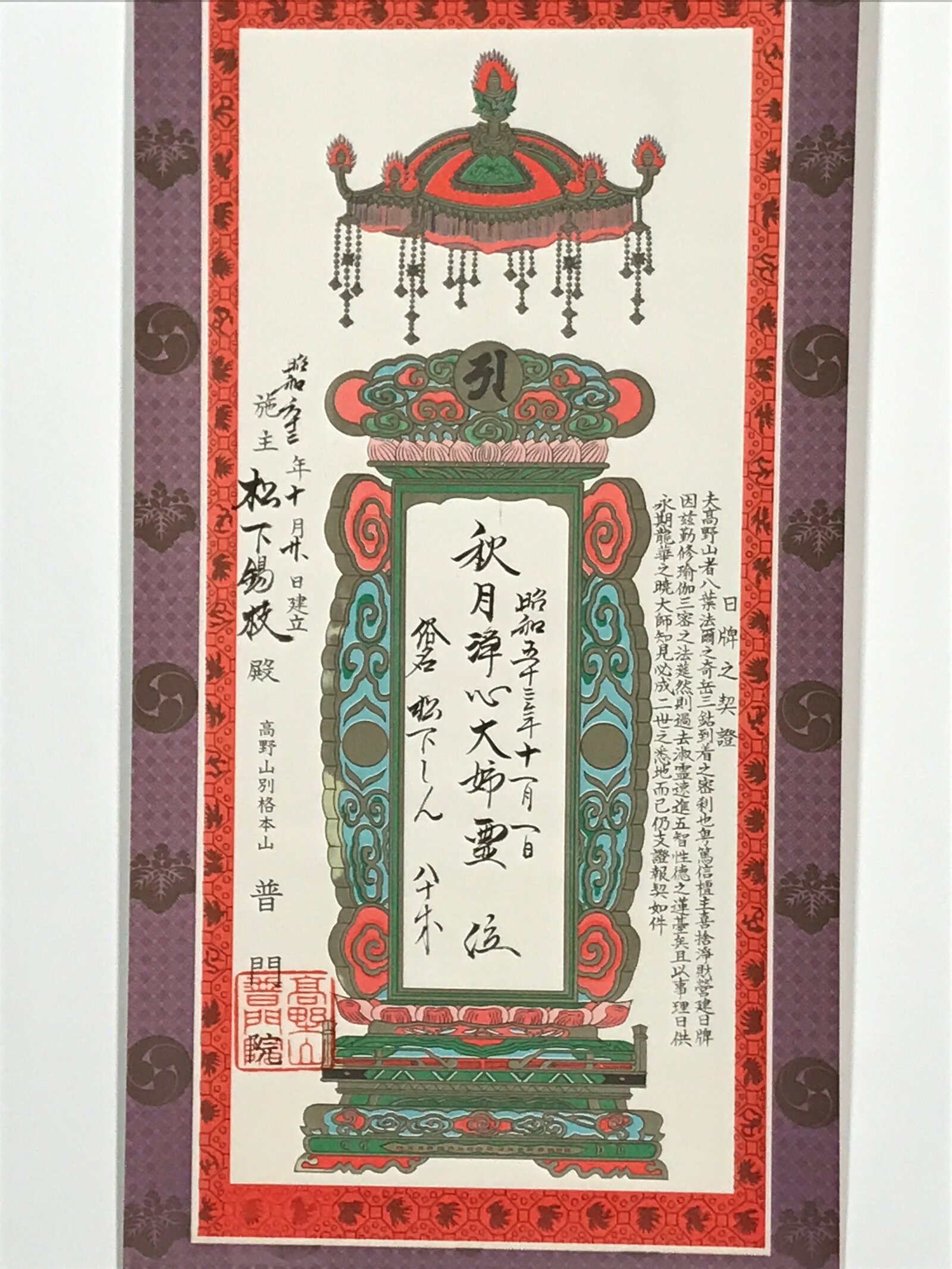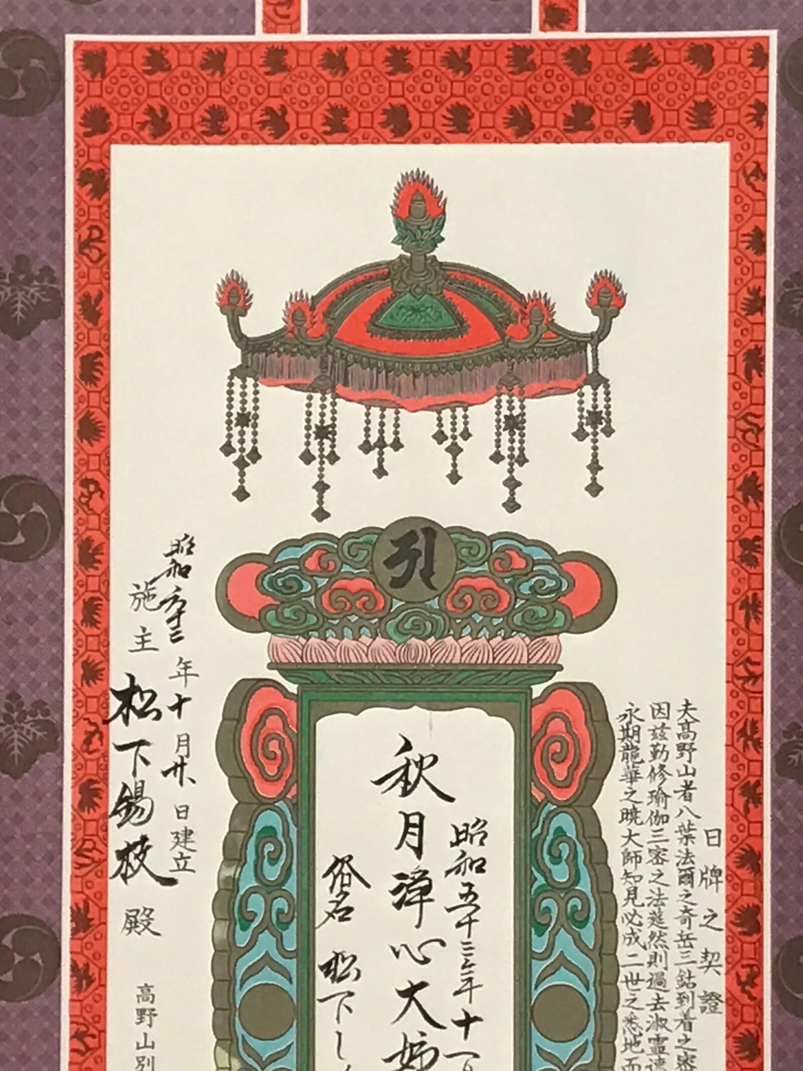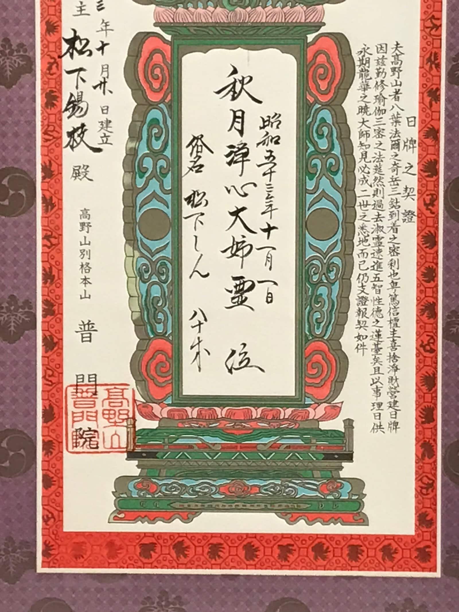 - Some characters on the box: 日牌之契證 nippai no keisho, 高野山別格本山 普門院 koyasan bekkaku honzan fumon’in
