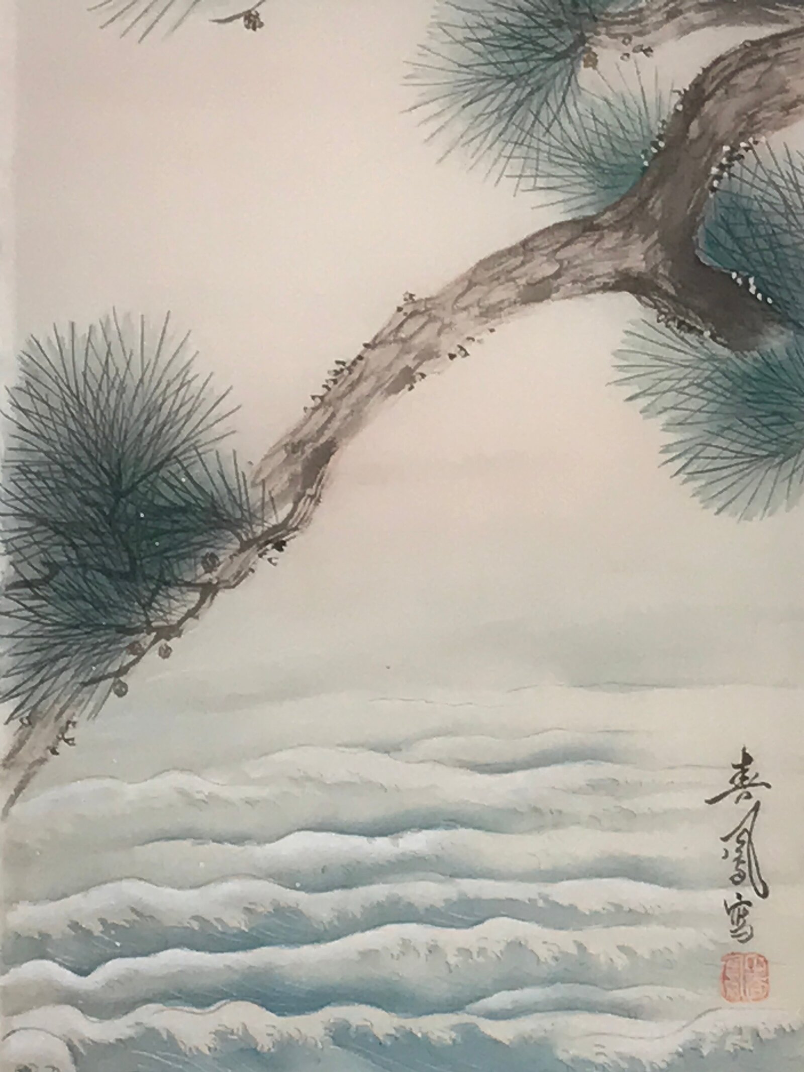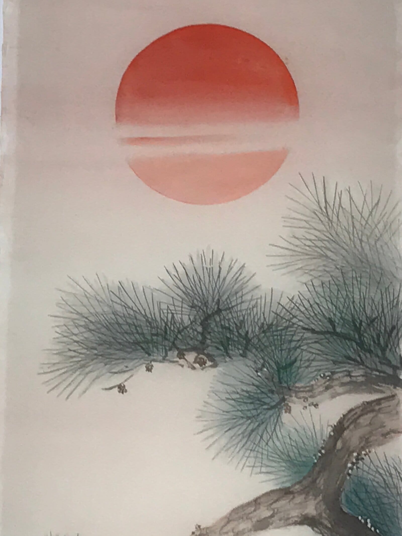 January 22, 2026Japanese Picture For Hanging Scroll Vtg Rising Red Sun Waves Pine Tree SC989