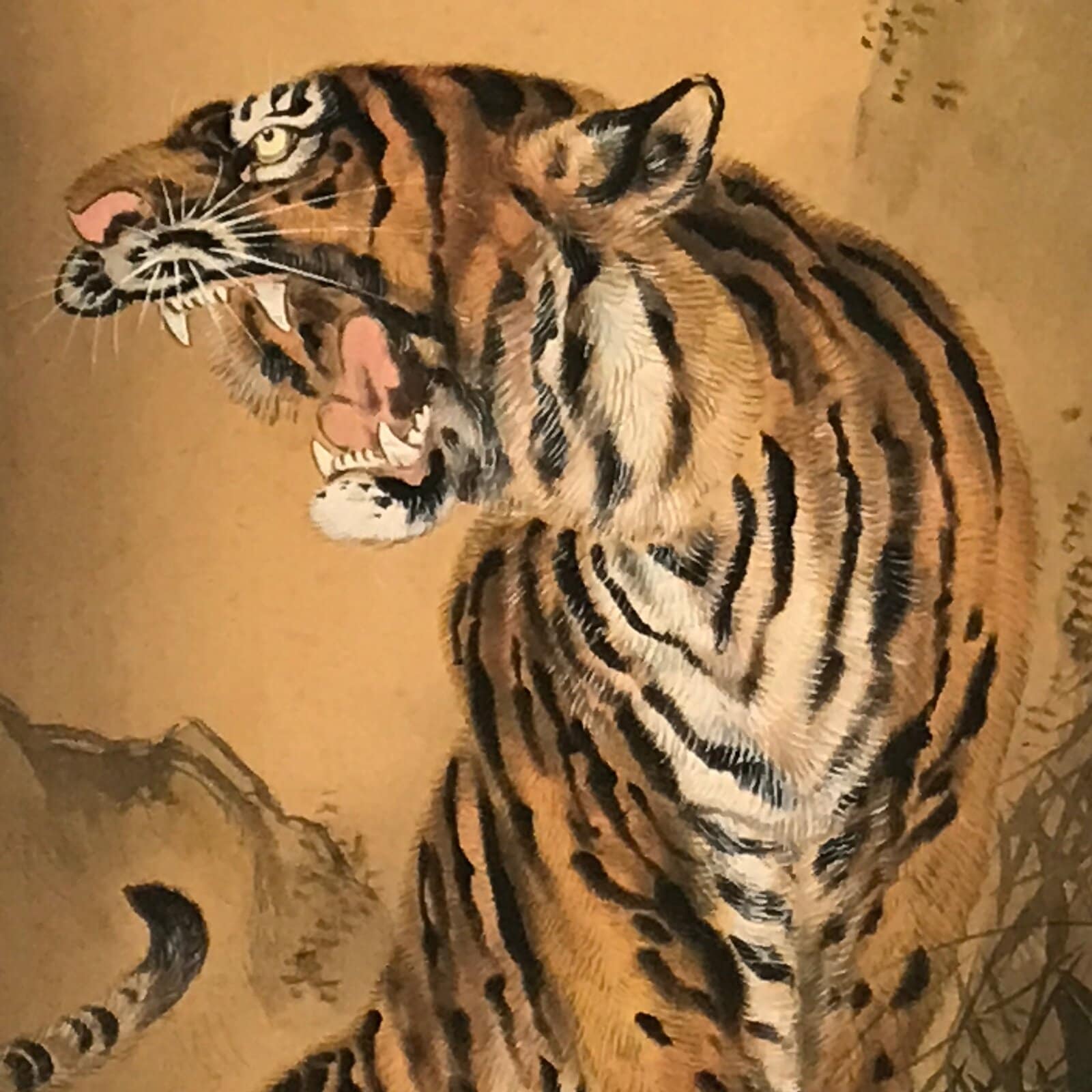 January 21, 2026Japanese Hanging Scroll Vtg Roaring Tiger Orange Zodiac Animal Kakejiku SC819