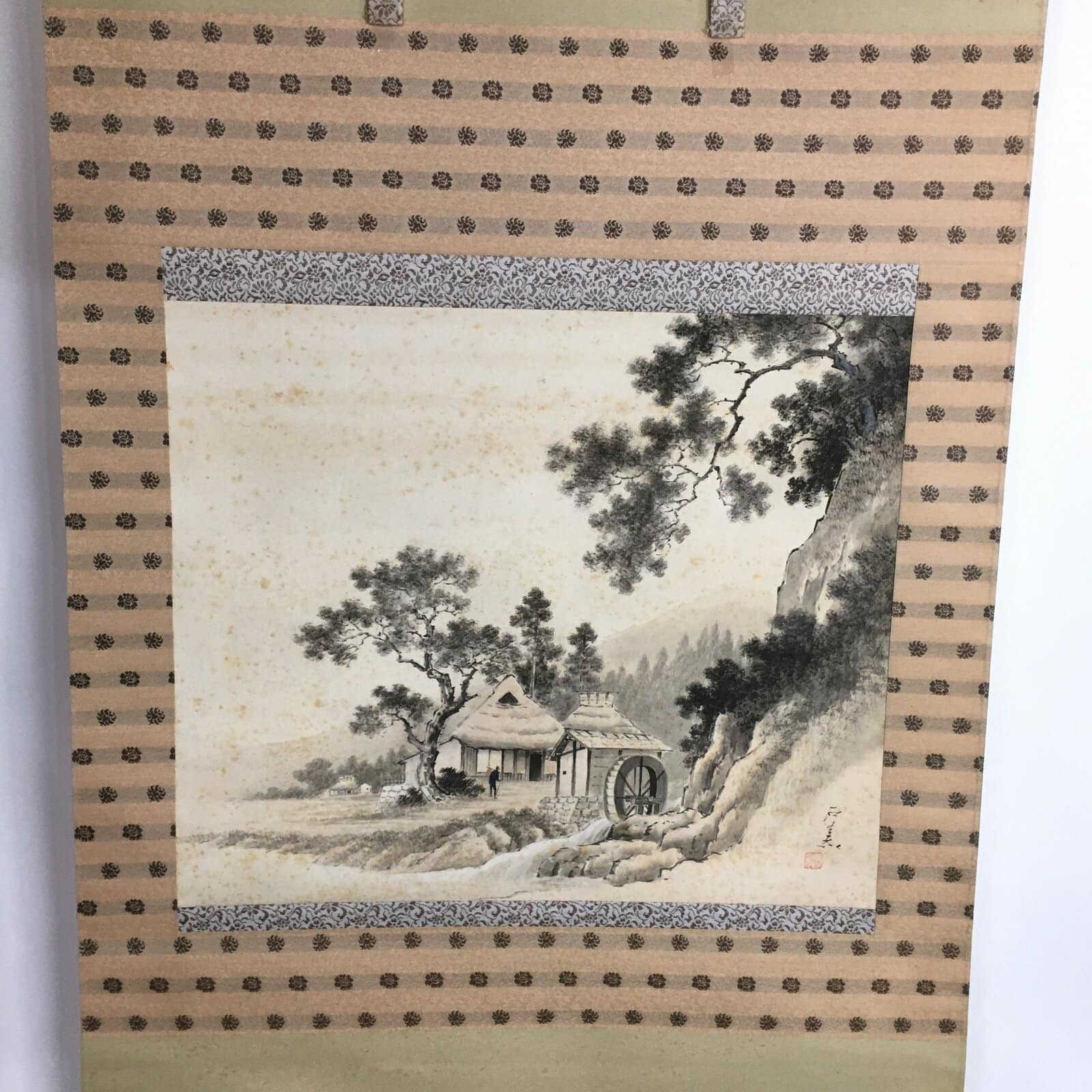 January 18, 2026Japanese Hanging Scroll Vtg Kakejiku Kakemono Ink Painting Country House SC612