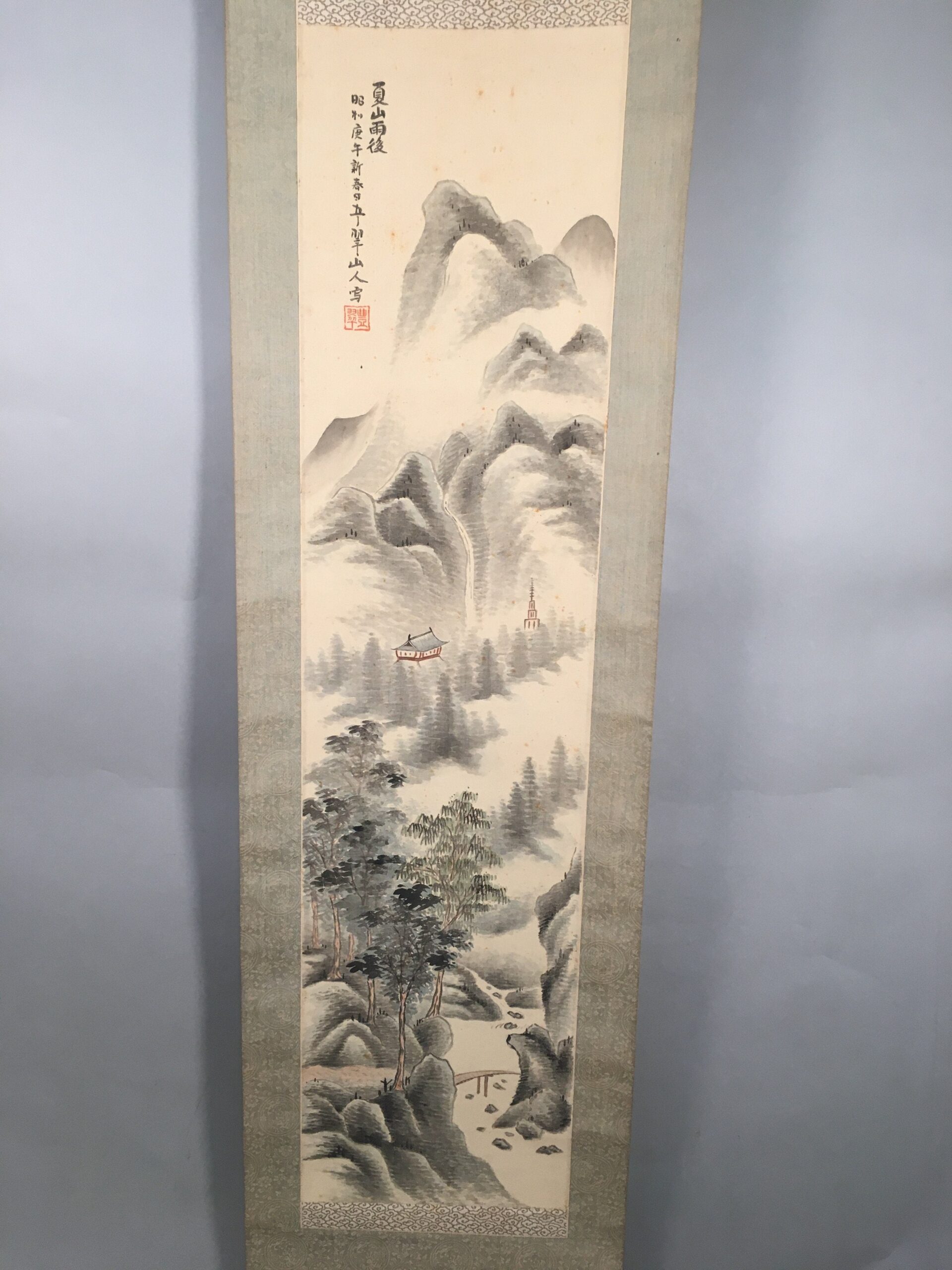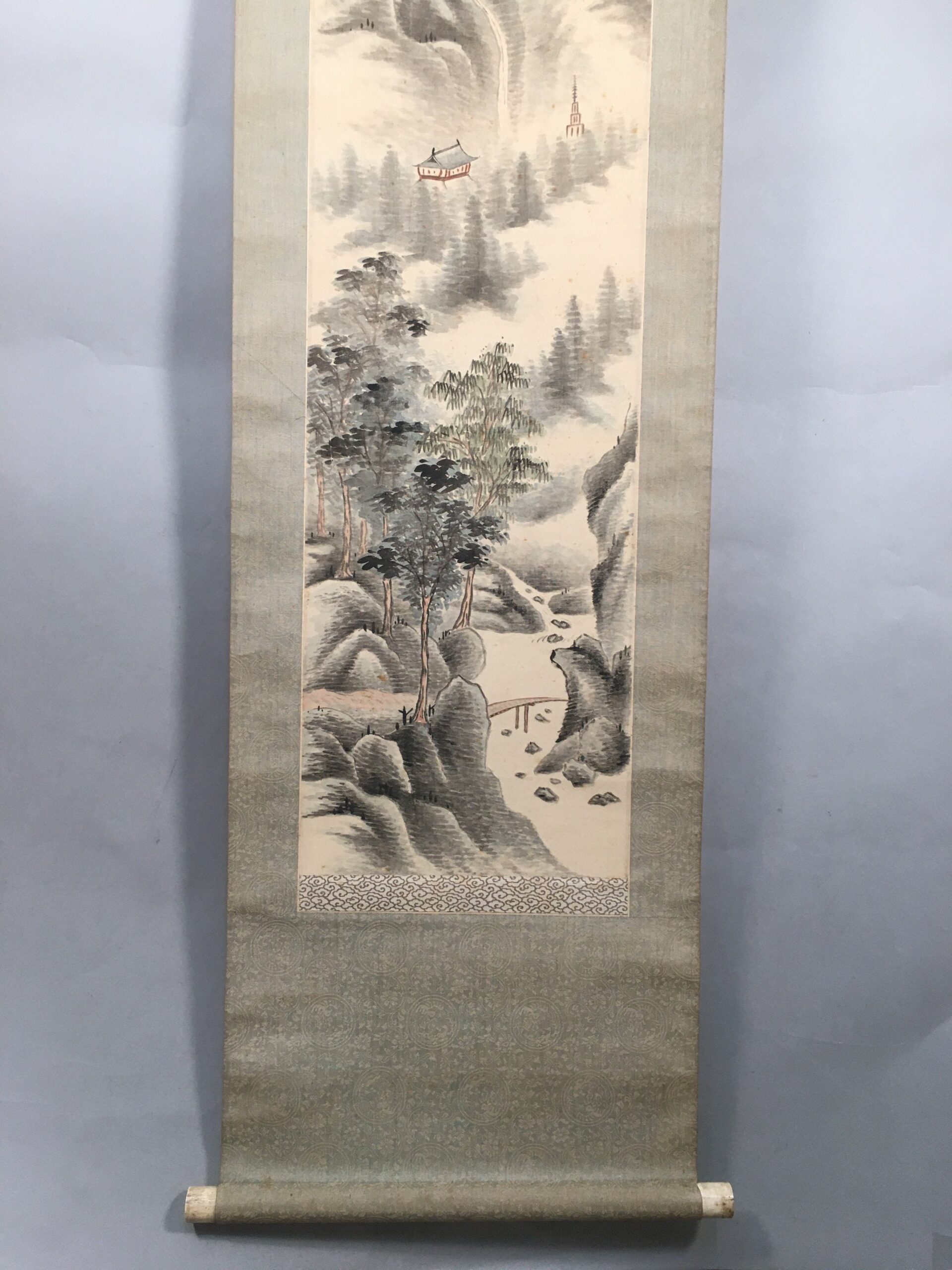 January 18, 2026Japanese Hanging Scroll Vtg Kakejiku Kakemono Painting Mountain River SC583