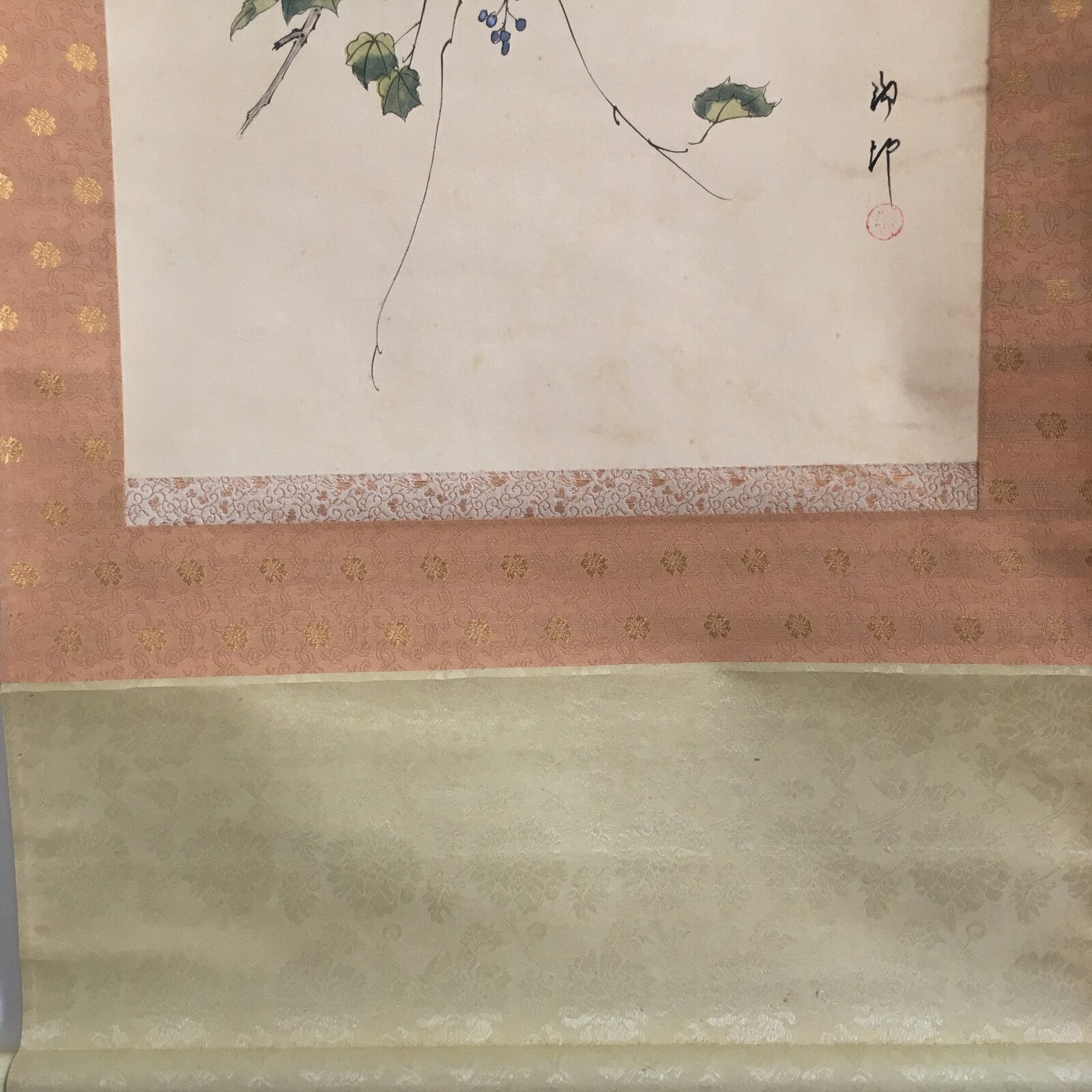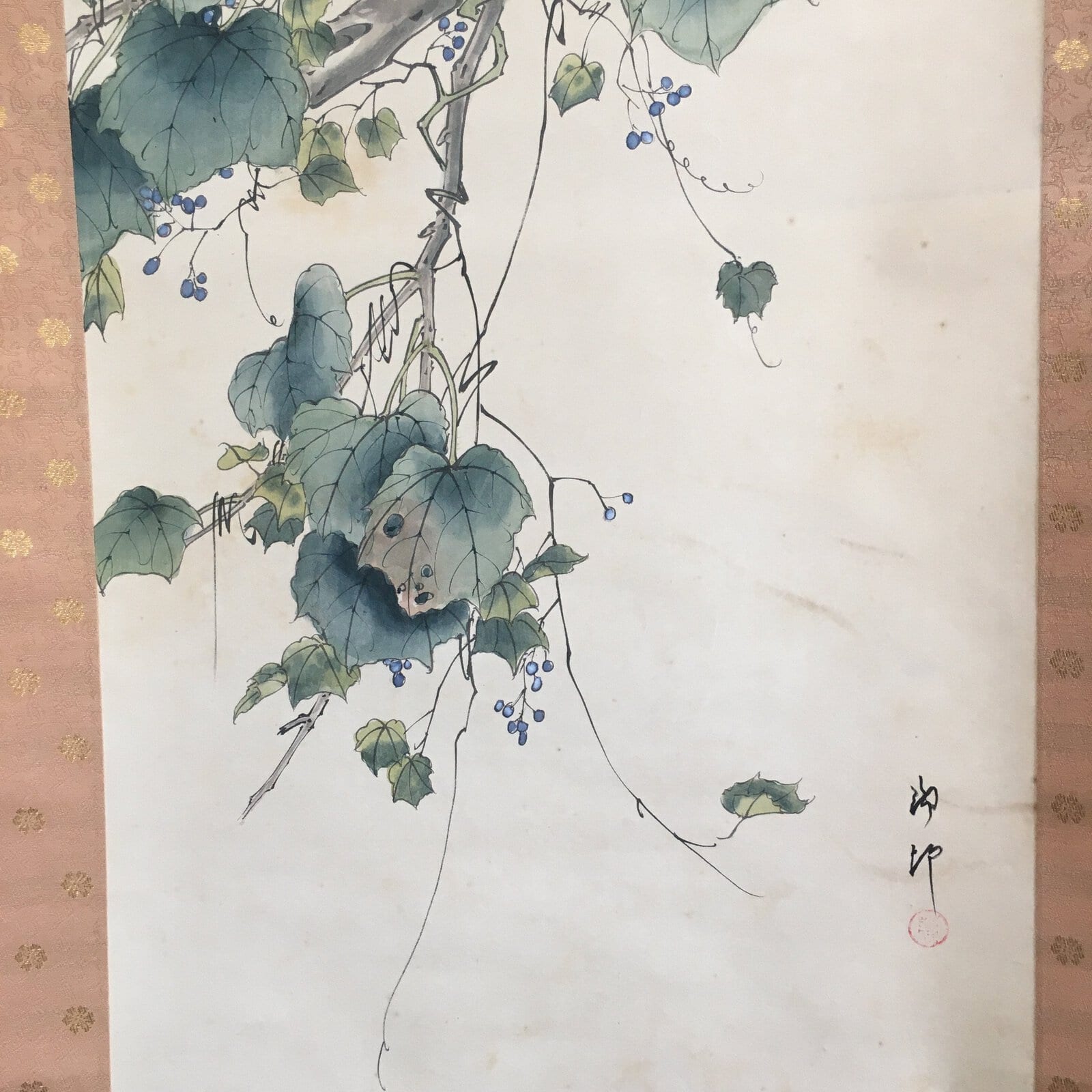January 18, 2026Japanese Hanging Scroll Vtg Kakejiku Kakemono Painting Grapes Birds SC676