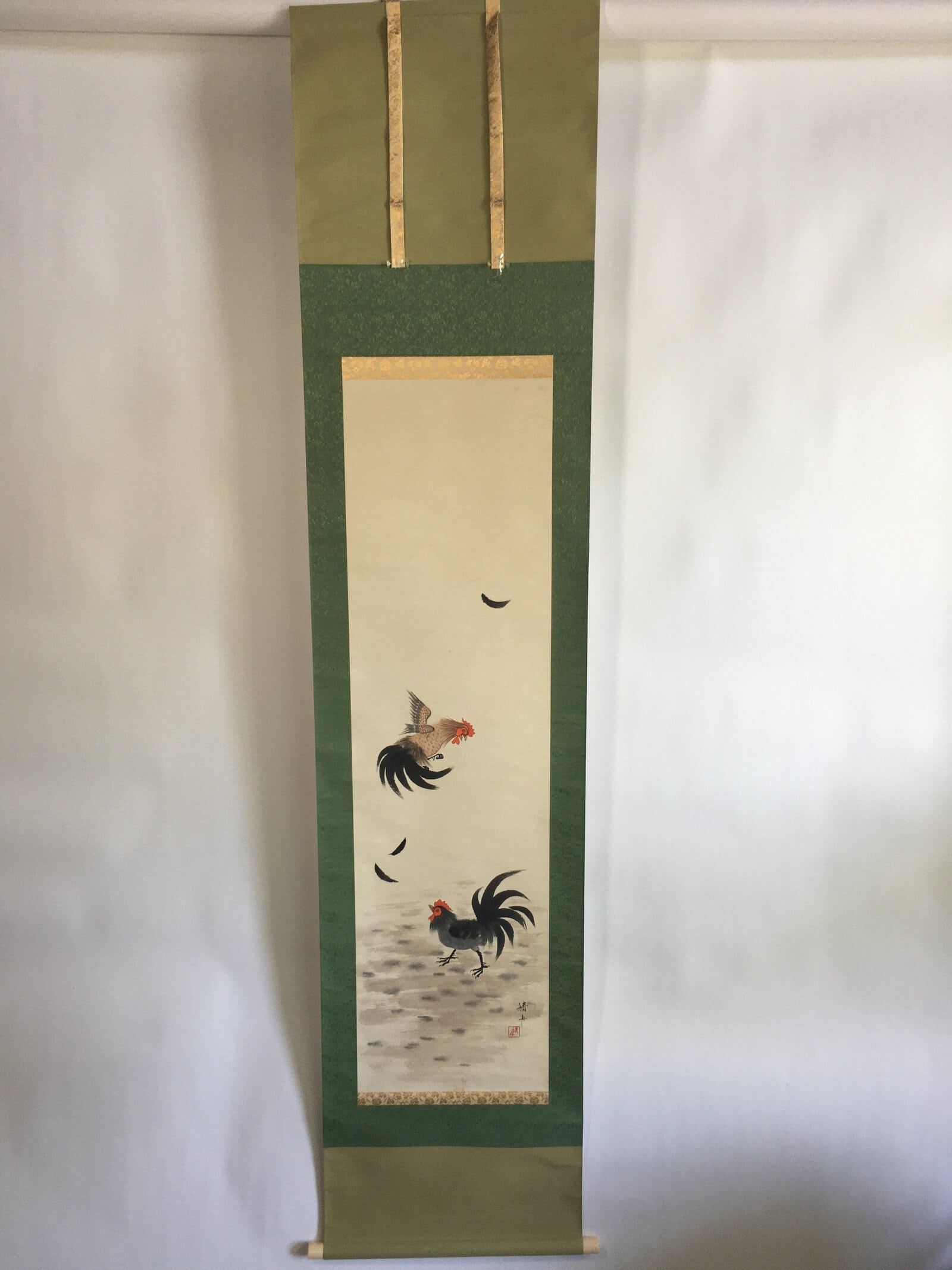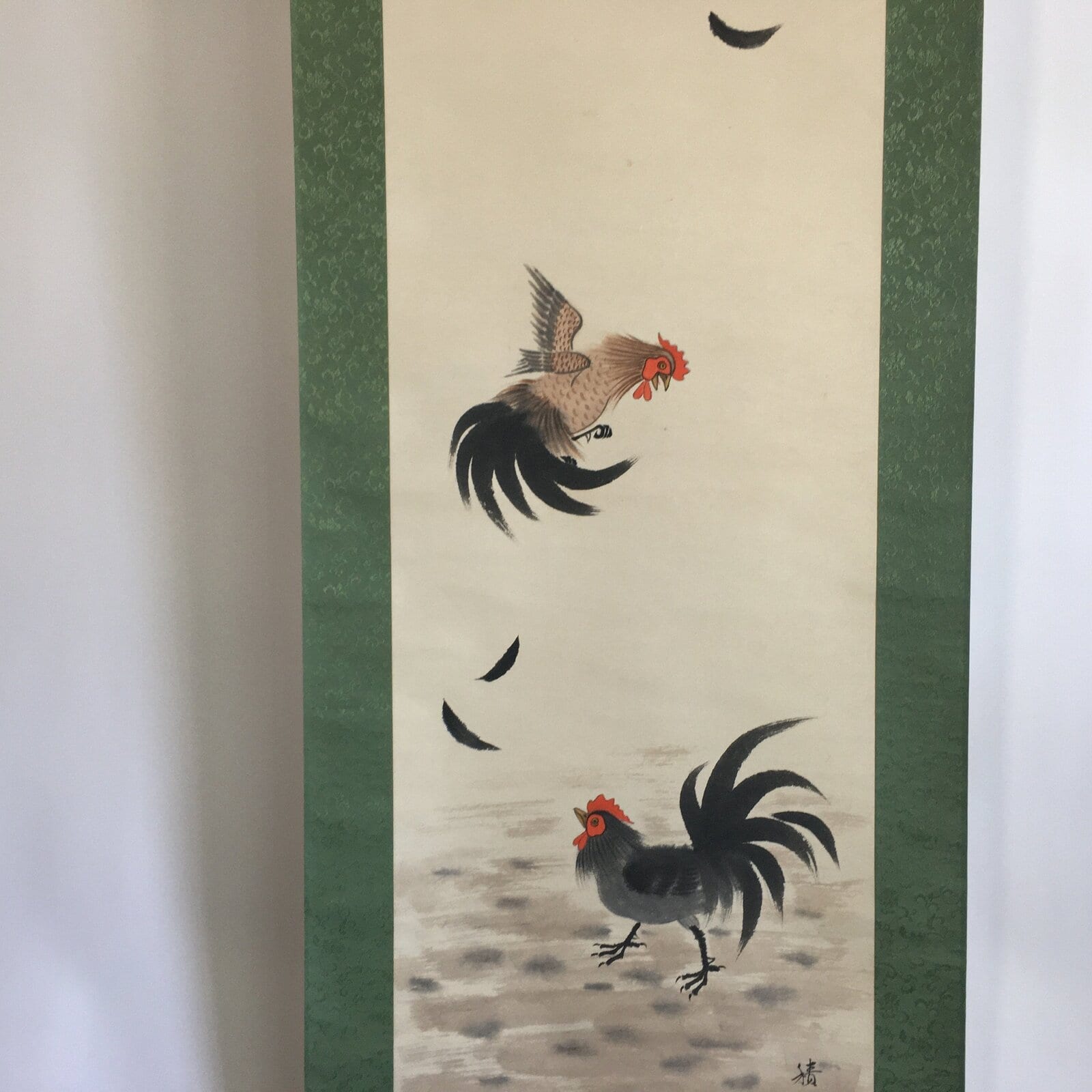 January 18, 2026Japanese Hanging Scroll Vtg Kakejiku Kakemono Painting Two Chickens SC641