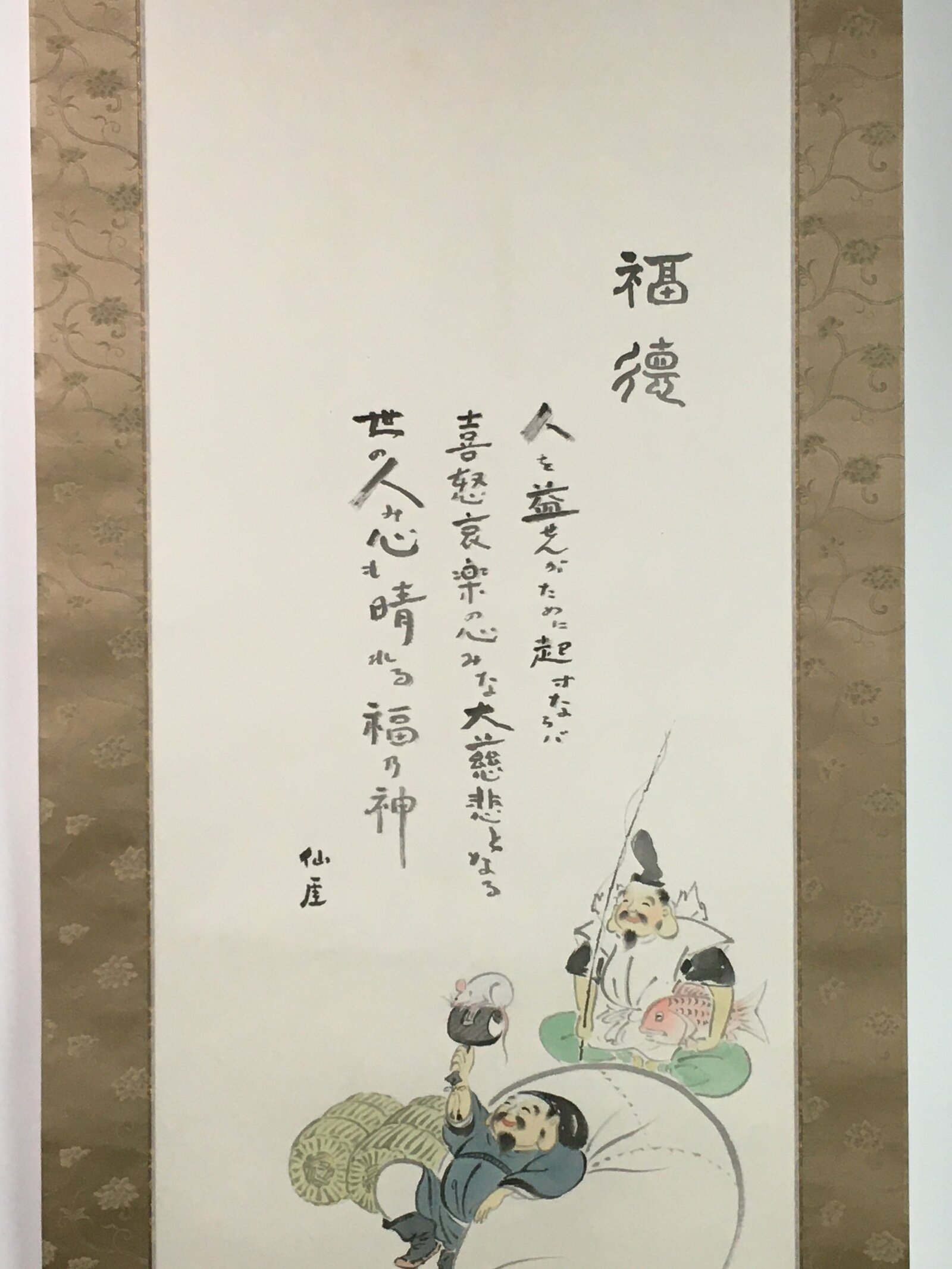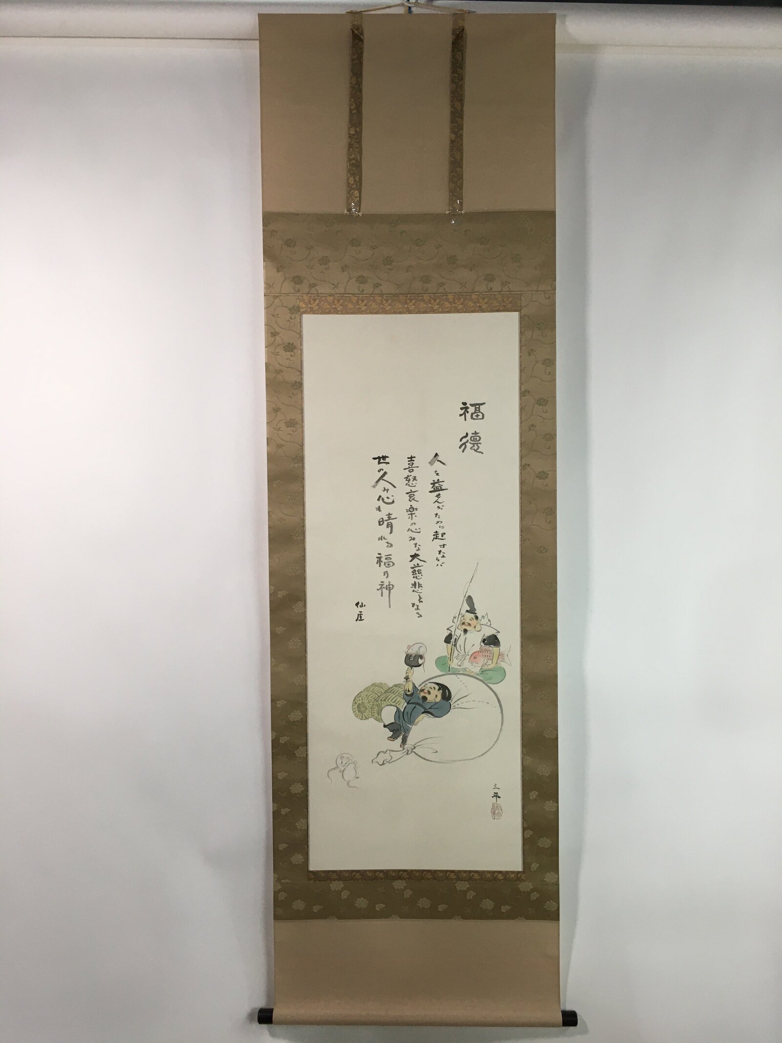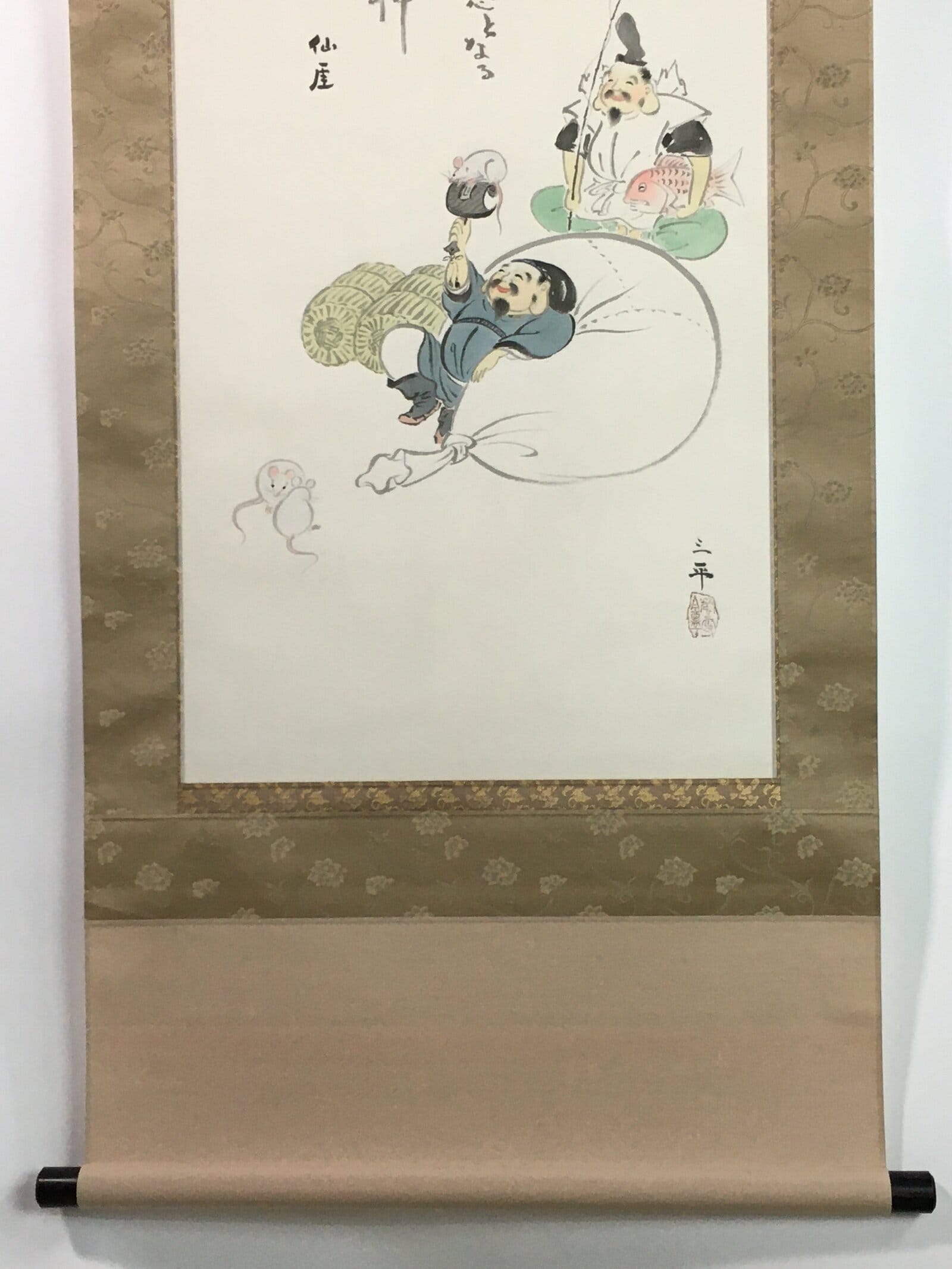 January 19, 2026Japanese Hanging Scroll Vtg Kakejiku Kakemono Ebisu Daikokuten Gods SC739