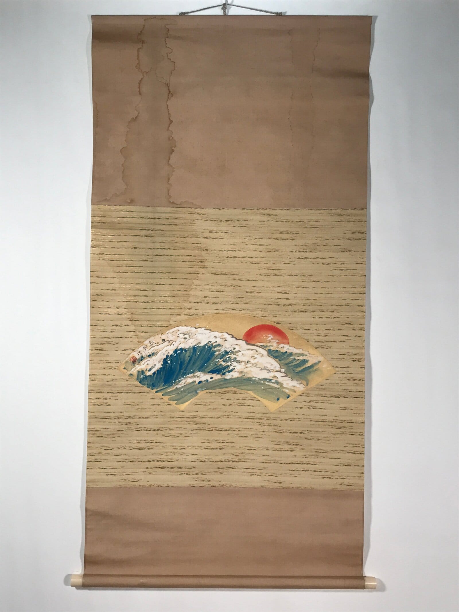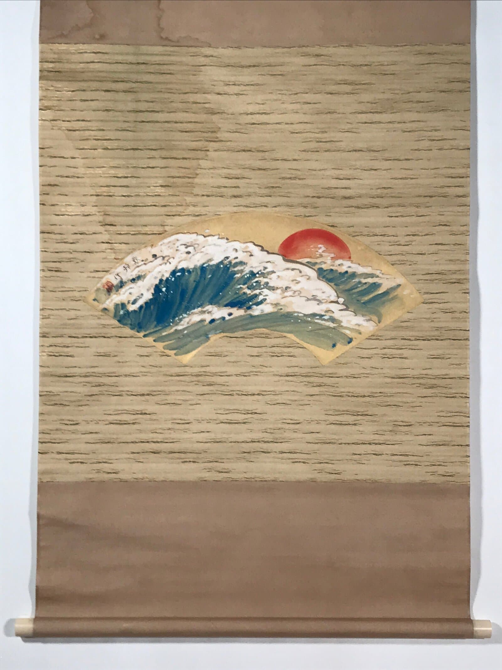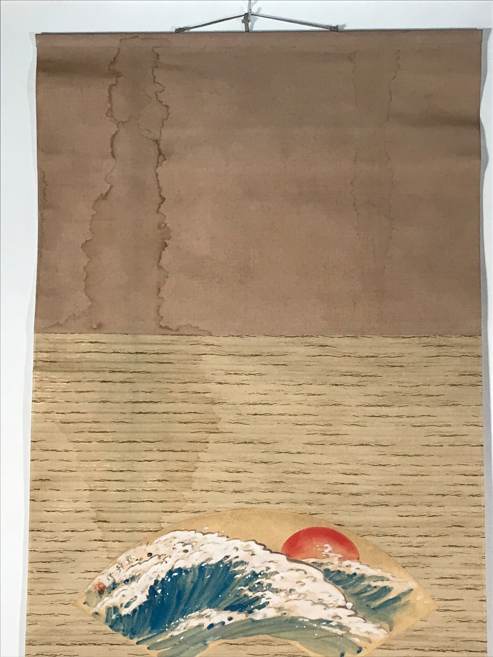 January 24, 2026Japanese Hanging Scroll Kakejiku Vtg Waves Rising Sun Fan Shape Color KJ124