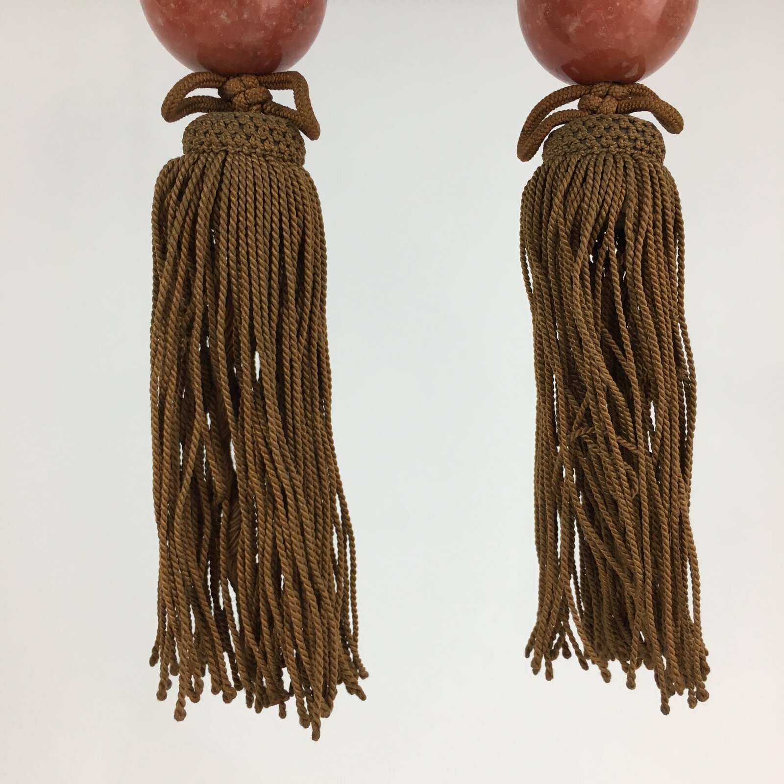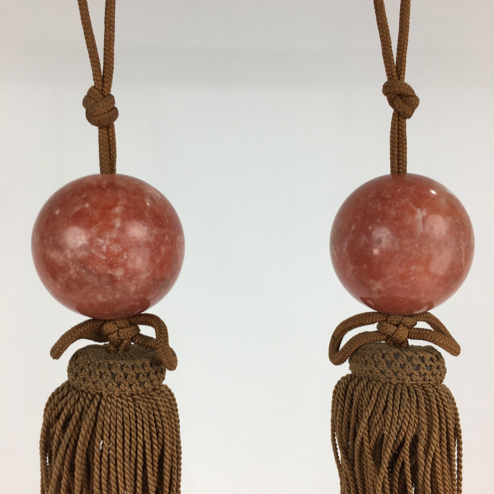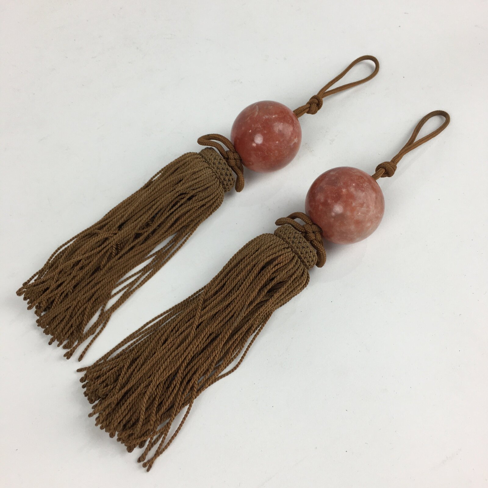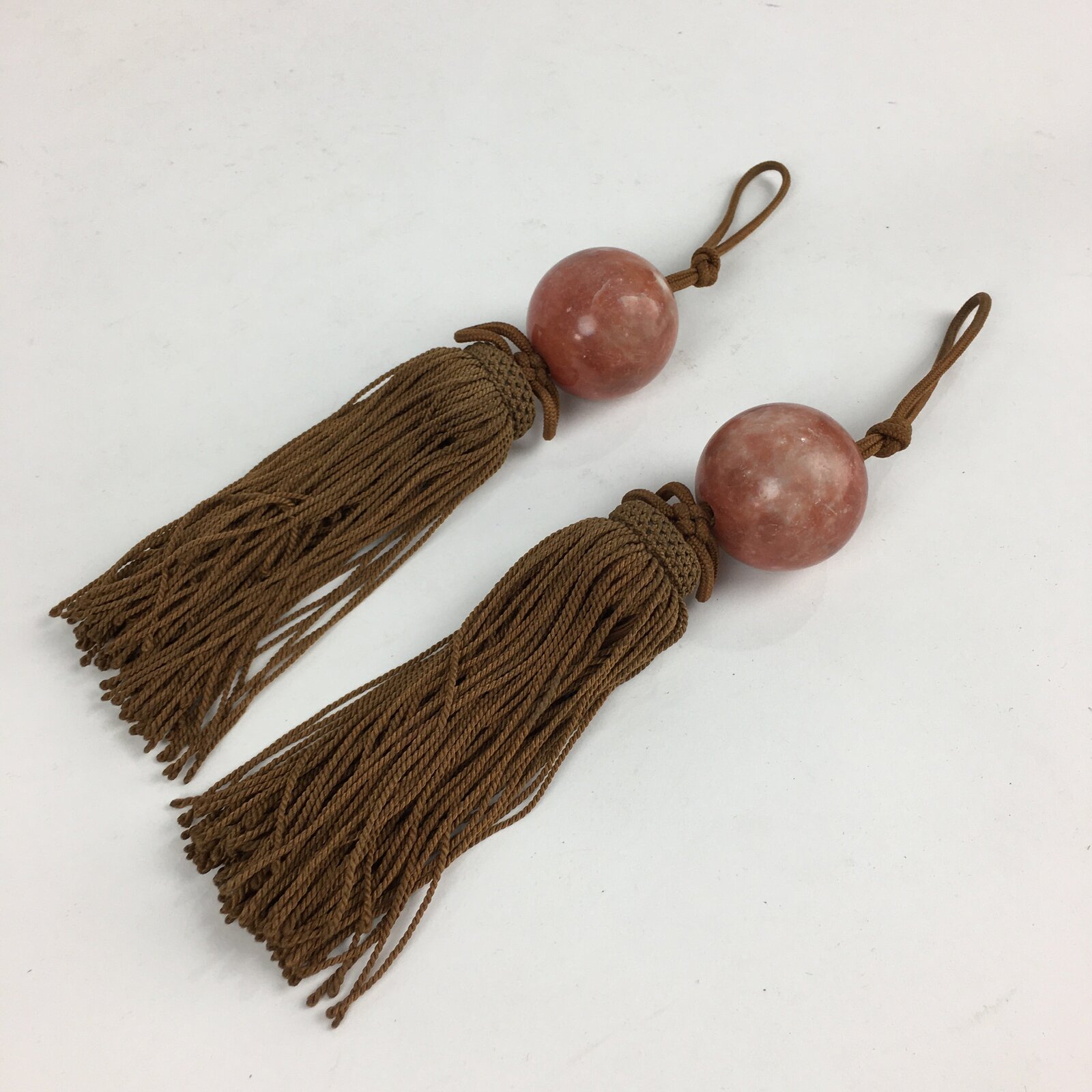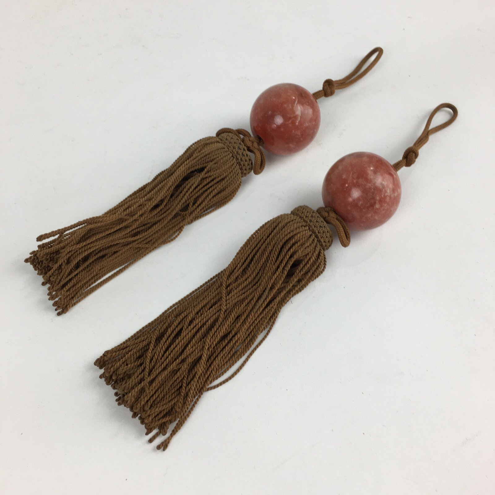 January 19, 2026Japanese Hanging Scroll Weights Vtg Fuchin Marble Stone Brown Tassel FC288