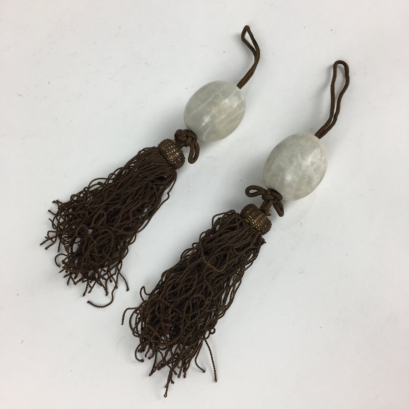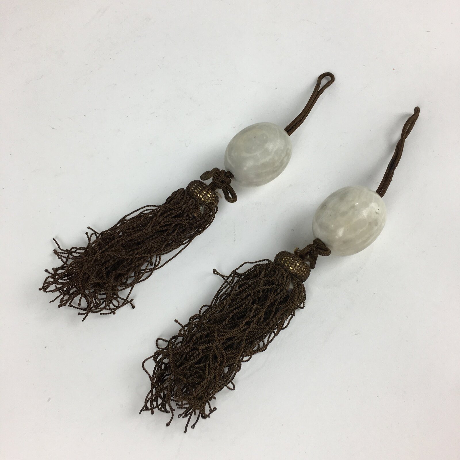 January 19, 2026Japanese Hanging Scroll Weights Vtg Fuchin Marble Stone Brown Tassel FC298