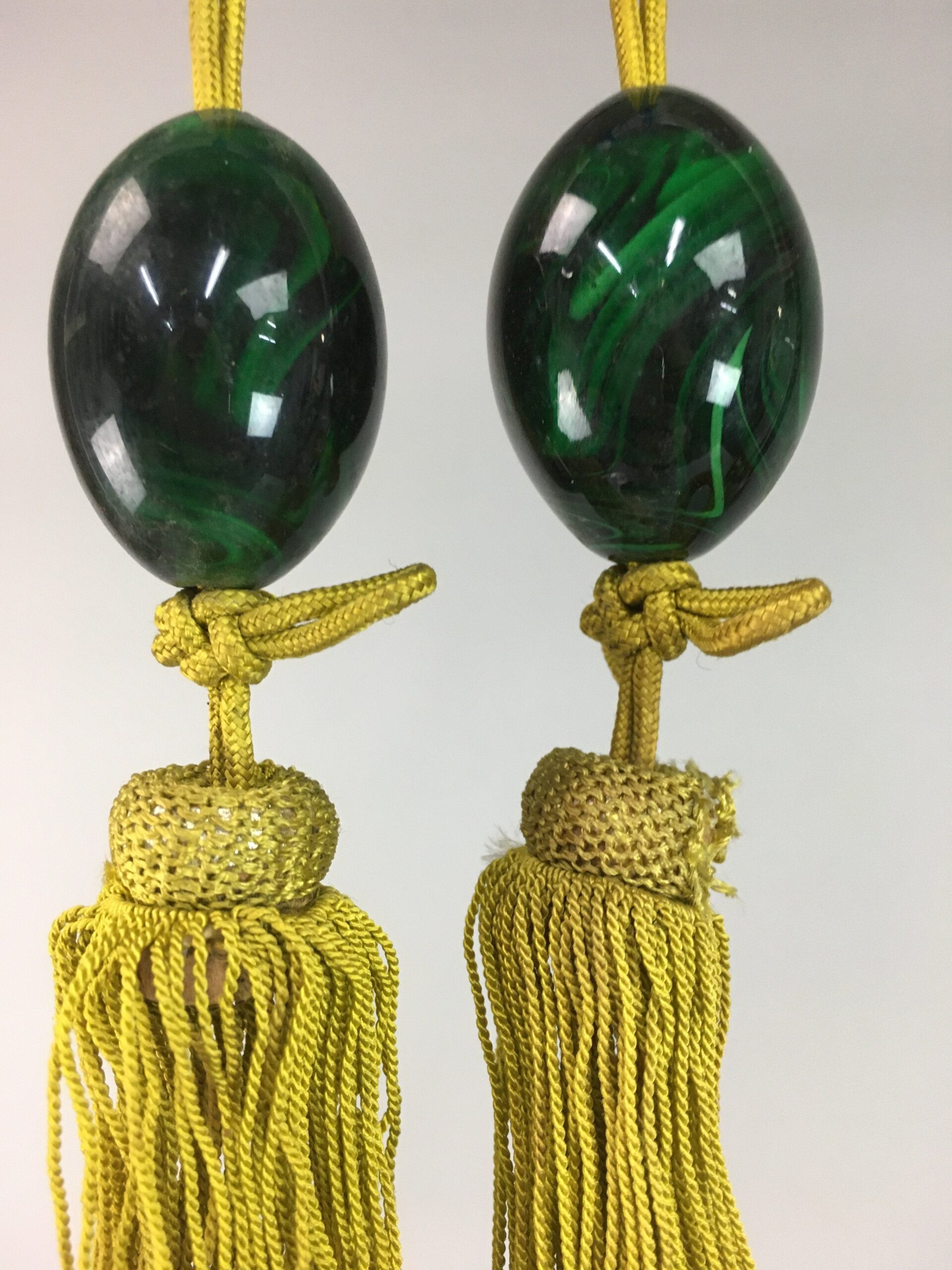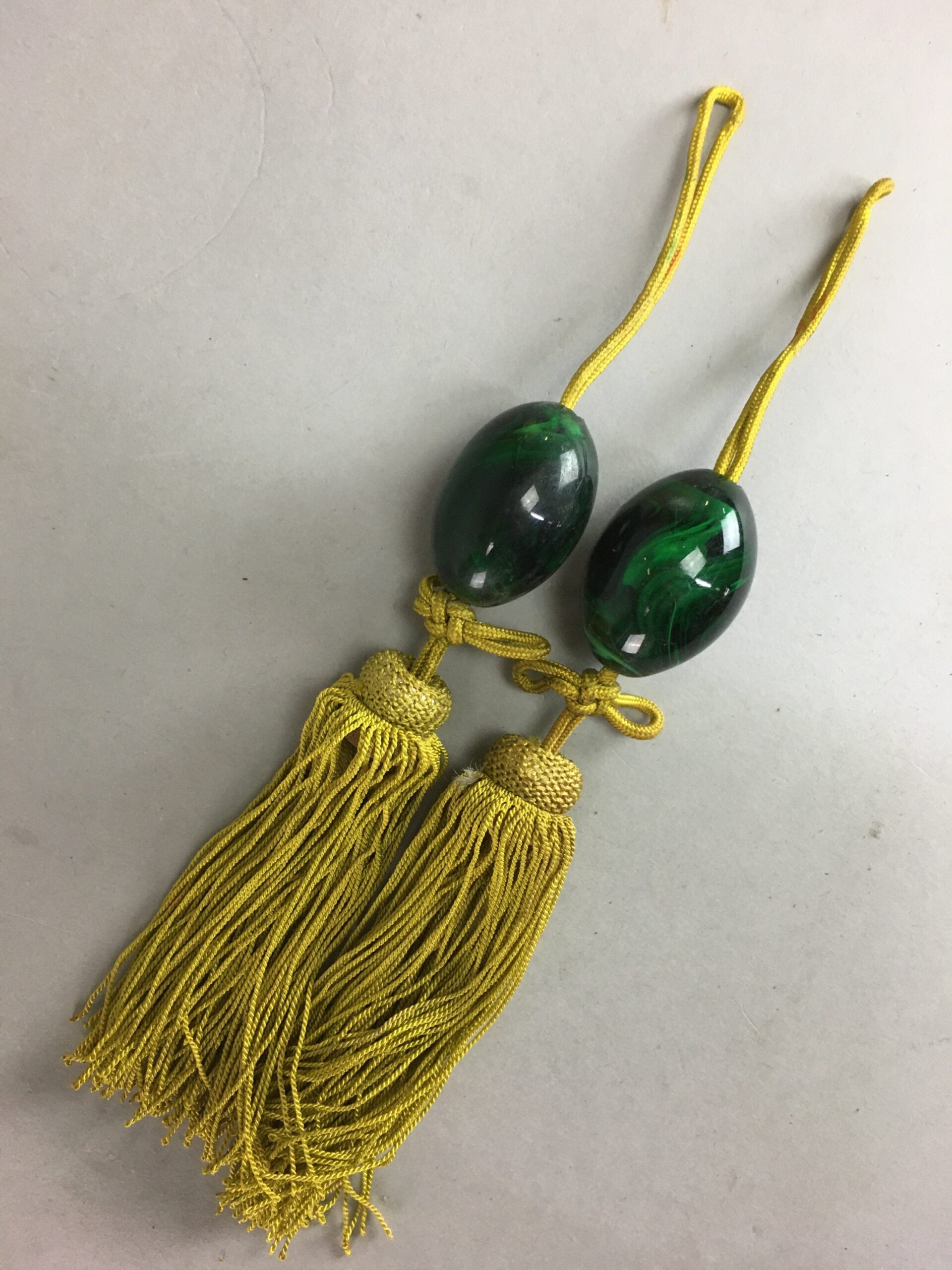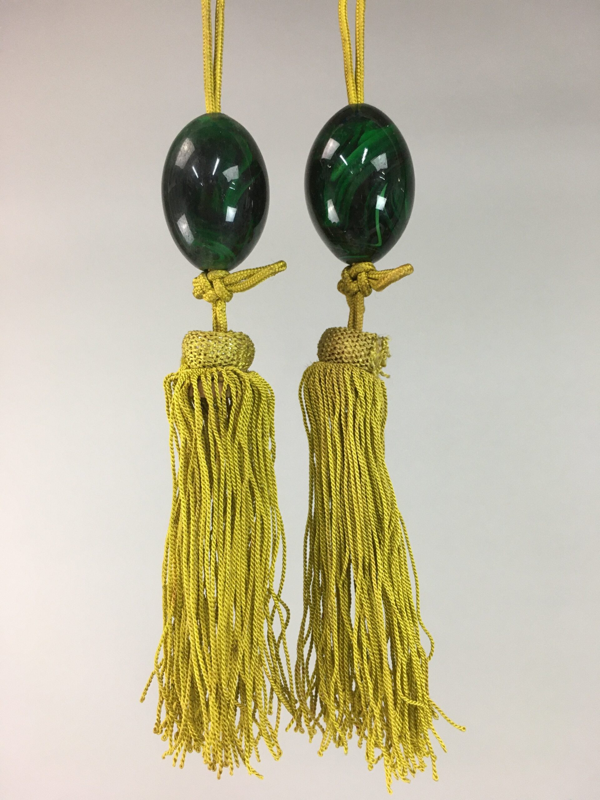 January 17, 2026Japanese Hanging Scroll Weights Vtg Fuchin Marble Stone Golden Tassel FC208