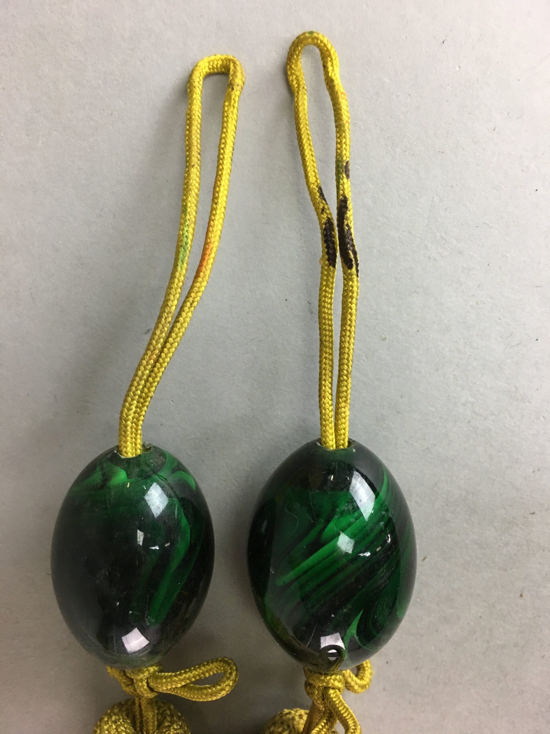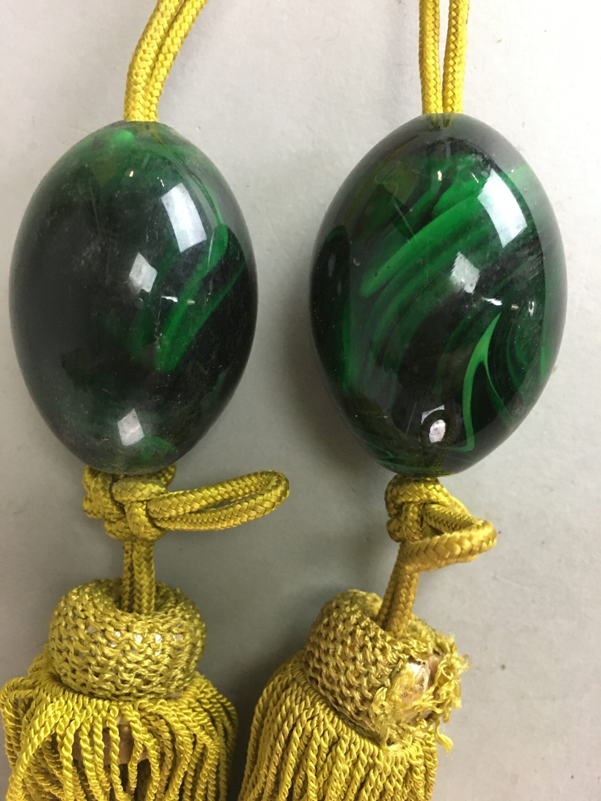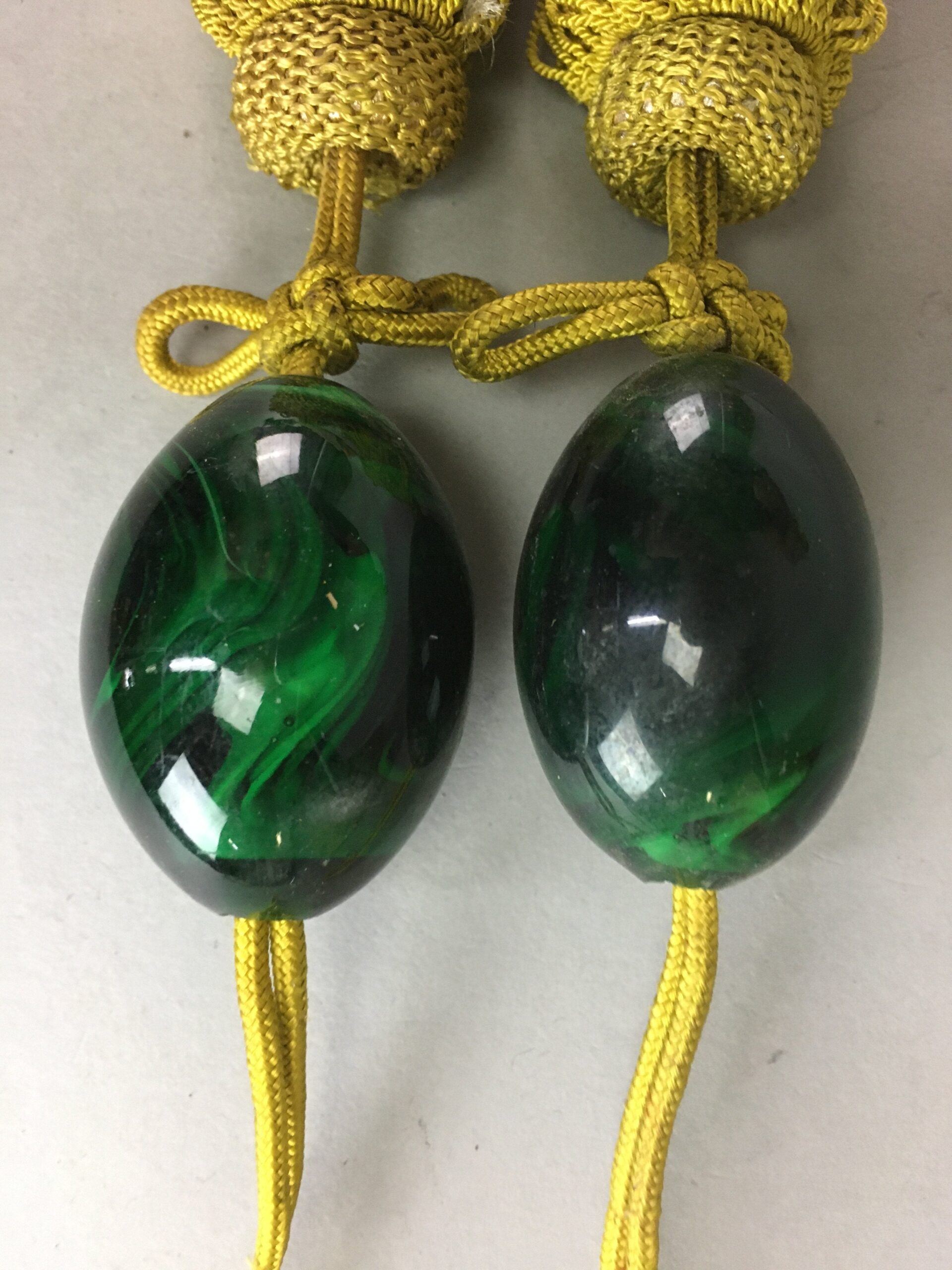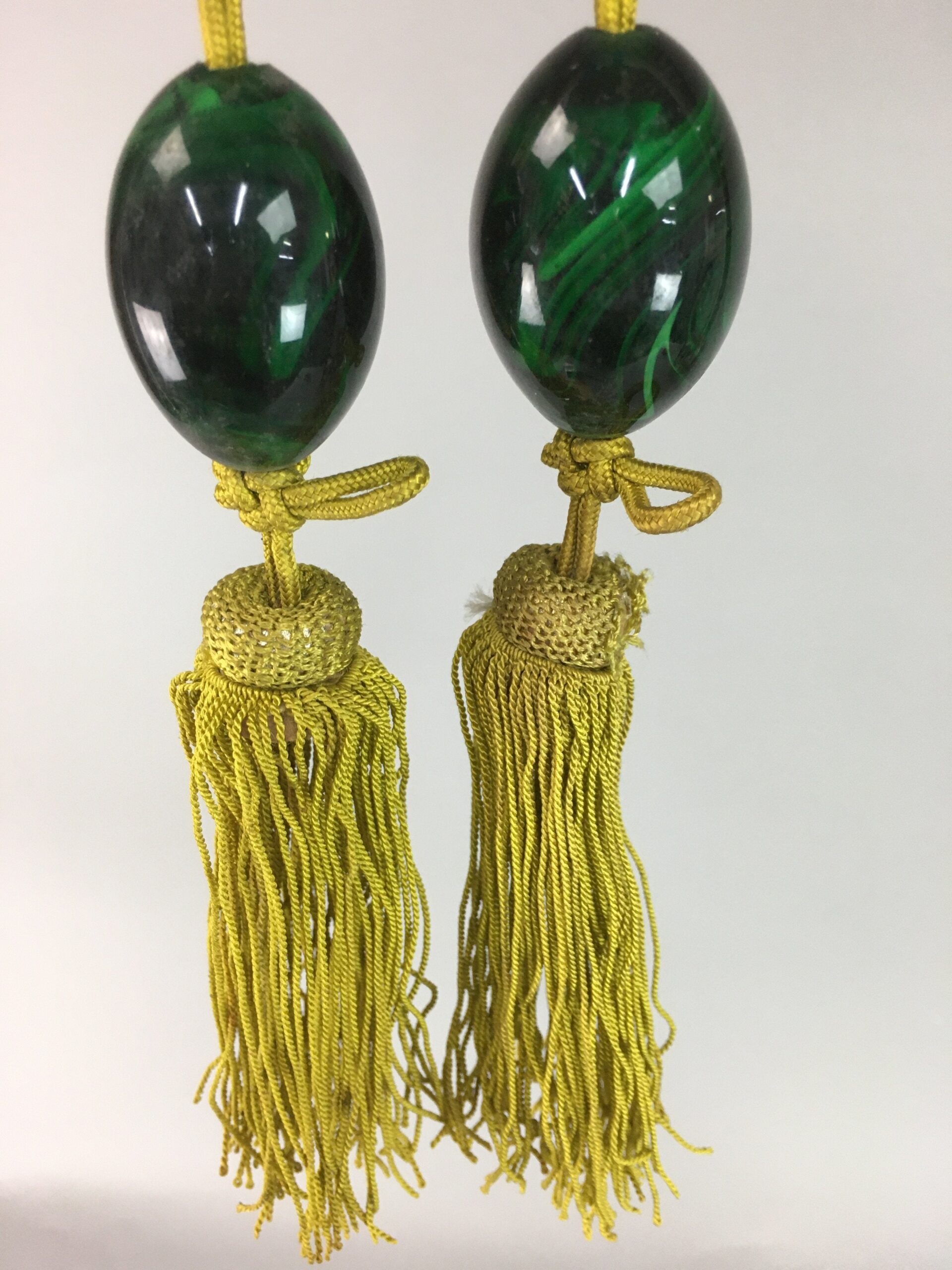 January 17, 2026Japanese Hanging Scroll Weights Vtg Fuchin Marble Stone Golden Tassel FC208