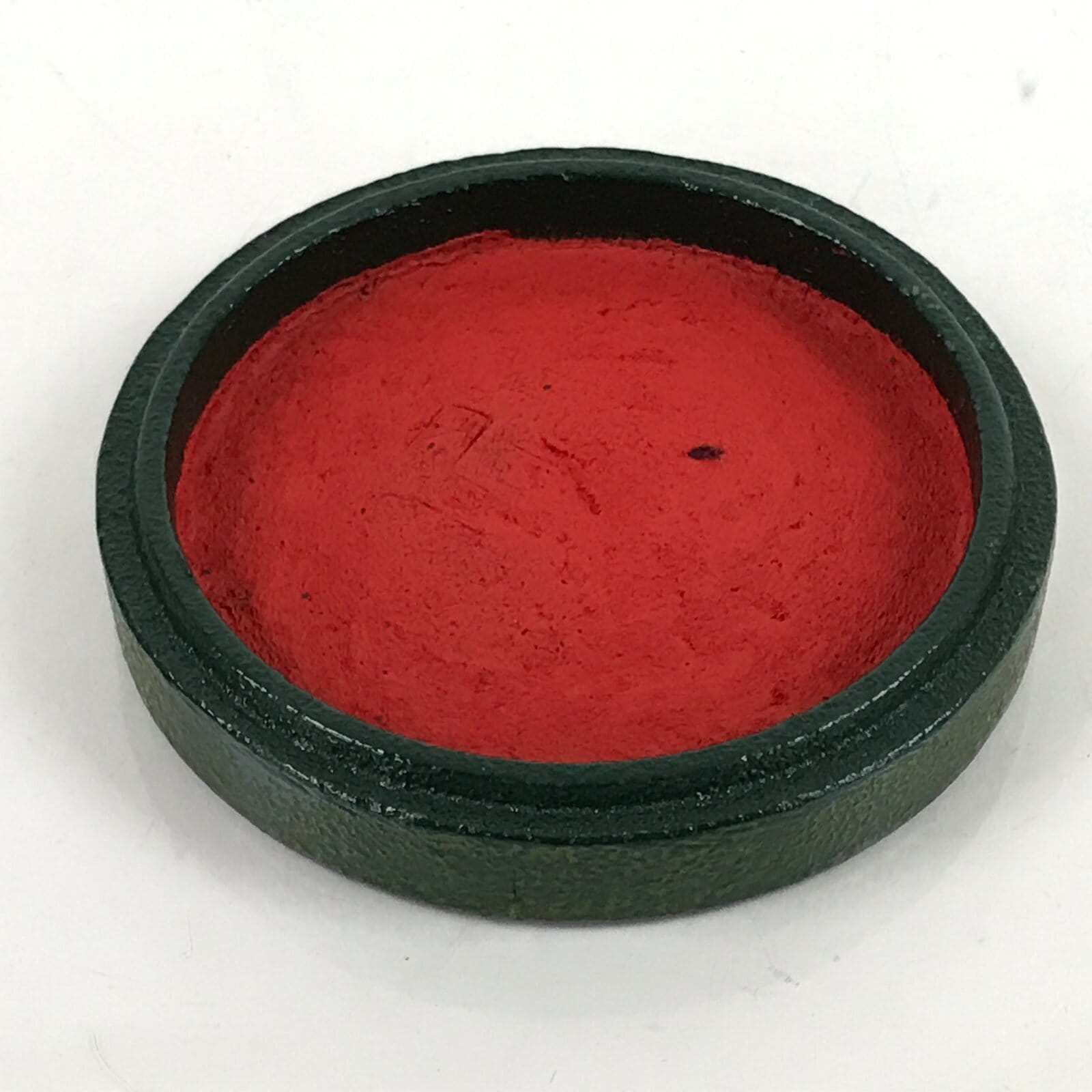 January 23, 2026Japanese Hanko Ink pad Metal Case Iron Green Vtg Red Shuniku Wooden Box SZ59