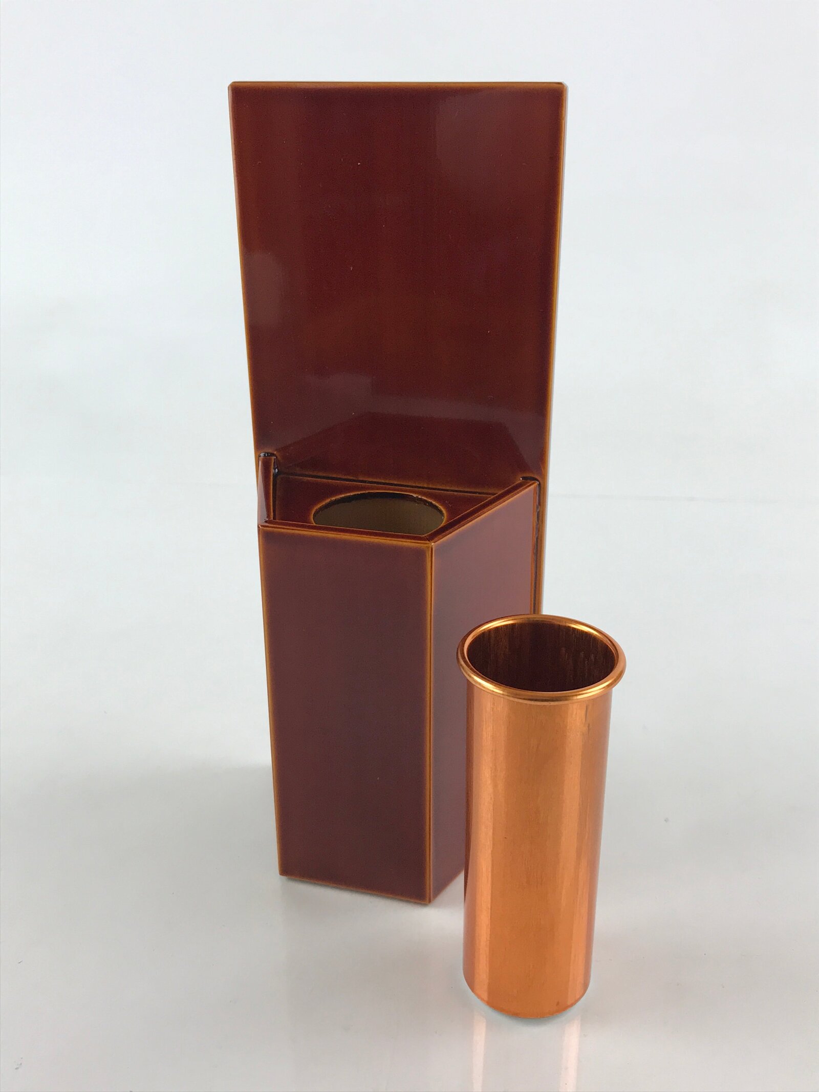 This is a vintage Japanese lacquered Hida Shunkei-Nuri flower vase, Kabin. Hida Shunkei is a traditional lacquerware craft made in Takayama City and Hida City in Gifu Prefecture. There is a bronze inner vase inset of the main vase. It can be used as a self-standing vase as well as It can be used as a wall-hanging vase. (with metal hook)