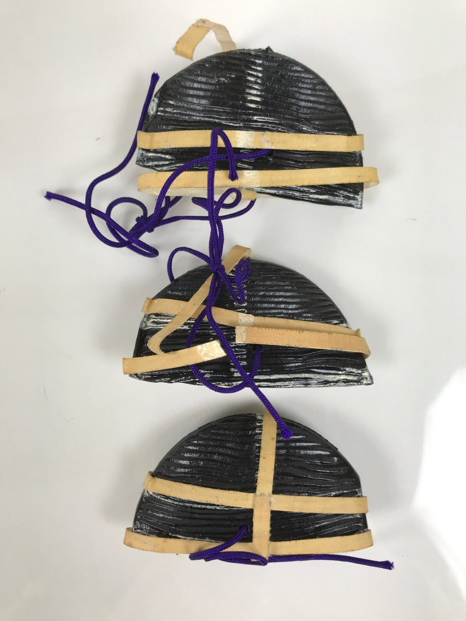 This Japanese vintage ohinasama doll accessory set of rather large hats is the perfect addition to any existing hina set or adds gorgeous Eastern flair to any home decor. These hats are typically for guard dolls and court male servant dolls. These items are made of resin and other modern materials.