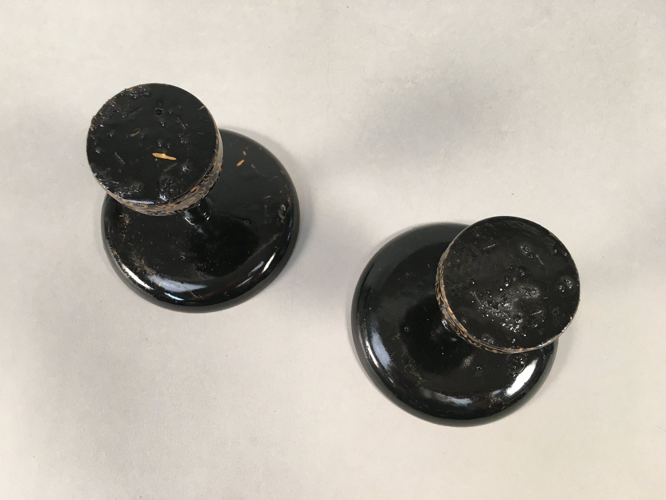 - Good condition considering its age. Slight stains. Wobbly because of some particles on the bottom. Wear and tear due to age. Please see the photos carefully.